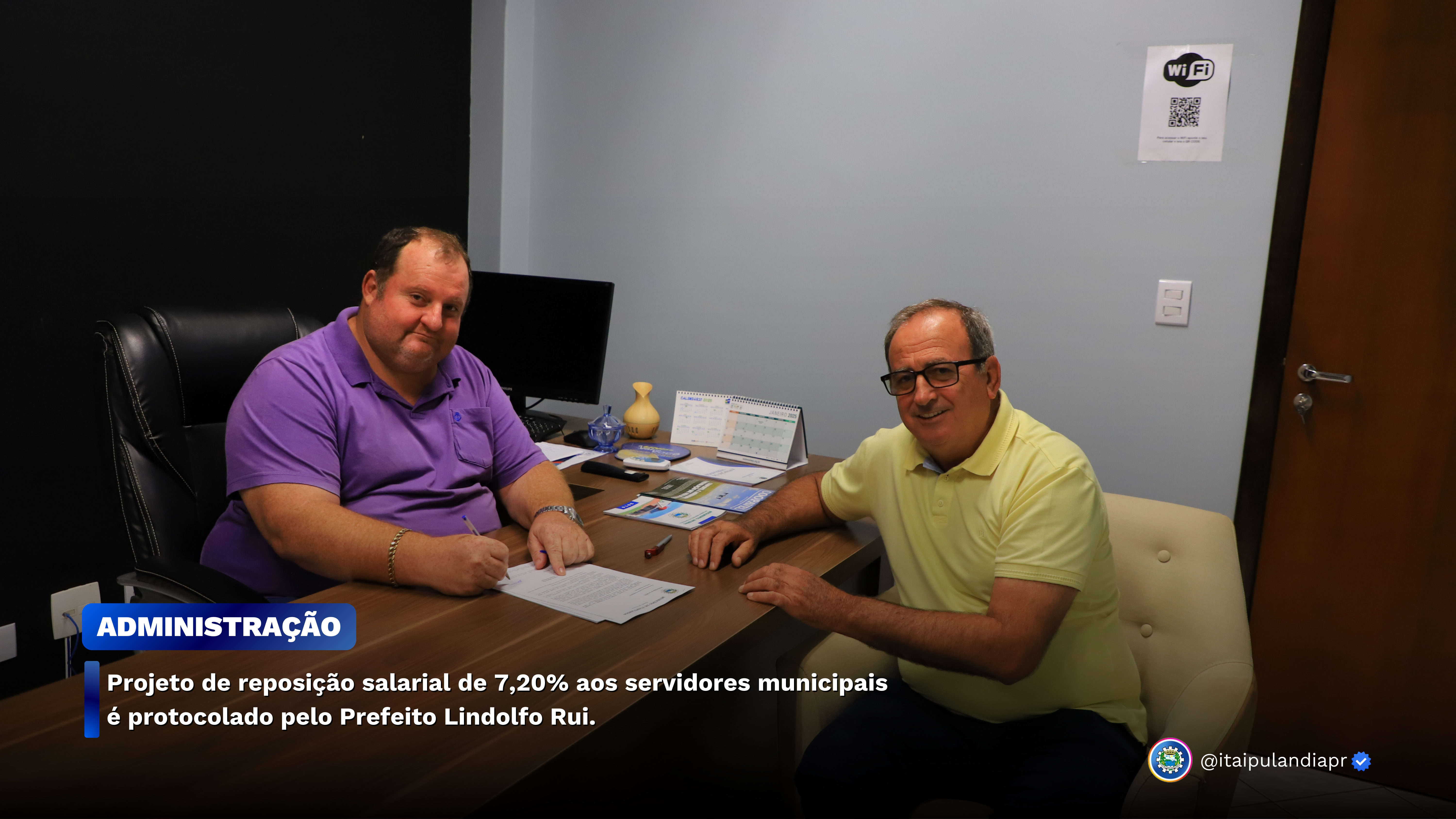 Na manhã de hoje, quinta-feira (30), o Prefeito Lindolfo Rui esteve na Câmara de Vereadores e efetuou o protocolo do Projeto de Lei 01/2025 que objetiva autorizar o Poder Executivo a conceder reposição salarial geral anual de 4,83% aos servidores municipais efetivos do quadro geral, bem como aos comissionados, inativos e pensionistas, de acordo com o Índice Nacional de Preços ao Consumidor Amplo (IPCA). Além disso, será concedido um ganho real de 2,37% (dois vírgula trinta e sete por cento).