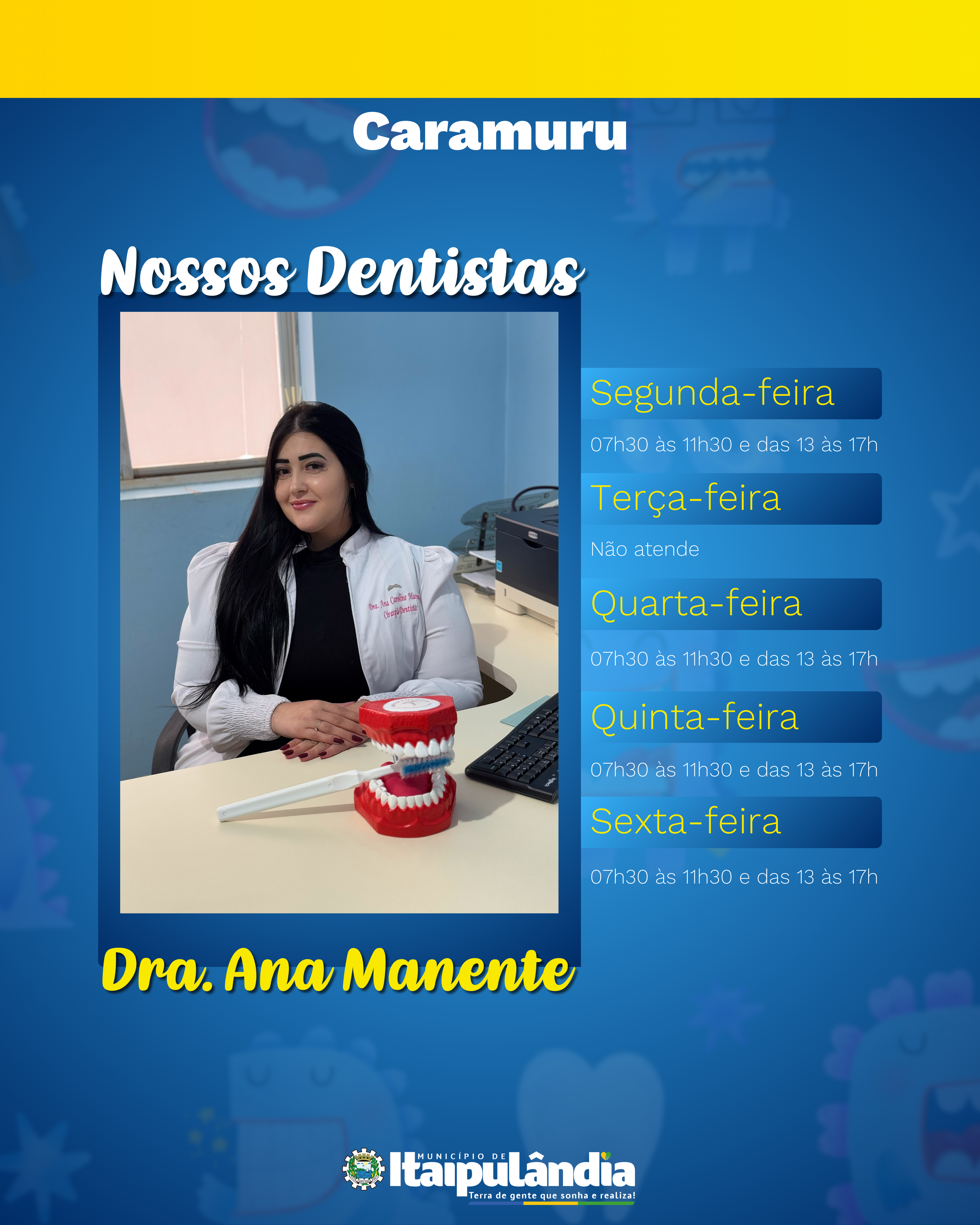 ➡️ Jacutinga 👩⚕️ Dra. Ana Manente 🗓 Terça-feira: ⏰ 07h30 às 11h30 | 13h às 17h