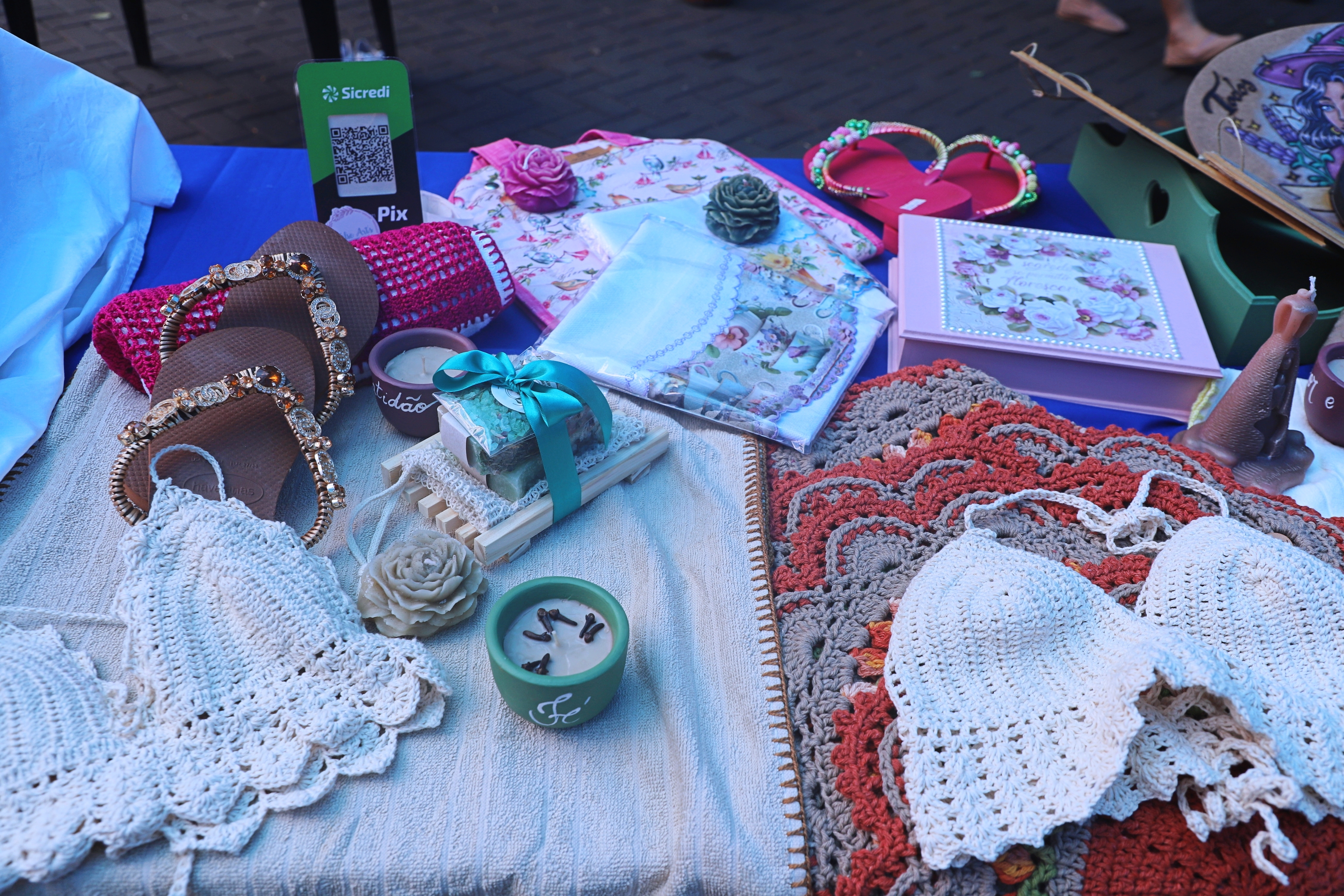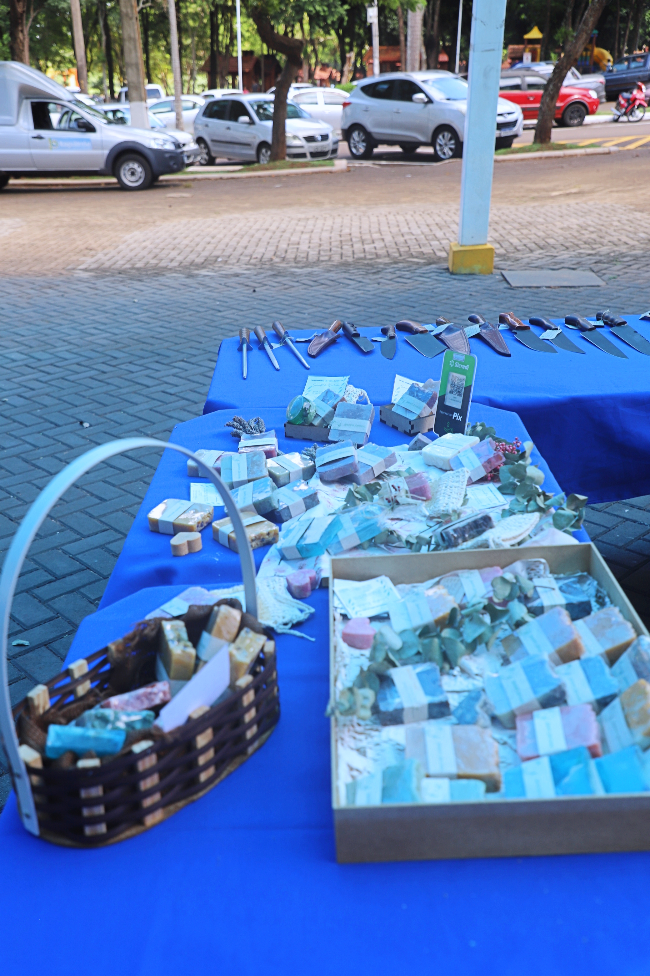 A Feira do Artesanato é resultado de projetos dos artesãos desenvolvidos através da Lei que originou a Política Nacional Aldir Blanc.
