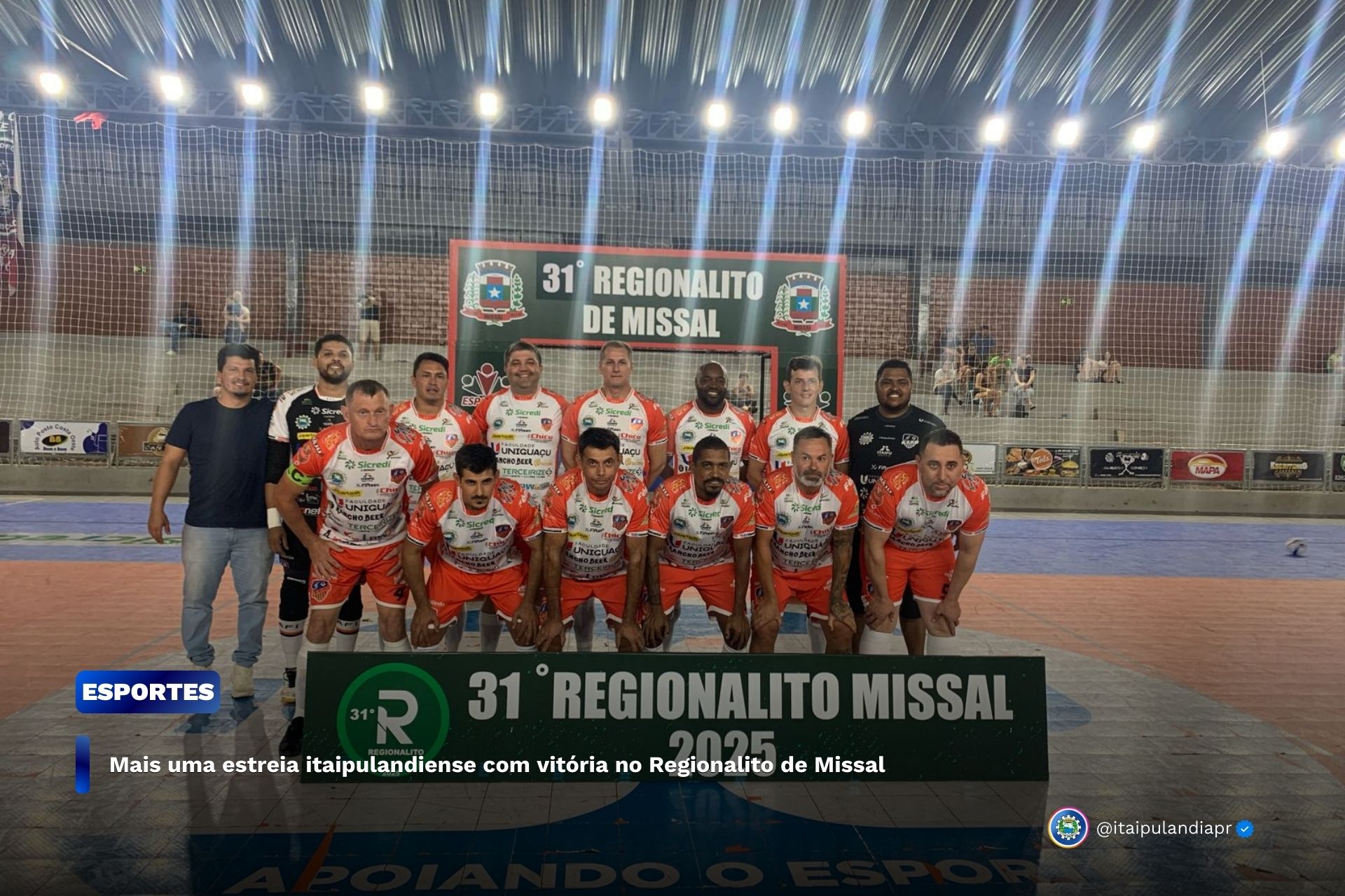 Após as vitórias do futsal feminino e masculino idade livre no 31º Regionalito de Missal, na noite de ontem (10), foi a vez da estreia da equipe Veteranos 40+ enfrentando a equipe de Matelândia e mais uma vitória para o futsal itaipulandiense pelo placar de 4x0.