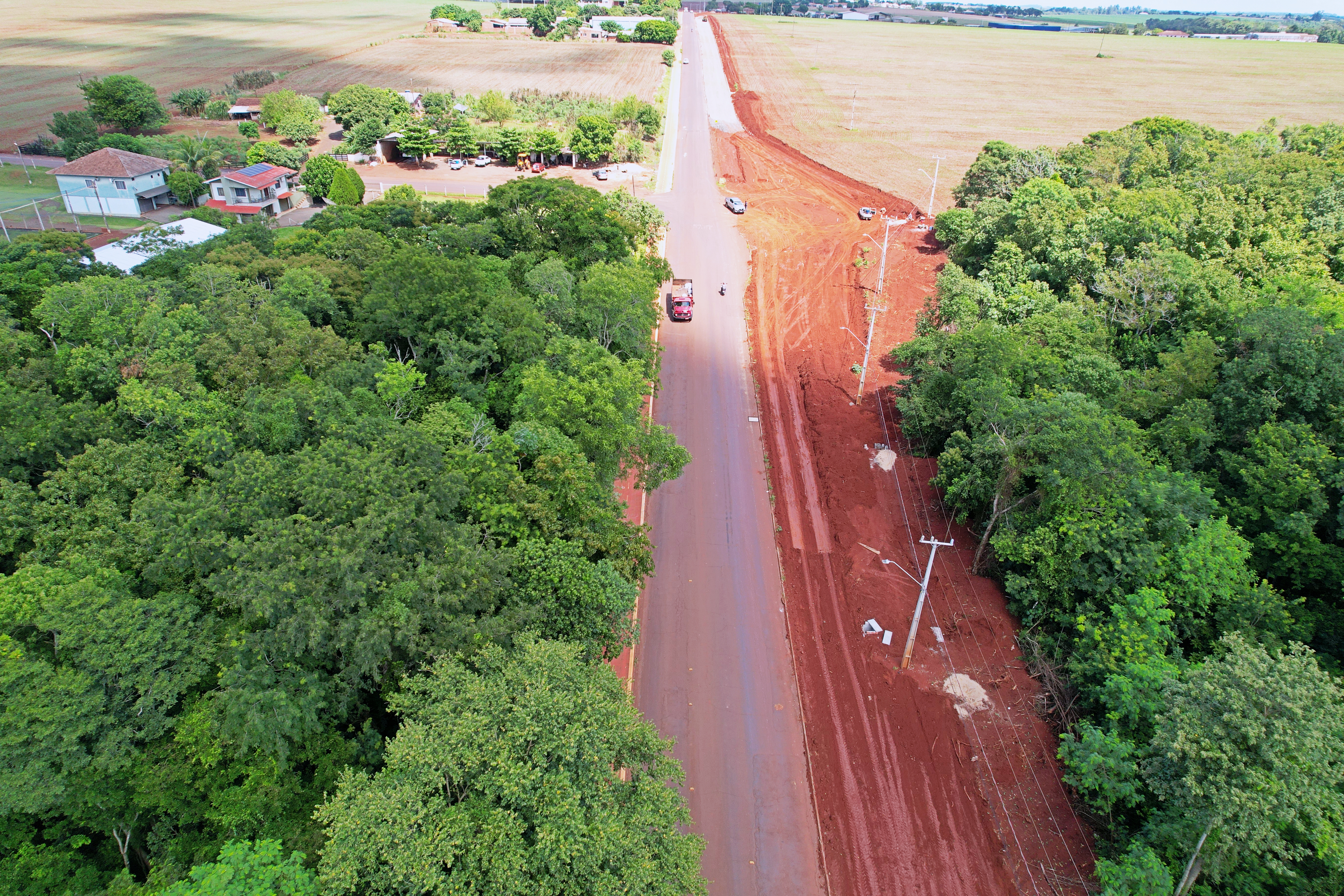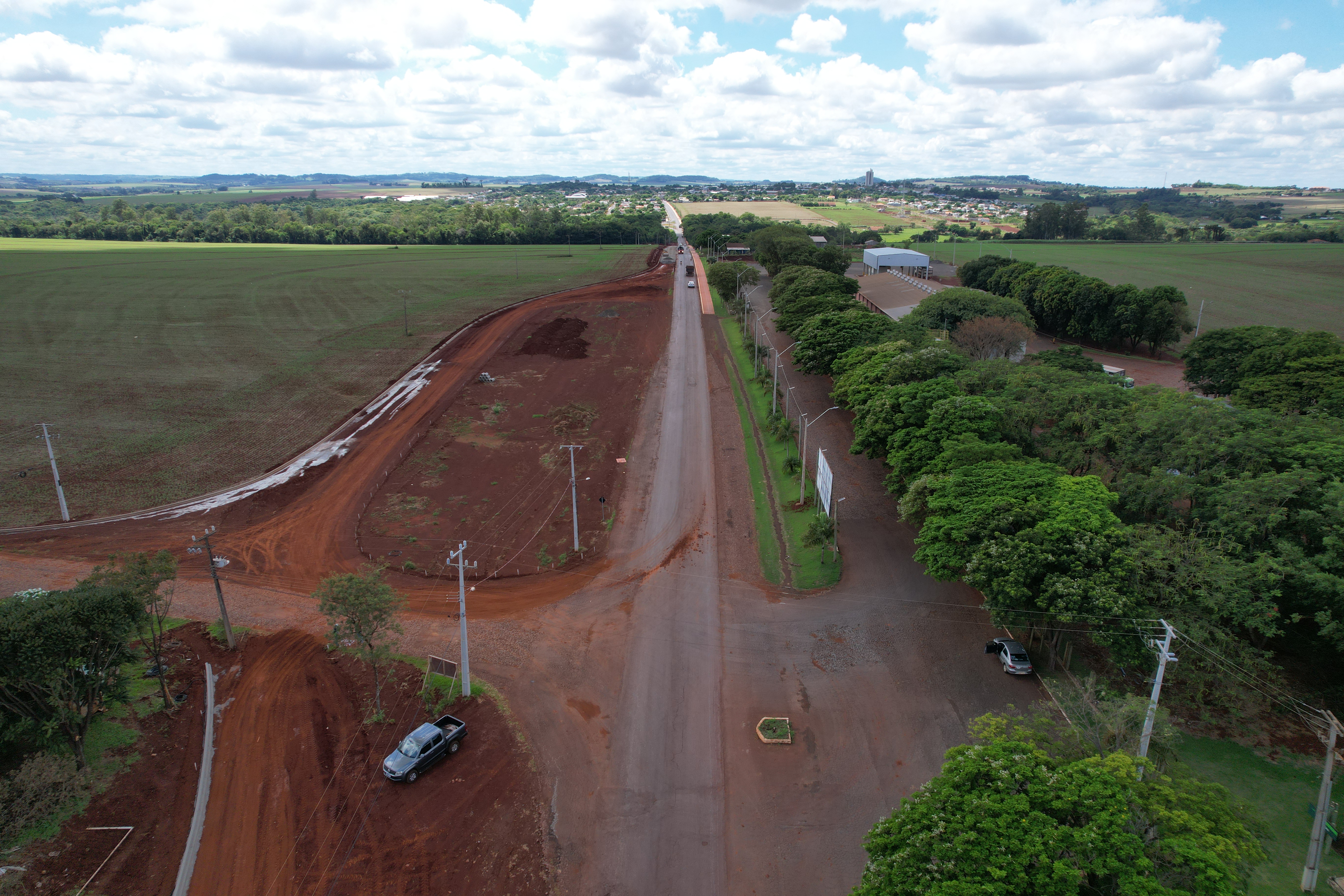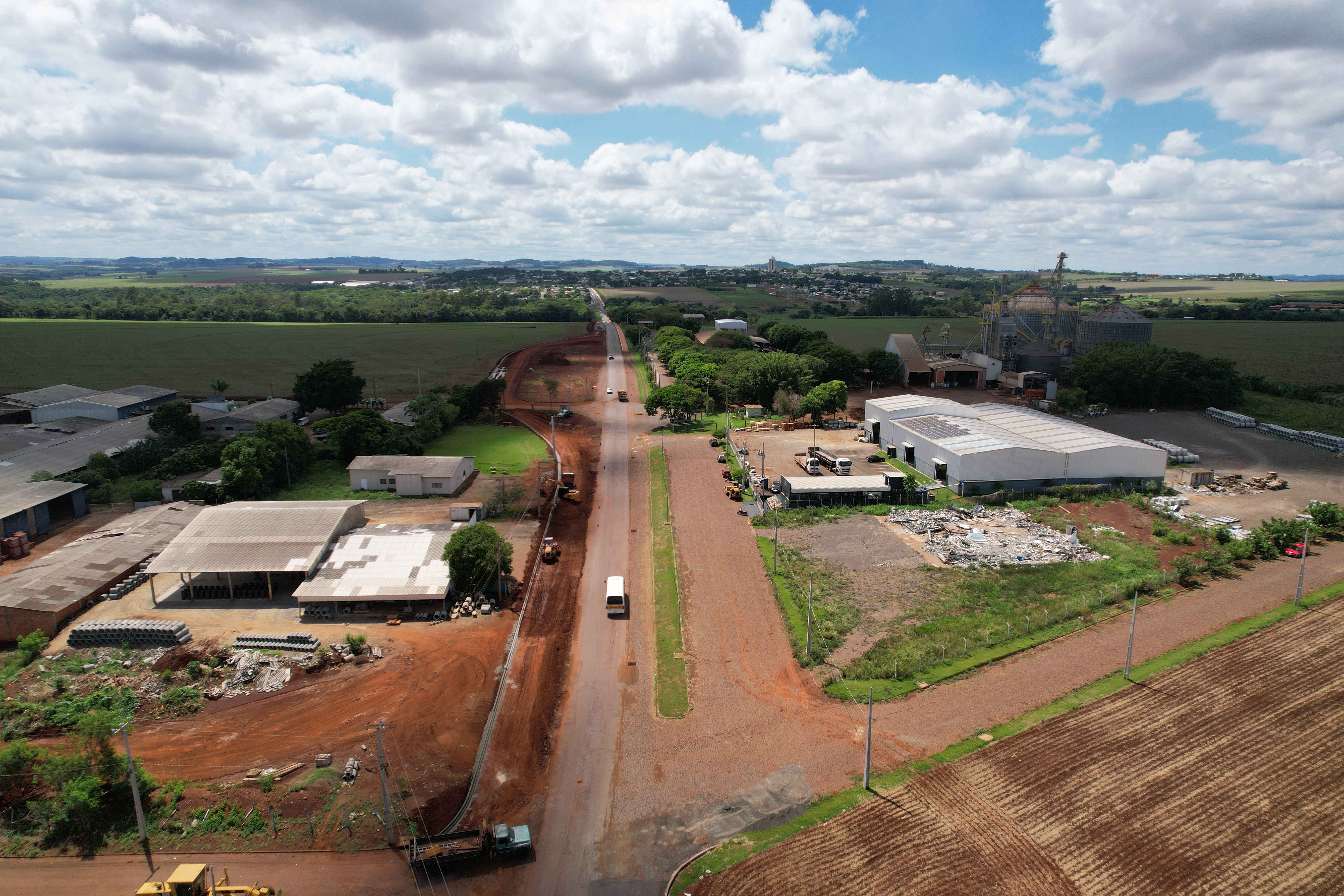 Neste momento os trabalhos estão em andamento nas proximidades da Área Industrial Santa Inês até o acesso à Linha Botafogo, com o ajuste do terreno, implantação de galerias, bocas de lobo e preparando o leito da estrada com a base para receber a pavimentação. Para melhorar o tráfego e dar mais segurança aos produtores e motoristas que acessam o silo da Lar Agroindustrial, está sendo implantado um trevo amplo.