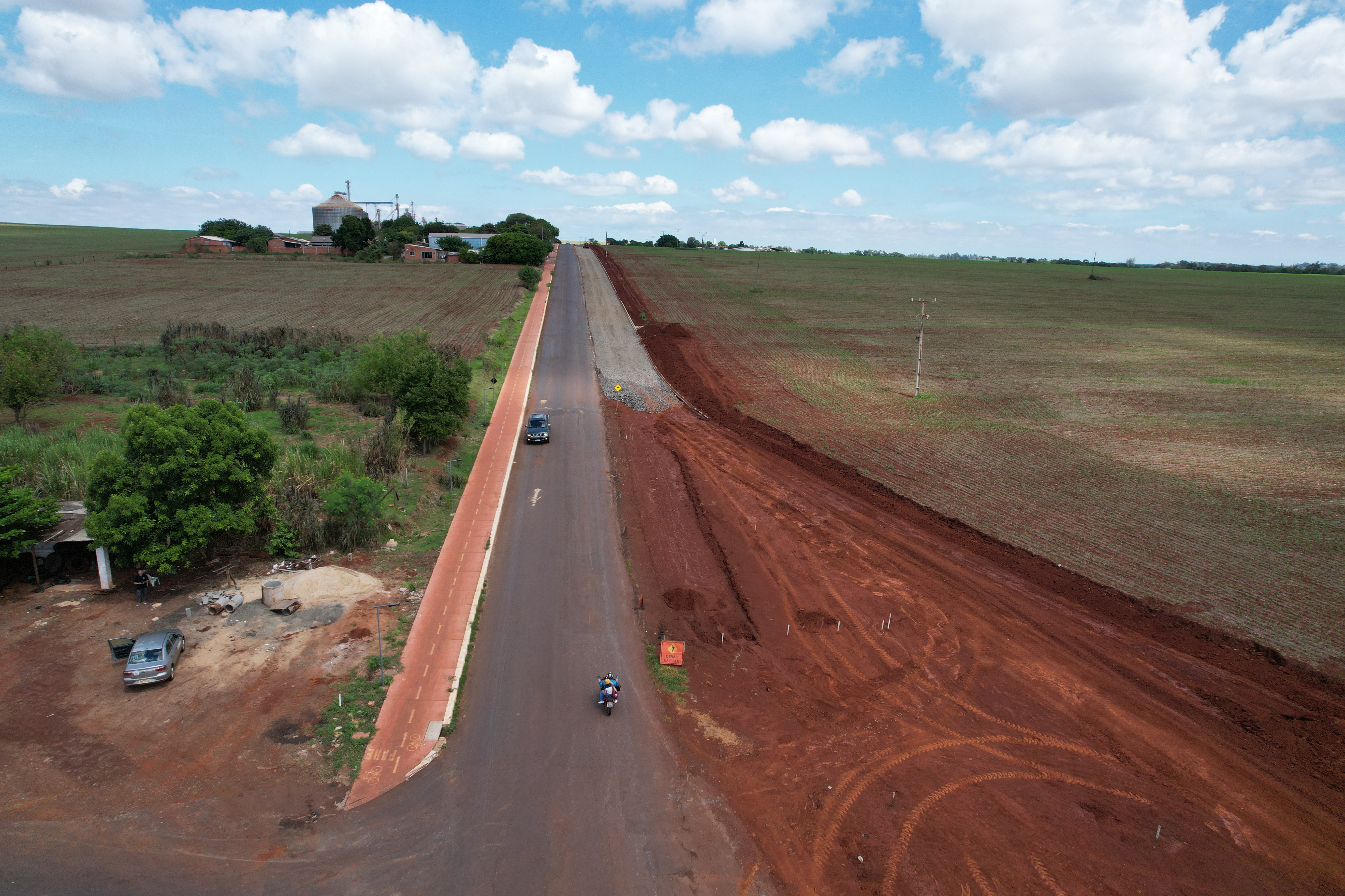 Uma das obras de maior envergadura em andamento atualmente em Itaipulândia é a duplicação da RM-17, no trajeto de Santa Inês à cidade, que já conta com um trecho praticamente concluído, está tomando forma a cada dia.