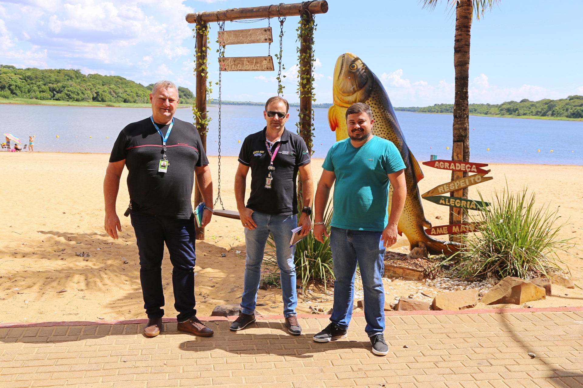 O Secretário de Turismo e Lazer de Itaipulândia Rodrigo Heindrickson, recepcionou representantes do município de Marechal Cândido Rondon que vieram à Itaipulândia conhecer a estrutura da Praia Artificial no Balneário Jacutinga.