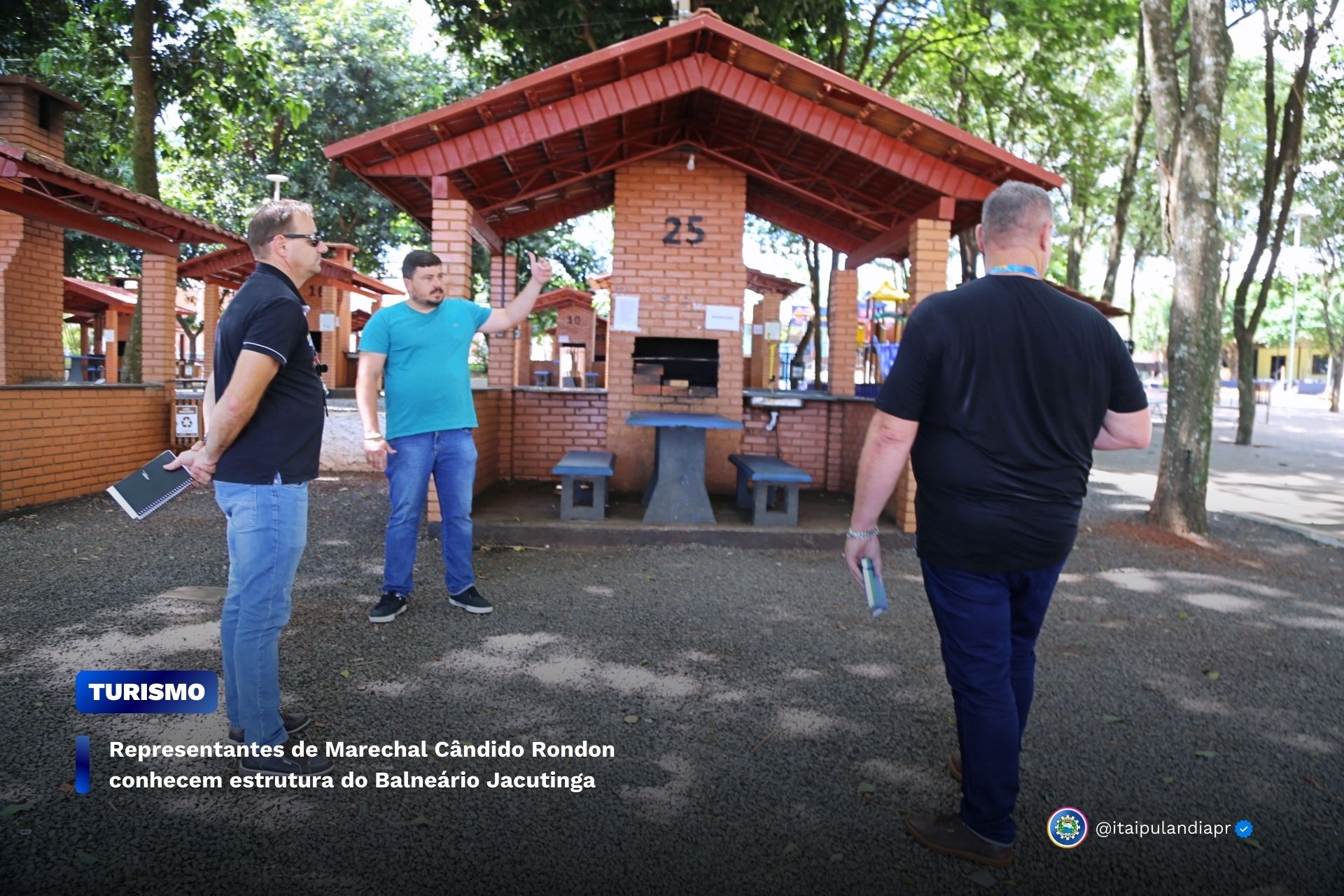 Estiveram em nosso Município o Diretor de Turismo, Neri Wagner e André Wobeto, Coordenador do Parque de Lazer Anita Wanderer de Porto Mendes. Conforme disseram os representantes do Governo Municipal rondonense, o objetivo foi o de conhecer o ambiente do Balneário Jacutinga e sua estrutura, ou seja, quiosques, churrasqueiras, área de camping, setor administrativo, orla da praia e as formas que os usuários e veranistas têm a disposição para usufruírem do local, pois o município de Marechal Cândido Rondon está desenvolvendo projeto para remodelação da Praia Artificial de Porto Mendes.