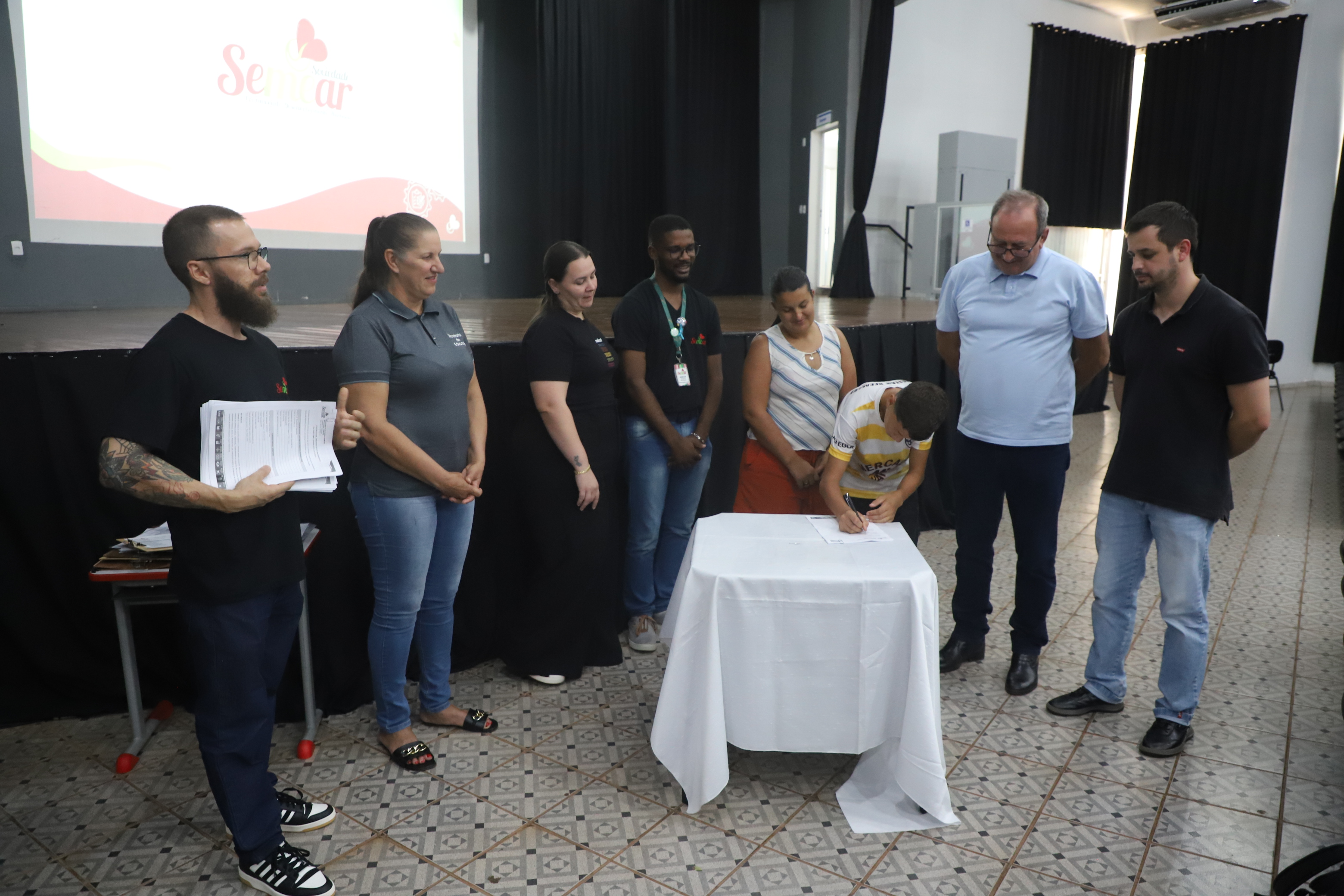 Na programação do evento, as autoridades se pronunciaram dando as boas vindas aos jovens aprendizes e em seguida a equipe técnica da Semear coordenou os trabalhos com a assinatura dos contratos e entrevistas com os familiares.
