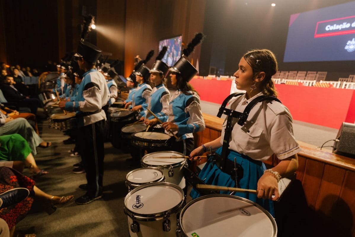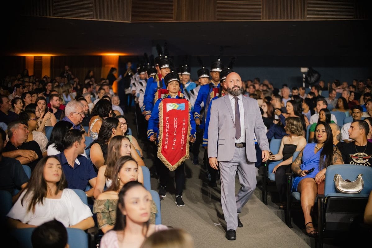 A fanfarra, composta por talentos da cidade de Itaipulândia, demonstrou toda a sua competência e paixão pela música, oferecendo um espetáculo de sons marcantes. Ao som da fanfarra, os graduandos, familiares e amigos presentes puderam vivenciar um momento de celebração único, que combinou o tradicional com o inovador, criando uma atmosfera alegre e festiva.