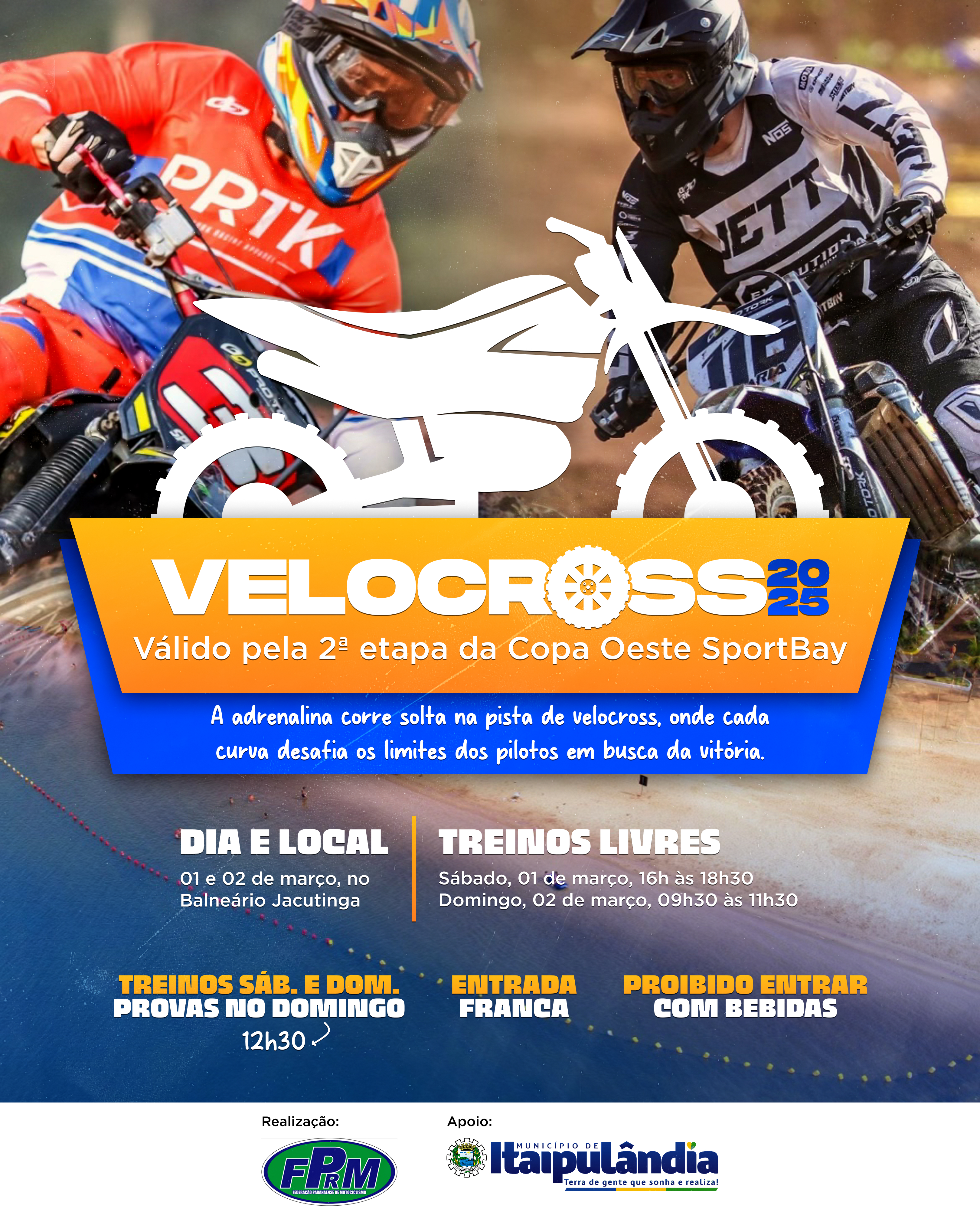 Neste final de semana, nos dias 01 e 02 de março no Balneário Jacutinga vem aí: Velocross 2025 – 2ª Etapa da Copa Costa Oeste Sportbay