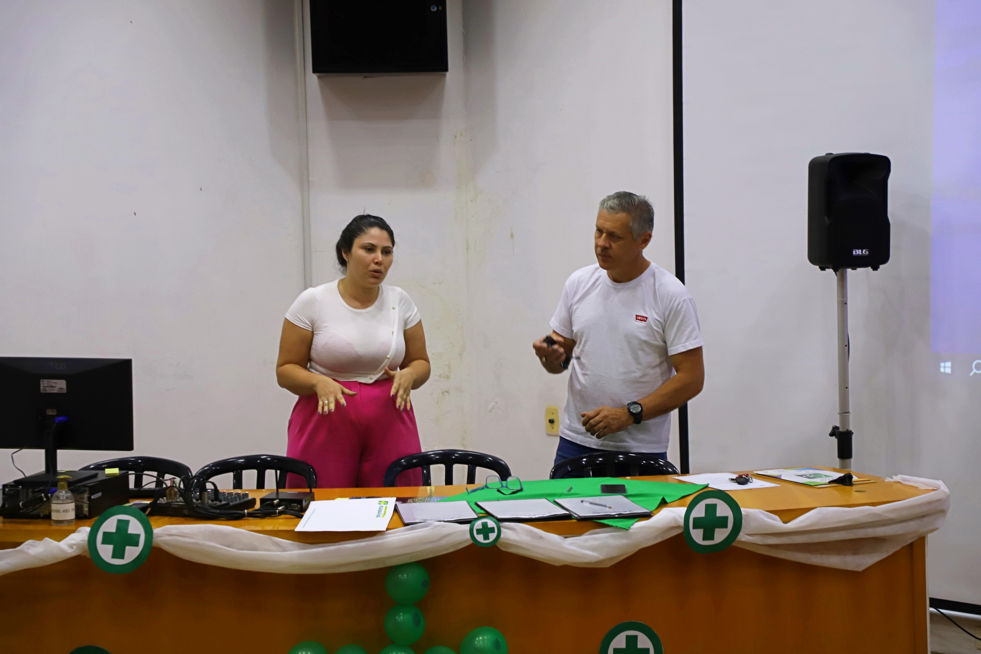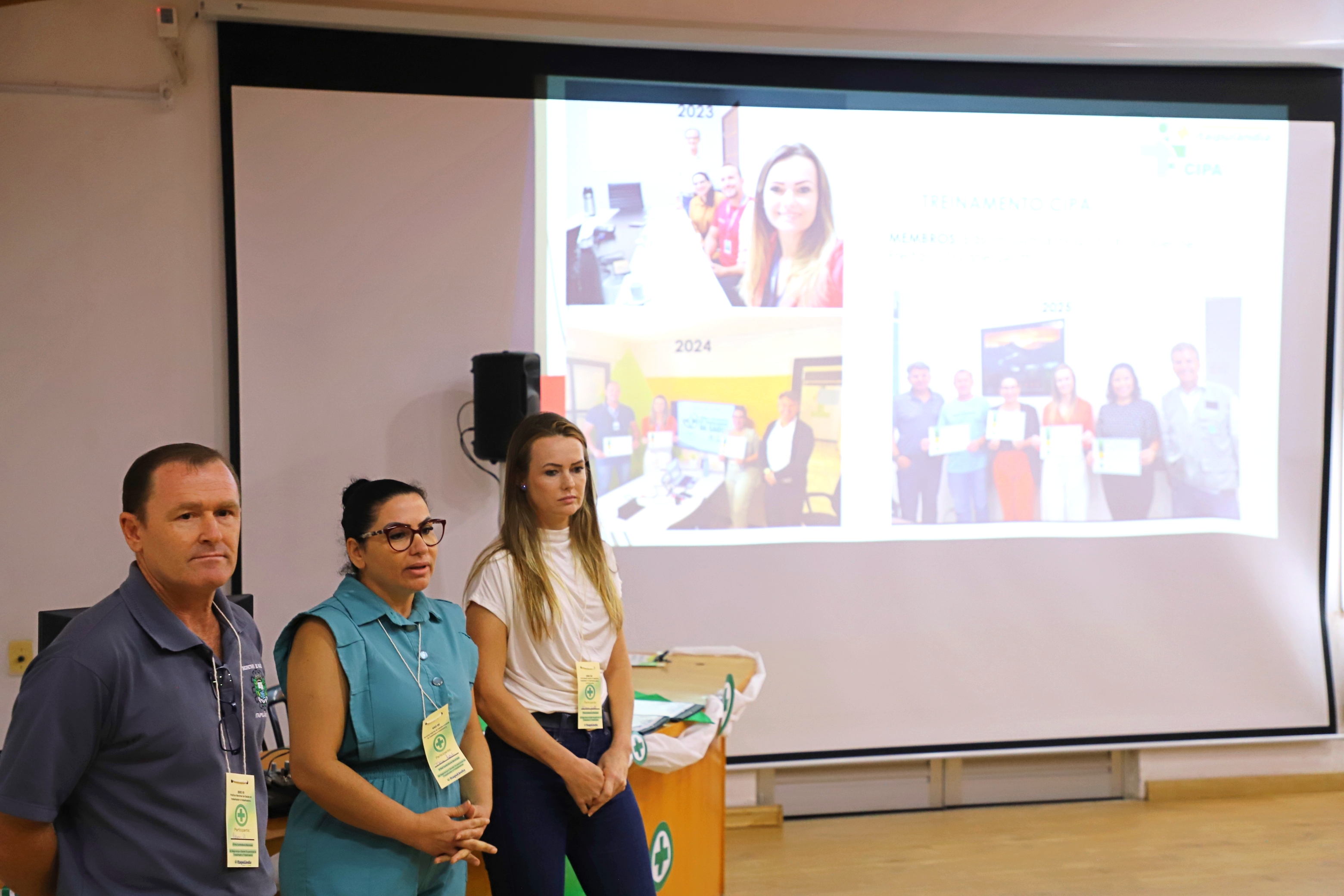 A conferência contou com palestras informativas: Ilonei Matthes abordou a importância da ergonomia, destacando a postura correta e adaptações necessárias para evitar problemas de saúde ocupacional. Já a equipe da CIPA do Hospital, representada por Maria Isabel de Freitas, Silvane Groth e Edsom Holz, enfatizou a necessidade de prevenção e conscientização sobre acidentes de trabalho. Finalizando a programação, as acadêmicas da Uniguaçu, Estéfani Lipski e Gabriele Inácio, discutiram saúde mental no ambiente profissional e as recentes mudanças na NR-01.