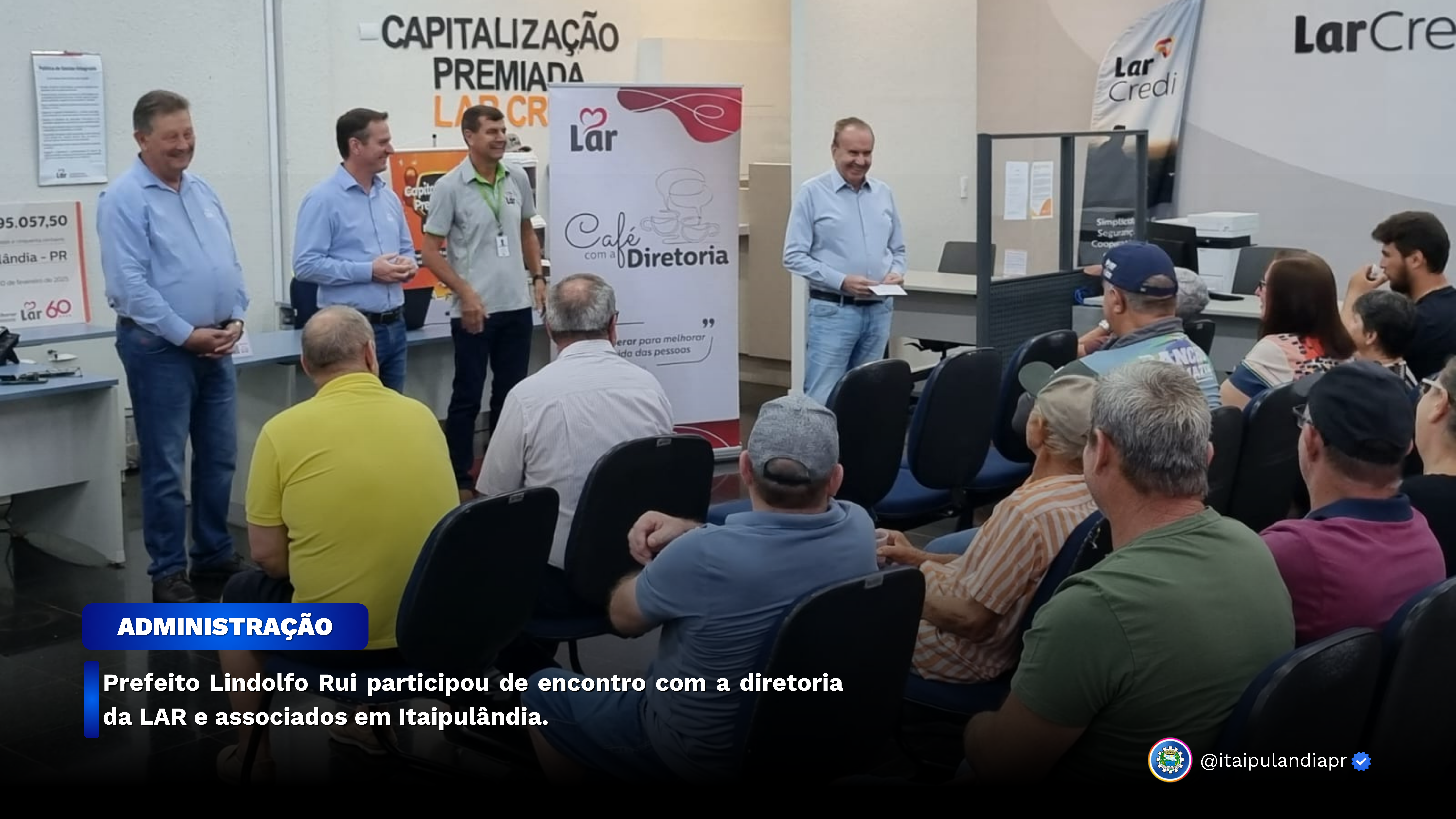Prefeito Lindolfo Rui participou de encontro com a diretoria da LAR e associados em Itaipulândia