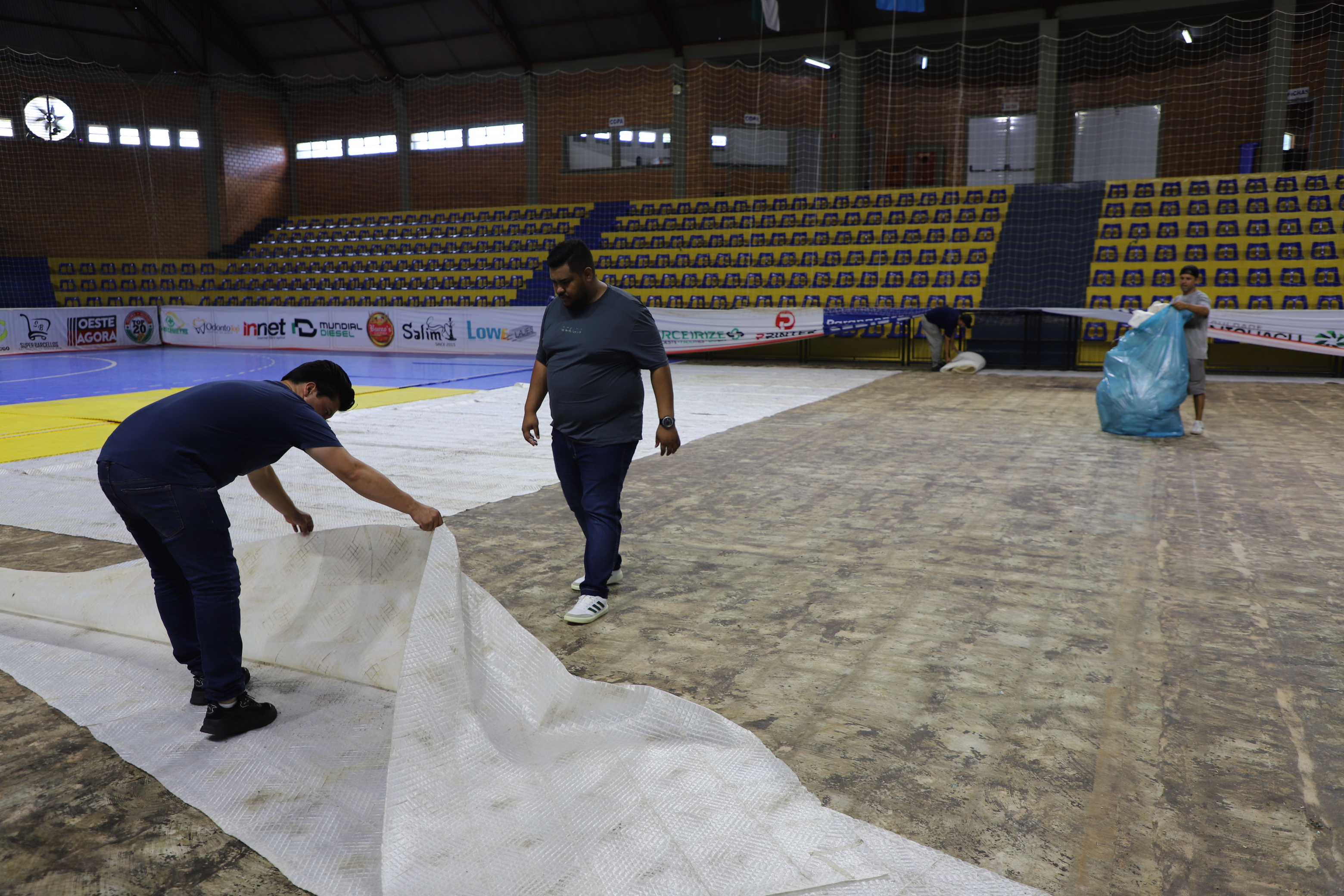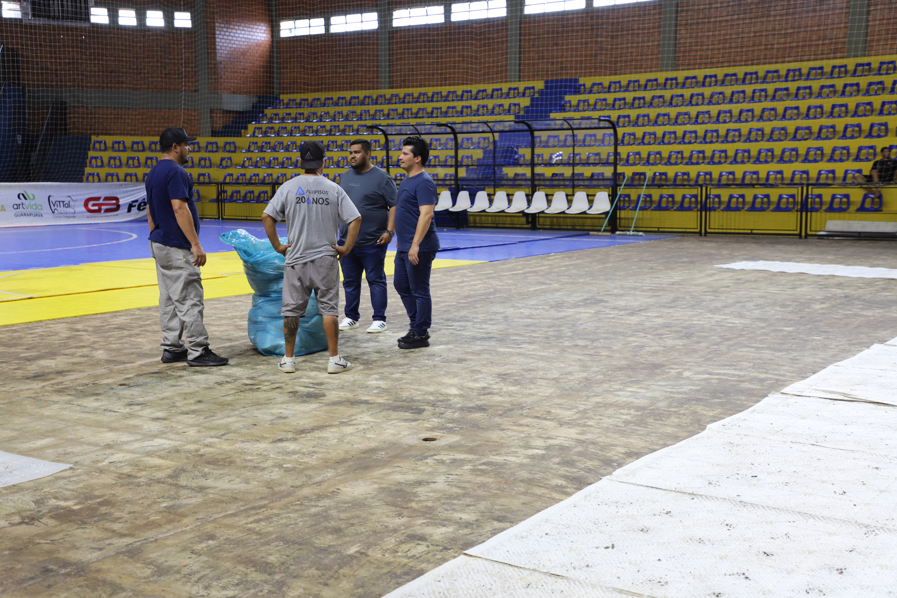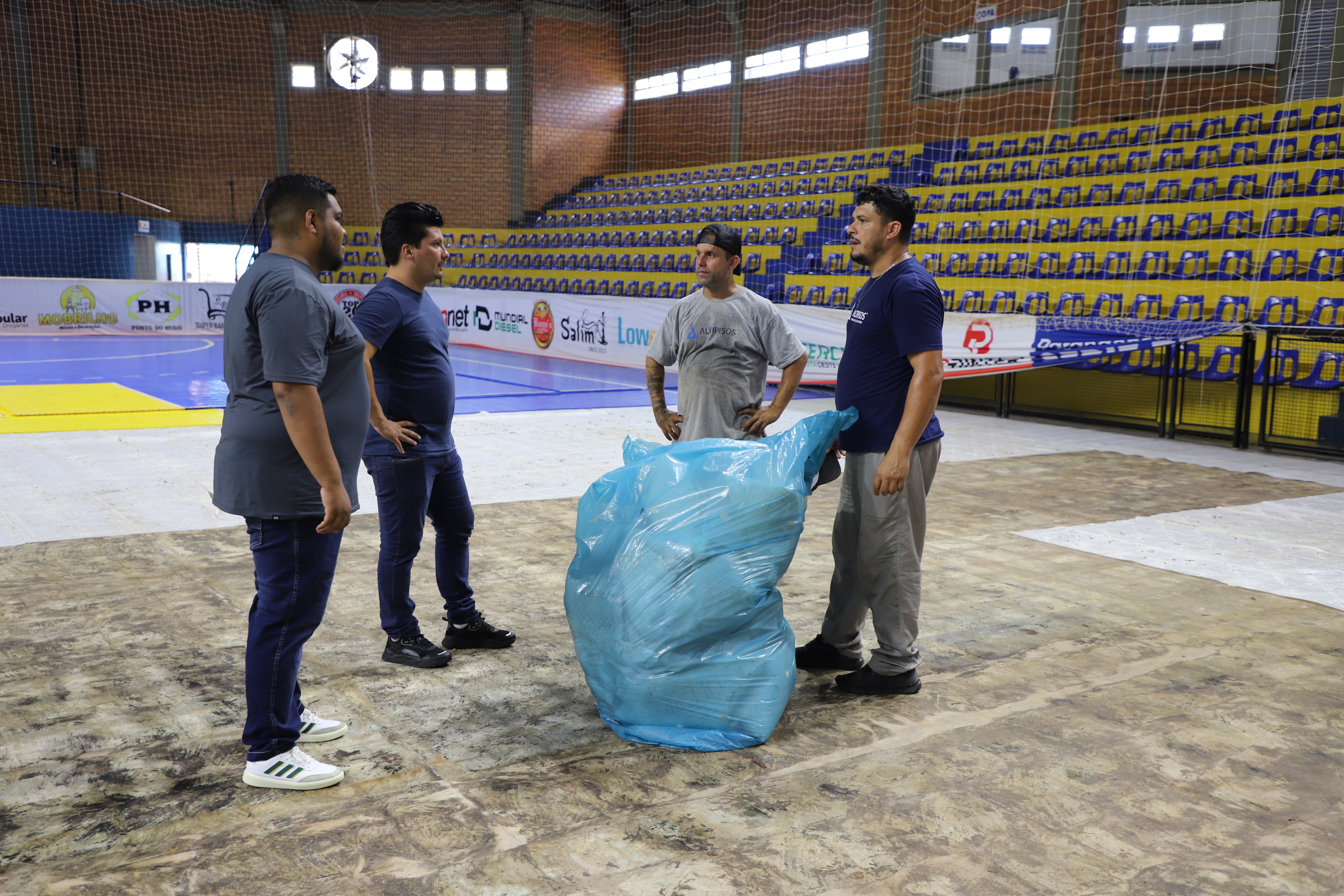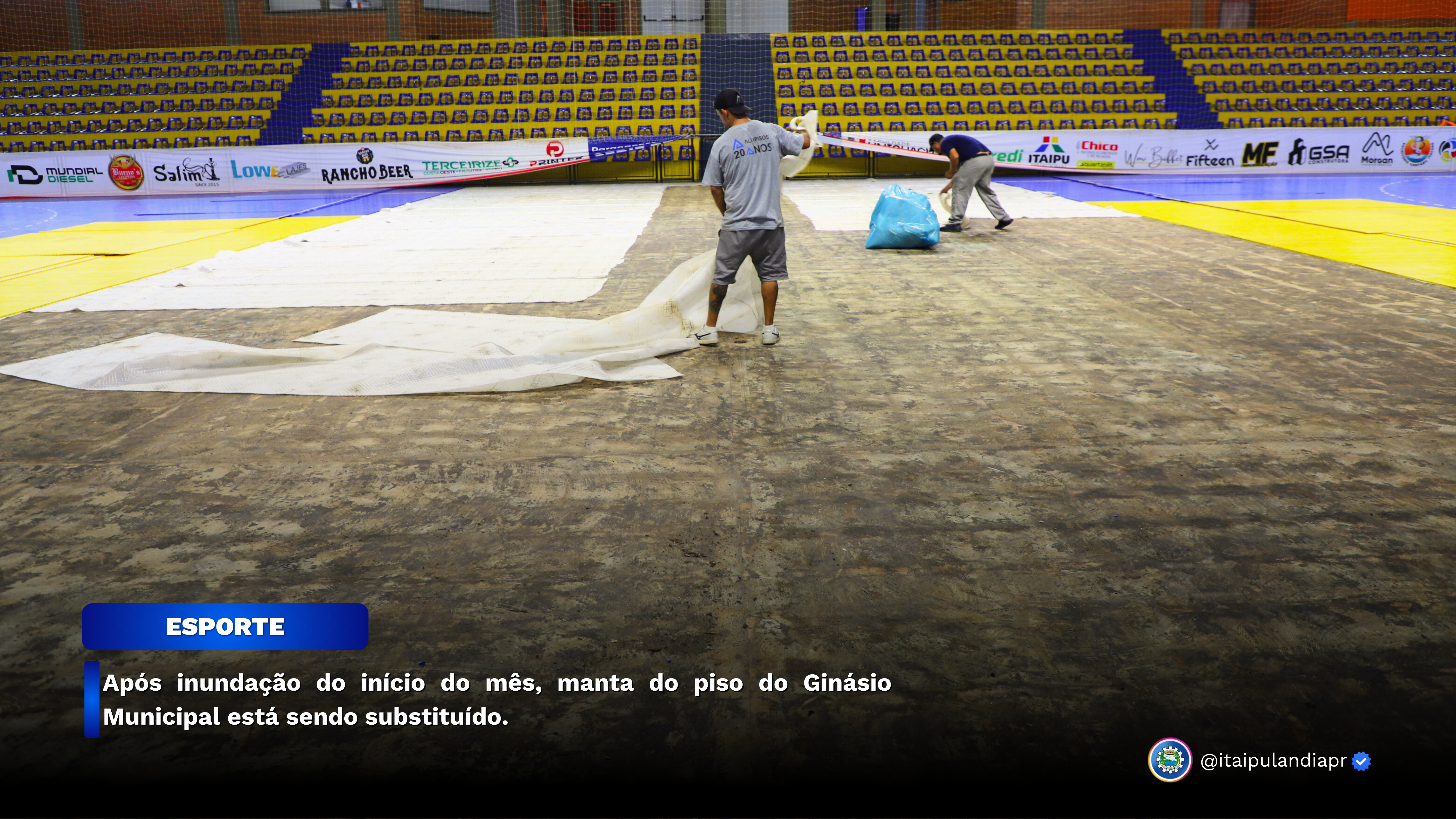 Nesta semana, a empresa contratada para substituir a manta do piso do Ginásio iniciou os trabalhos e a Secretaria de Cultura e Esportes está acompanhando de perto o desenvolvimento dos trabalhos uma vez que no mês de março Itaipulândia tem sua estreia no Campeonato Paranaense de Futsal Série Ouro.