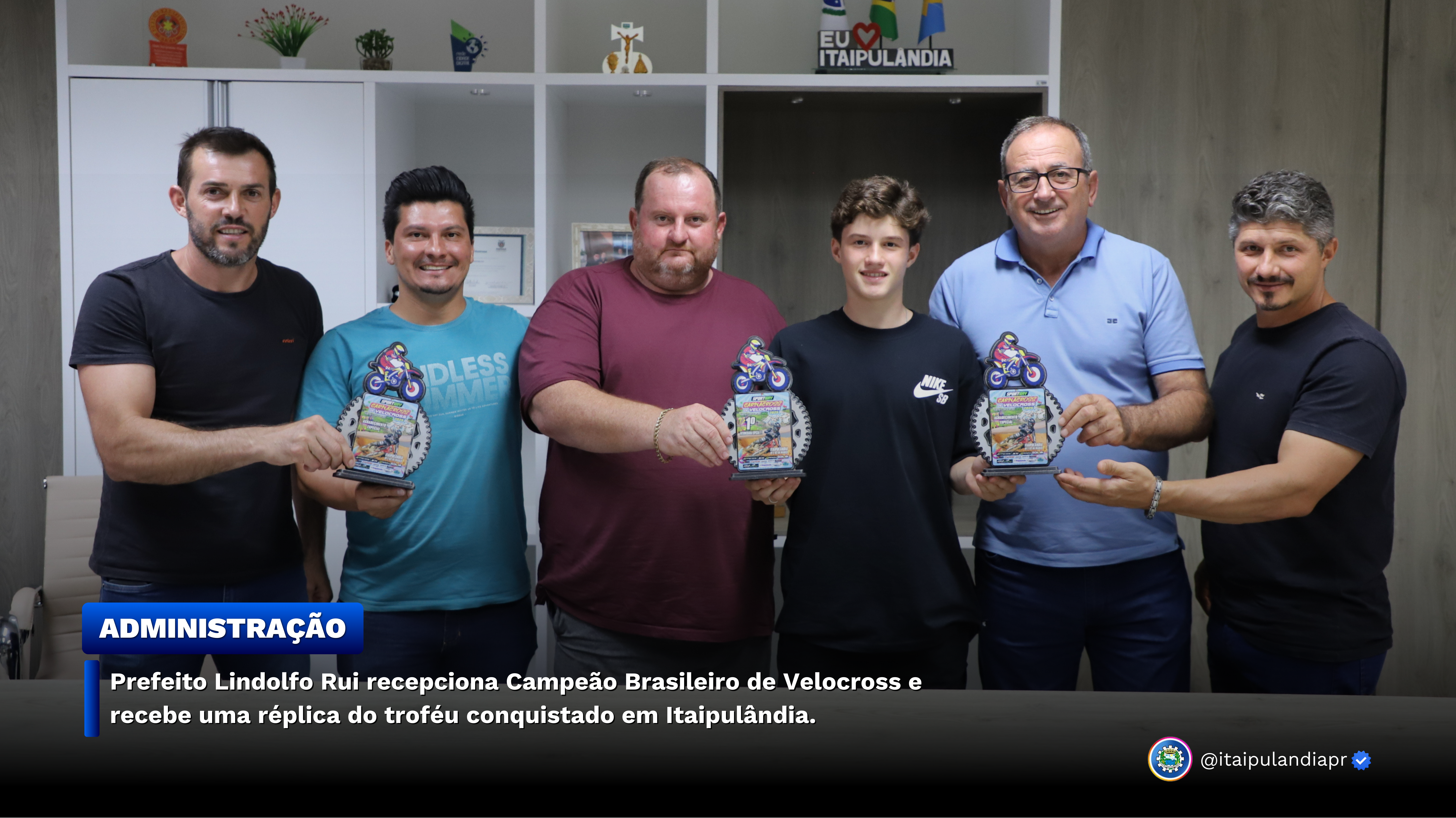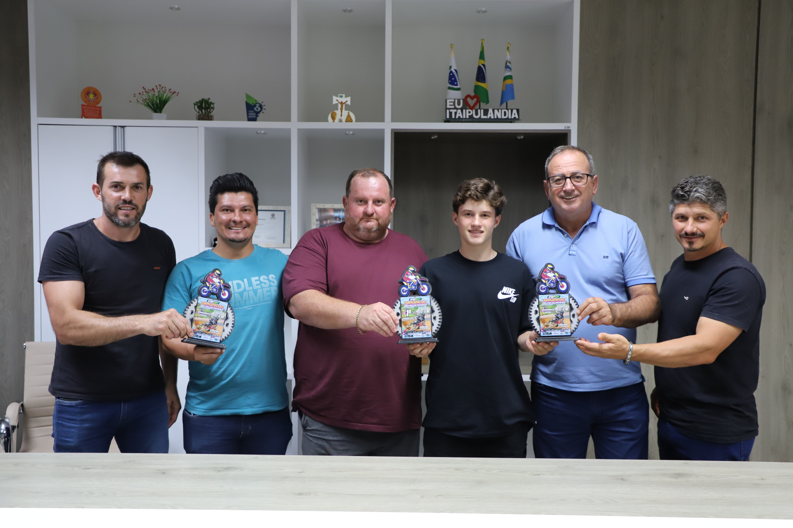 Na tarde de segunda-feira (10), o Prefeito Lindolfo Rui, recepcionou em seu gabinete, o piloto medianeirense Caio Grosbelli, de 14 anos de idade. A visita teve como objetivo apresentar-se ao gestor municipal e entregar uma réplica do troféu da 2ª Etapa da Copa Oeste de Velocross conquistado em Itaipulândia.