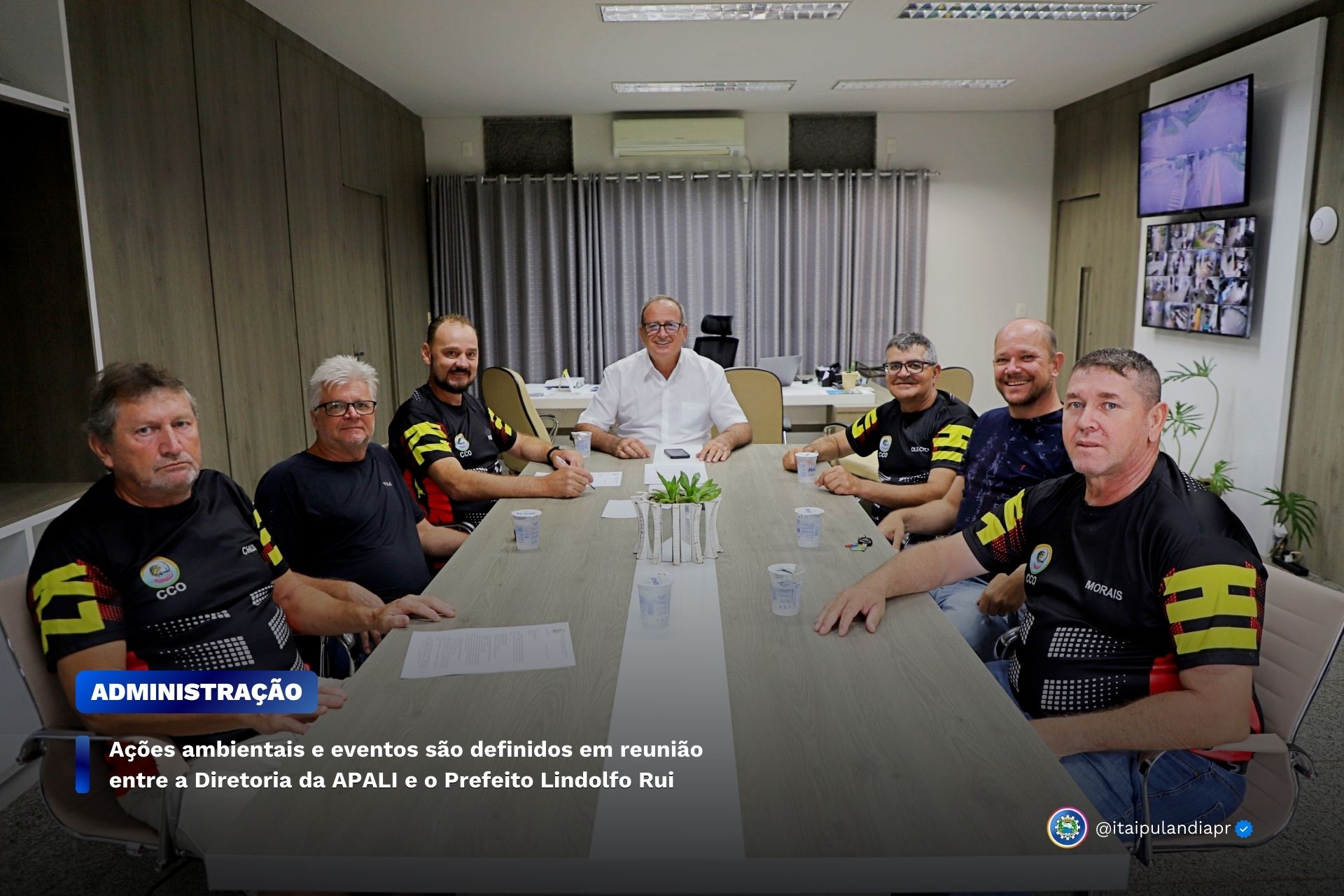 Na manhã de quarta-feira (12), o prefeito Lindolfo Rui recebeu em seu gabinete membros da Diretoria da APALI – Associação de Pesca Amigos do Lago de Itaipu. A reunião teve como foco principal, a troca de ideias entre os representantes da APALI e o mandatário municipal com relação à eventos e ações ambientais que estão sendo programados pela entidade.