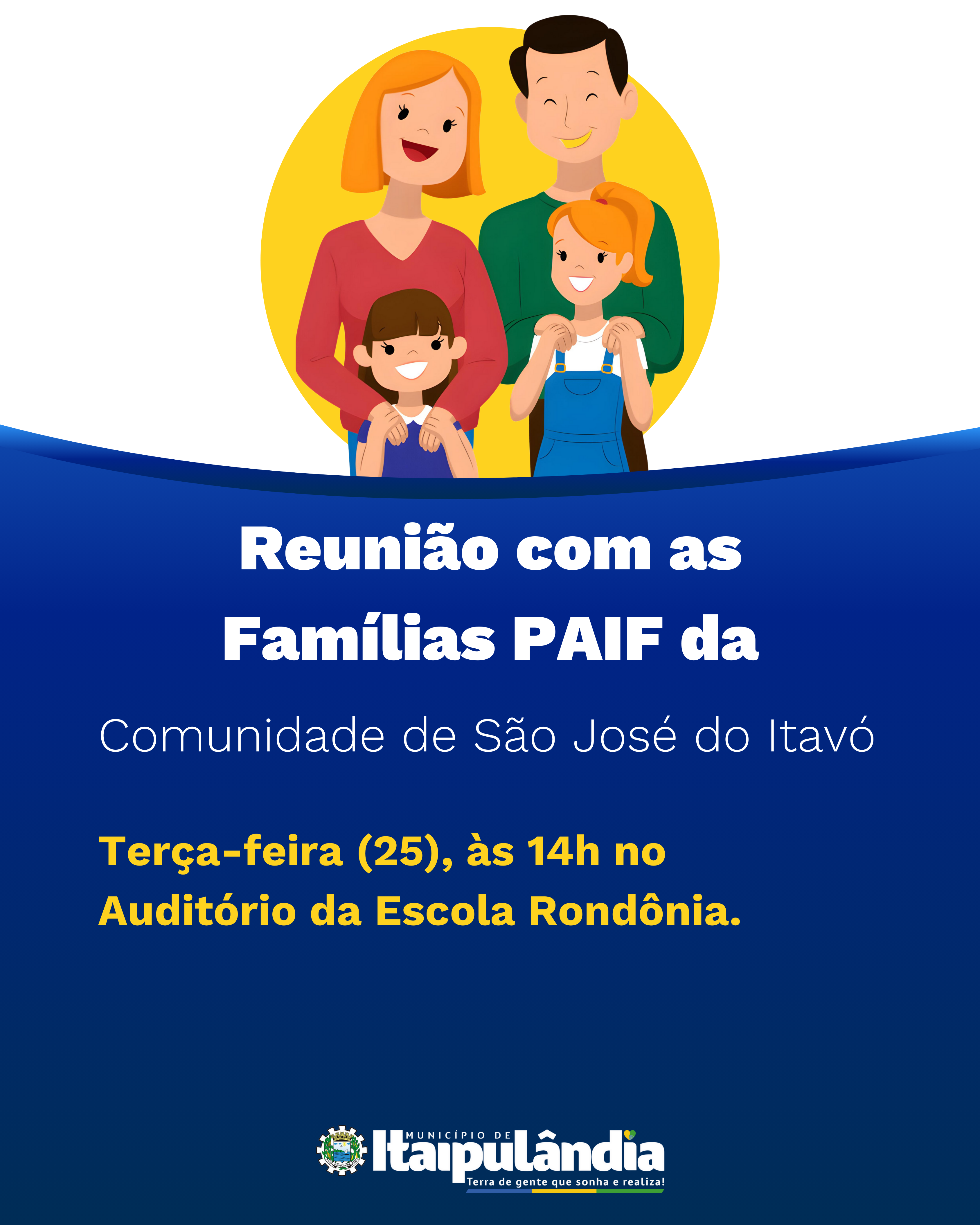 Terça-feira, 25 de março, às 14h, na comunidade de São José do Itavó no Auditório da Escola Rondonia