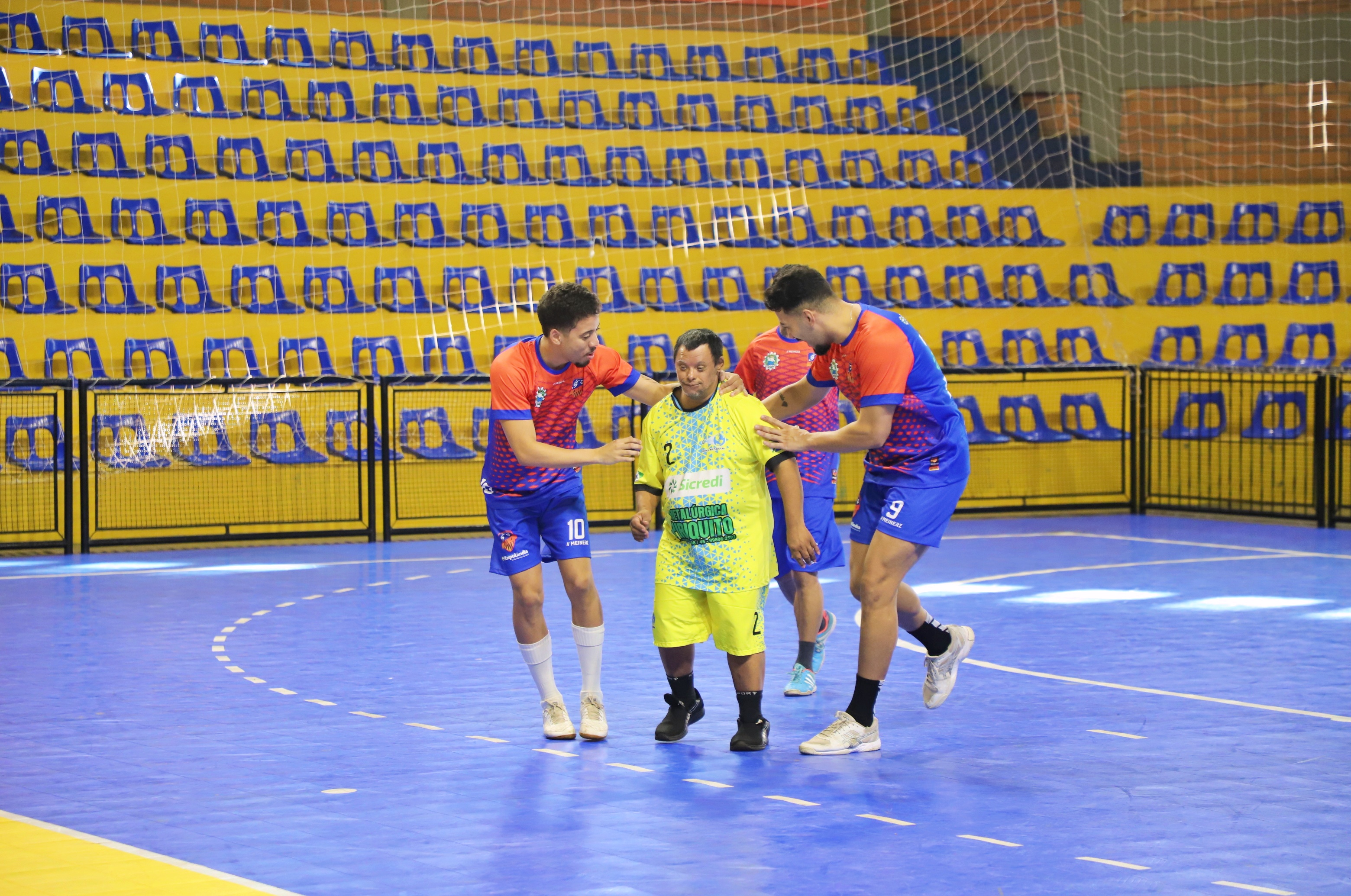 Na manhã desta segunda-feira (17), o Ginásio Irineu Luís Friedrich foi palco de um amistoso especial entre a Escola Multi Educar e a equipe da AFI Itaipulândia. Mais que um simples jogo, o encontro promoveu um momento de inclusão e alegria para todos os envolvidos.