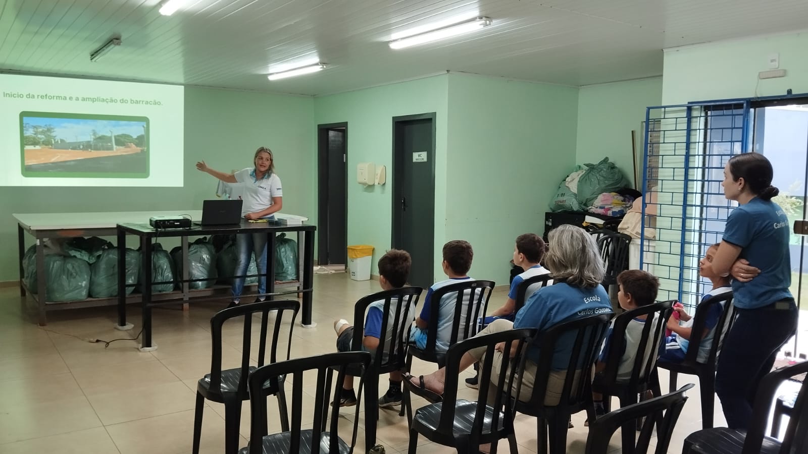 O encontro, promovido pela parceria entre as Secretarias de Educação e Meio Ambiente, teve como objetivo apresentar aos alunos o processo de reciclagem realizado pela associação.