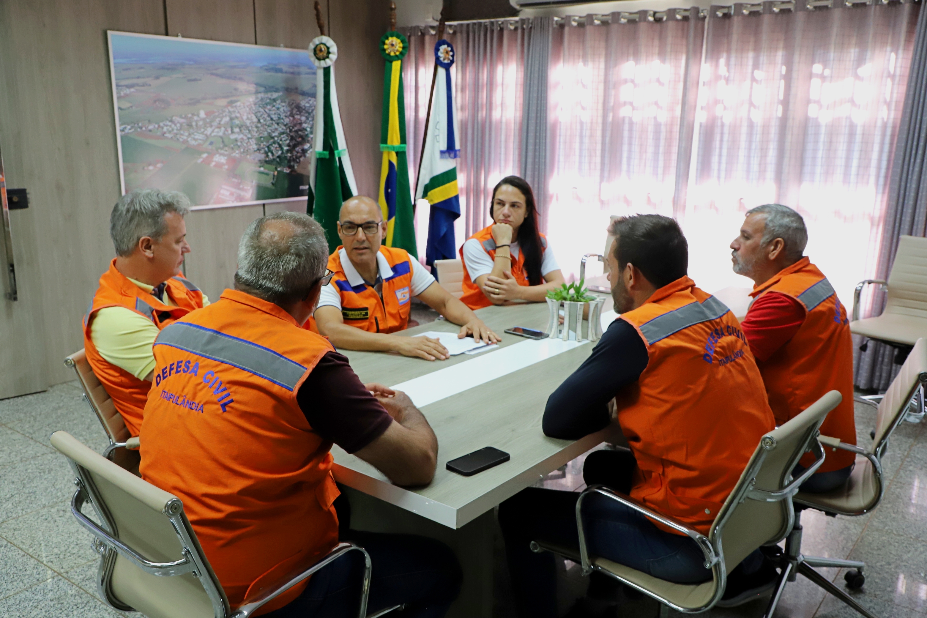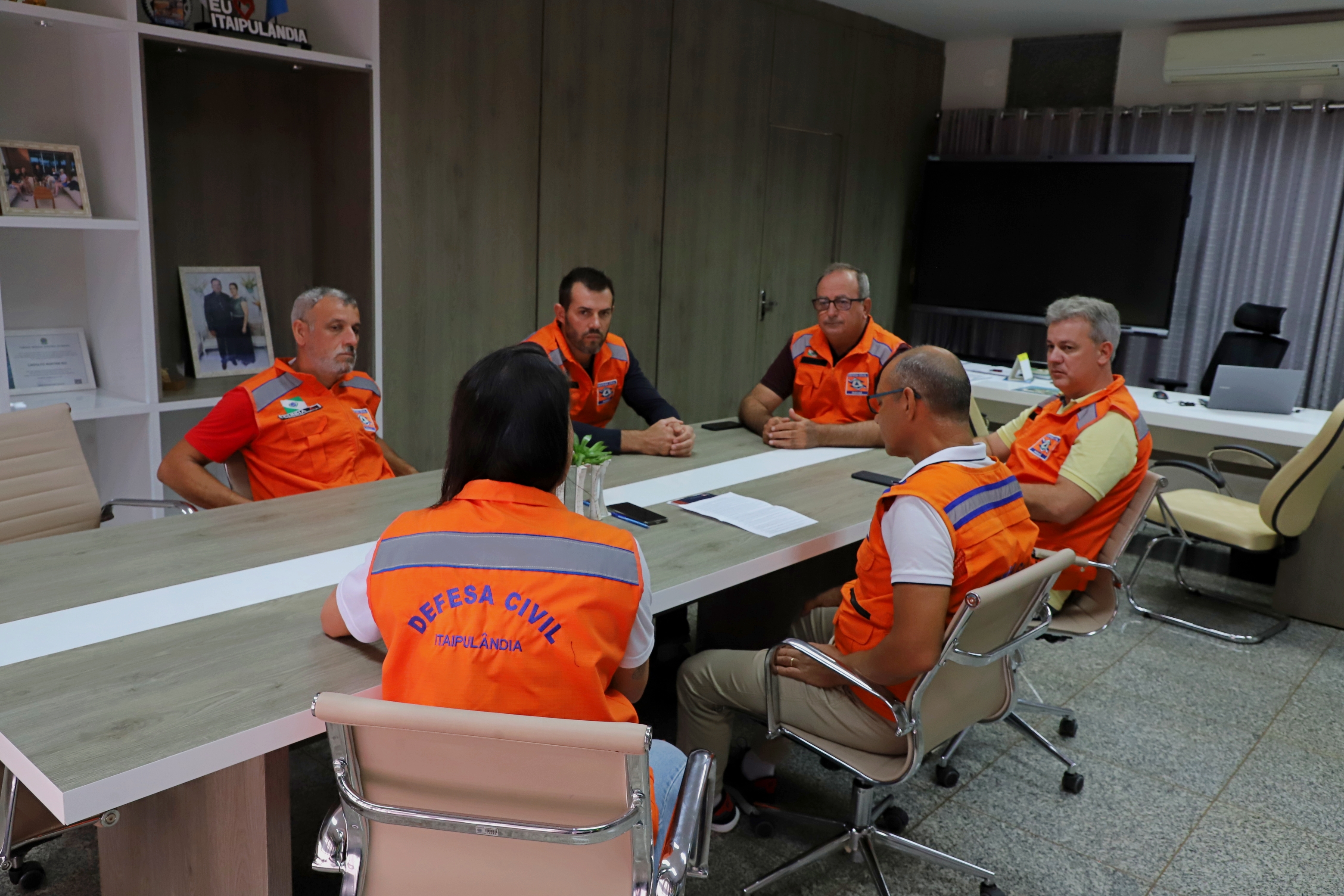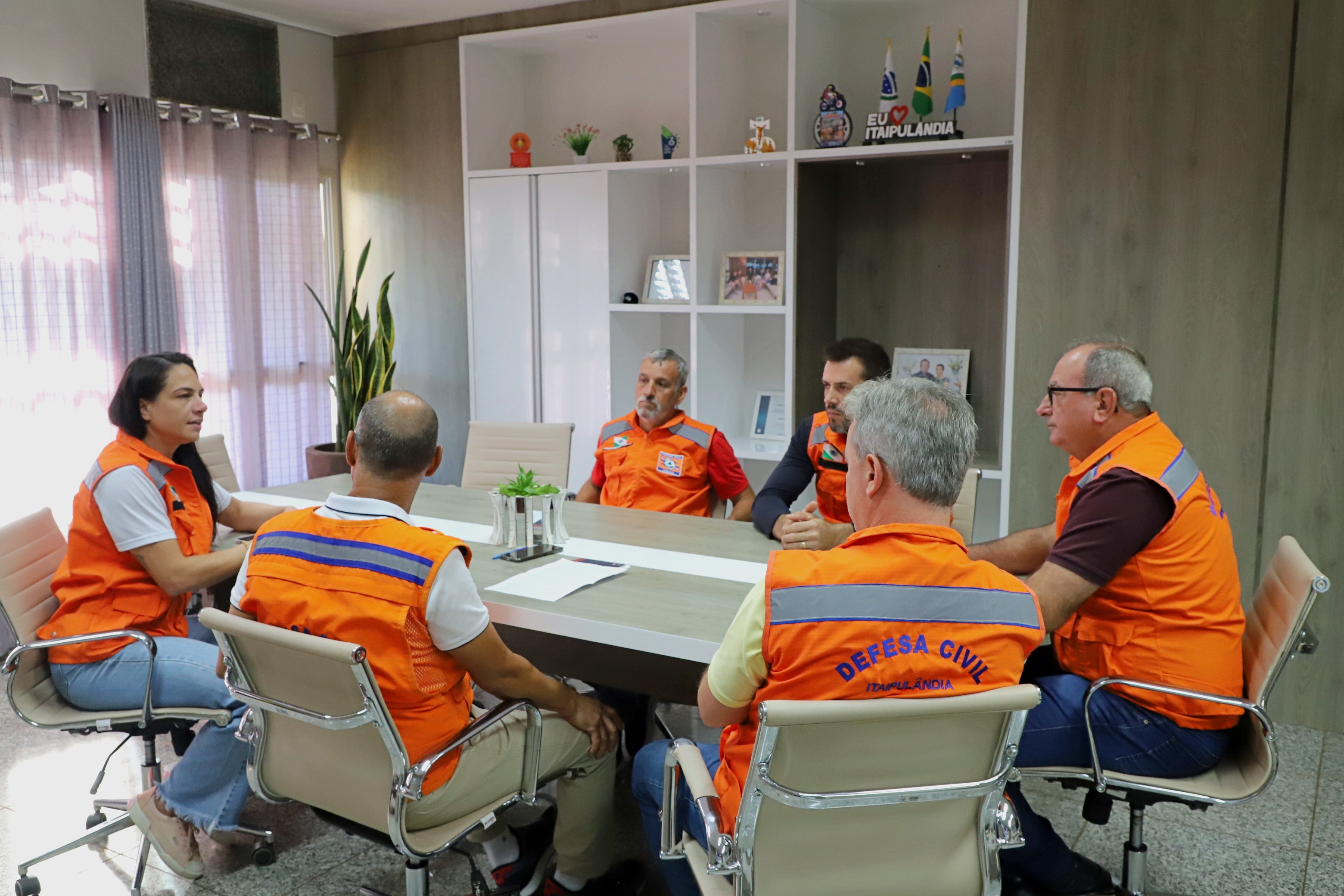Participaram da reunião o Secretário de Agricultura Rodrigo Pavinatto, Coordenadora Vanessa Betanin Pavinatto, o diretor operacional local Selismar Cunha, todos membros da Defesa Civil de Itaipulândia, e Reinaldo Rodrigues de Oliveira, representante da Defesa Civil do estado do Paraná na região oeste.