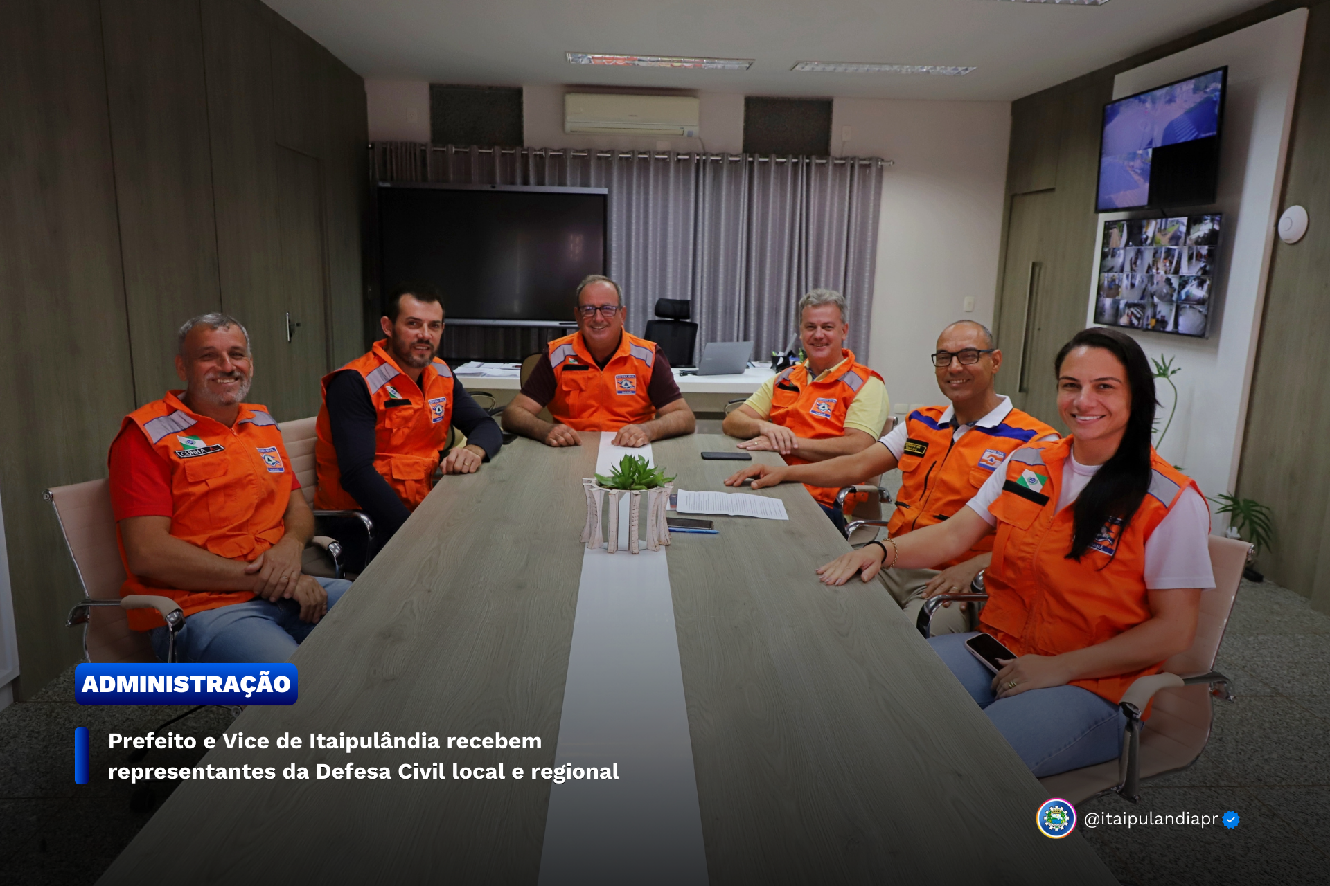 Na manhã desta quarta-feira (18), o Prefeito Lindolfo Rui e o Vice-Prefeito Adolfo Preis, receberam no gabinete oficial do Paço Municipal equipe da Defesa Civil de Itaipulândia e membro da Defesa Civil do Paraná.