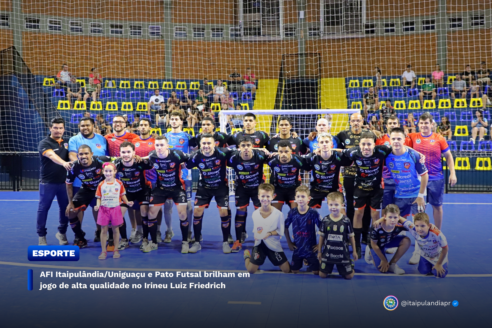 Na noite de ontem, quarta-feira (19), o Ginásio Irineu Luiz Friedrich foi palco de uma emocionante partida de futsal pelo Campeonato Paranaense Série Ouro, quando a AFI Itaipulândia/Uniguaçu enfrentou o Pato Futsal, atual campeão paranaense da categoria. Foi um jogo que ficou marcado pela intensidade e pela habilidade técnica dos atletas. A partida, que atraiu um público vibrante, proporcionou um verdadeiro show para os torcedores presentes.