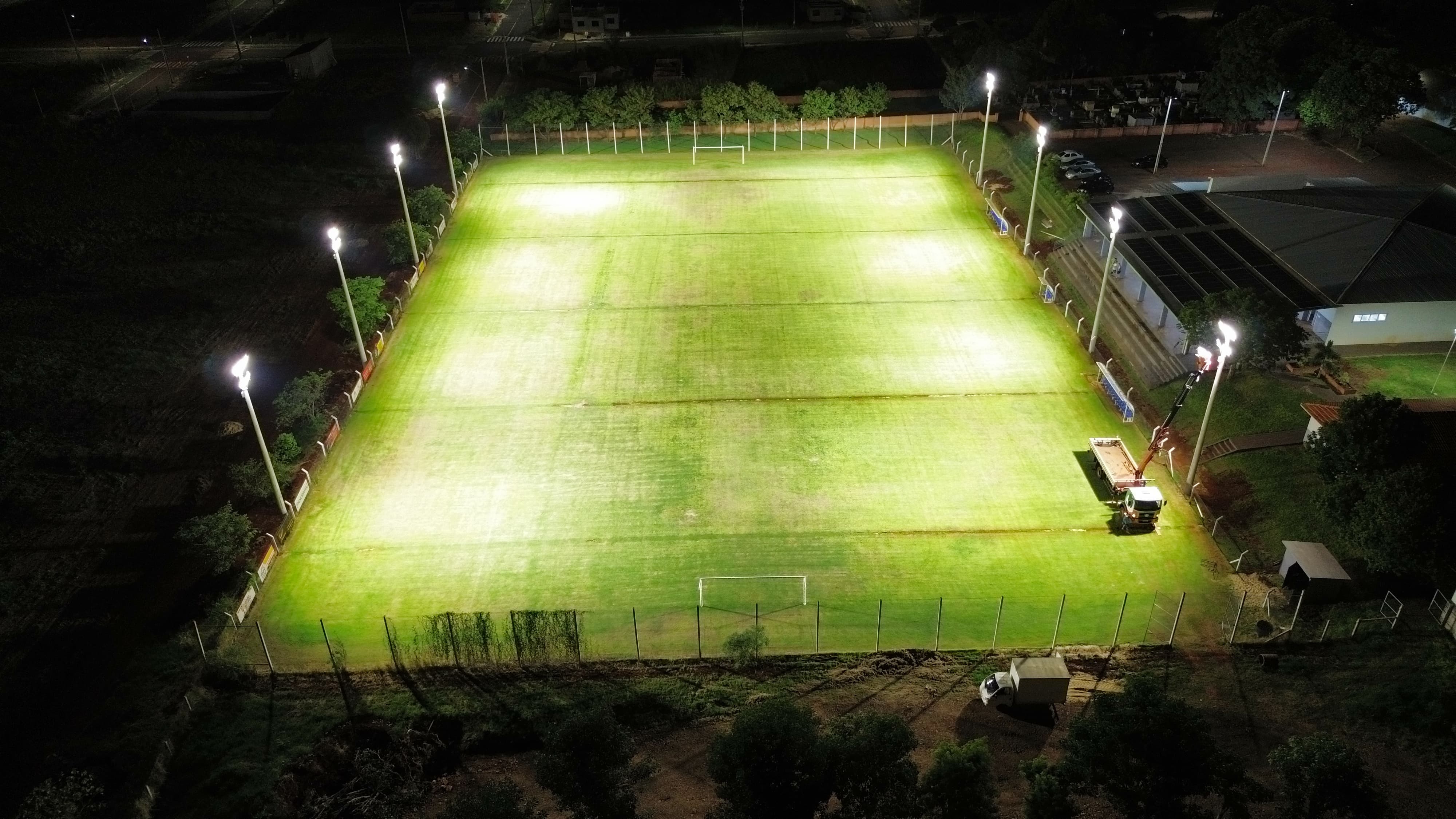 O campo recebeu a instalação de 08 (oito) postes de 17 metros de altura com 36 luminárias de 500w, em LED, o que propiciou uma iluminação de qualidade para atividades esportivas noturnas. Pra disso, foi ampliada a carga de energia para suportar as necessidades com a iluminação e irrigação.