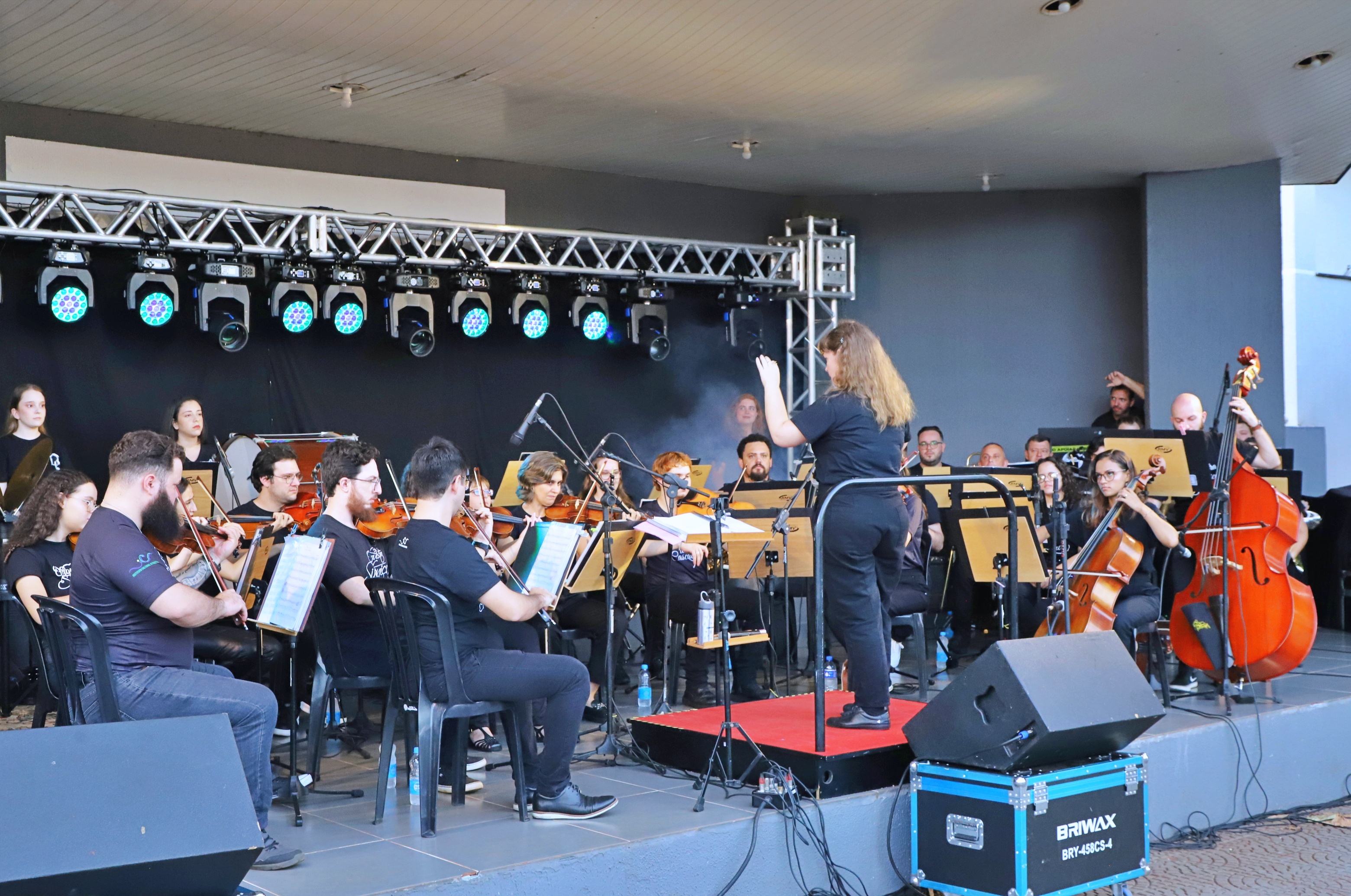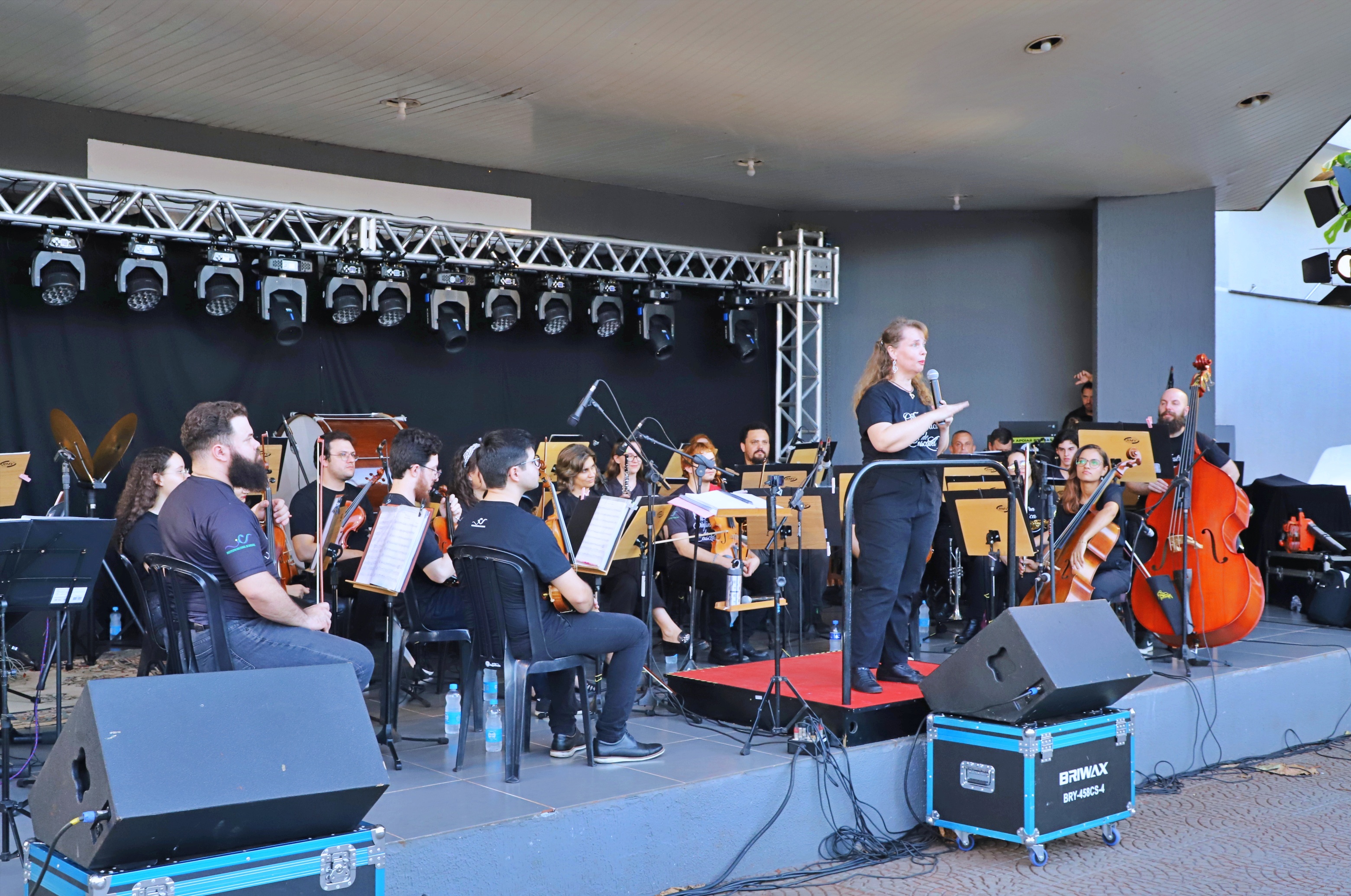 Com um repertório diversificado, a Orquestra Sinfônica de Cascavel proporcionou uma viagem sonora pelo mundo da música clássica, interpretando diversos compositores, até obras de contemporâneos. A maestrina Giordana Galvan Lube conduziu o público por essa jornada musical. A apresentação foi uma oportunidade rara de vivenciar a grandiosidade da música sinfônica em um ambiente aberto, valorizando a cultura e a arte local e regional. A orquestra, com seu talento e dedicação, faz as apresentações visando promover a educação musical e o fortalecimento da cena cultural na região.
