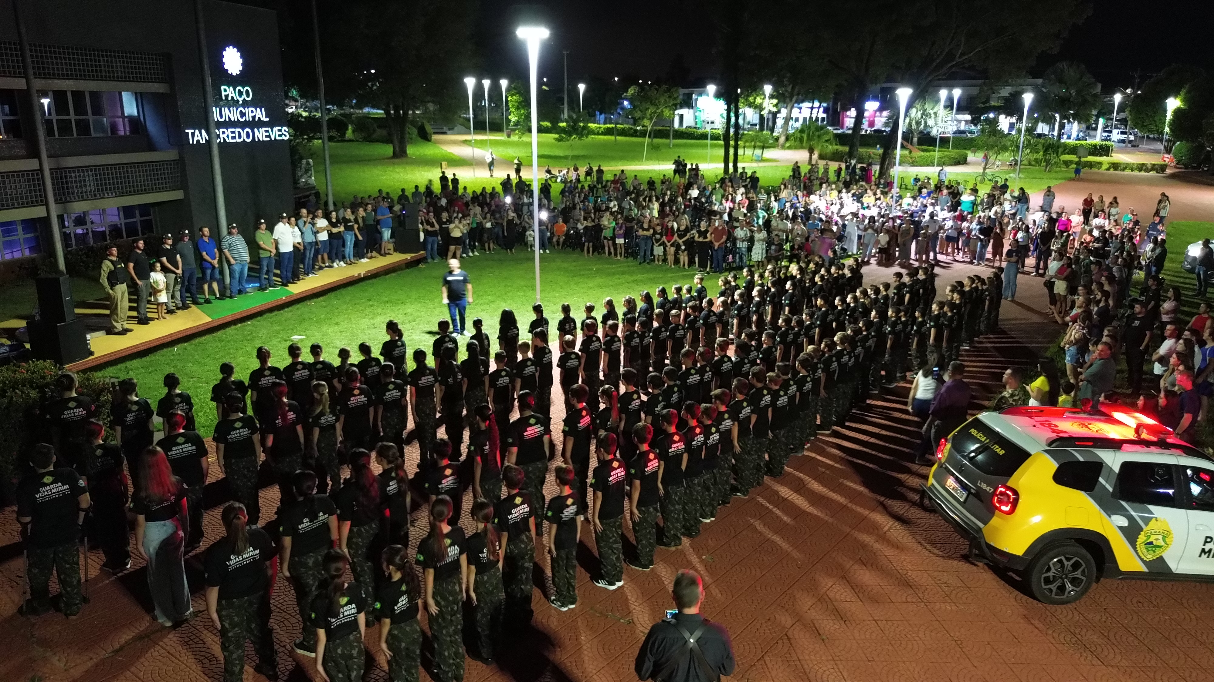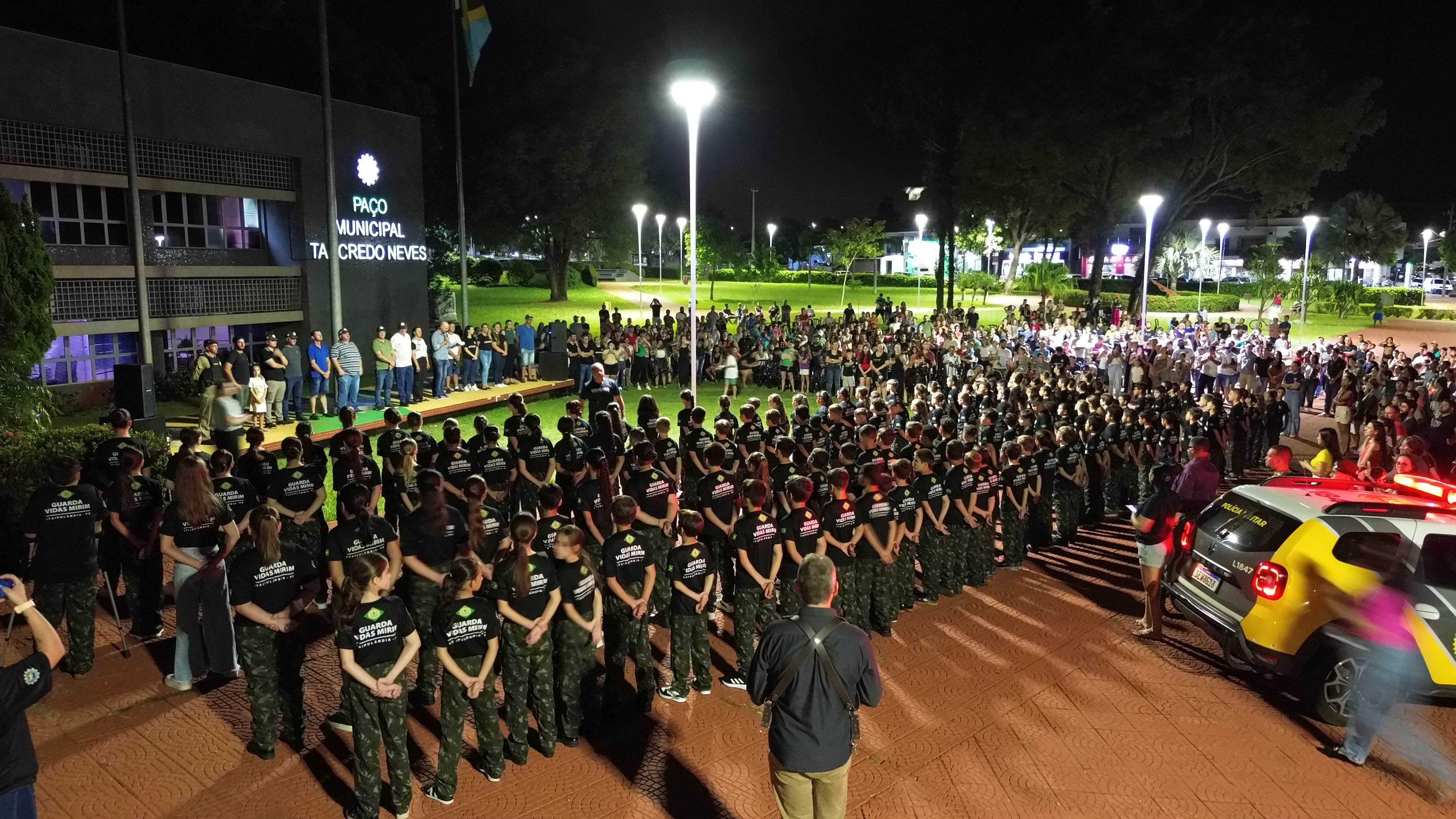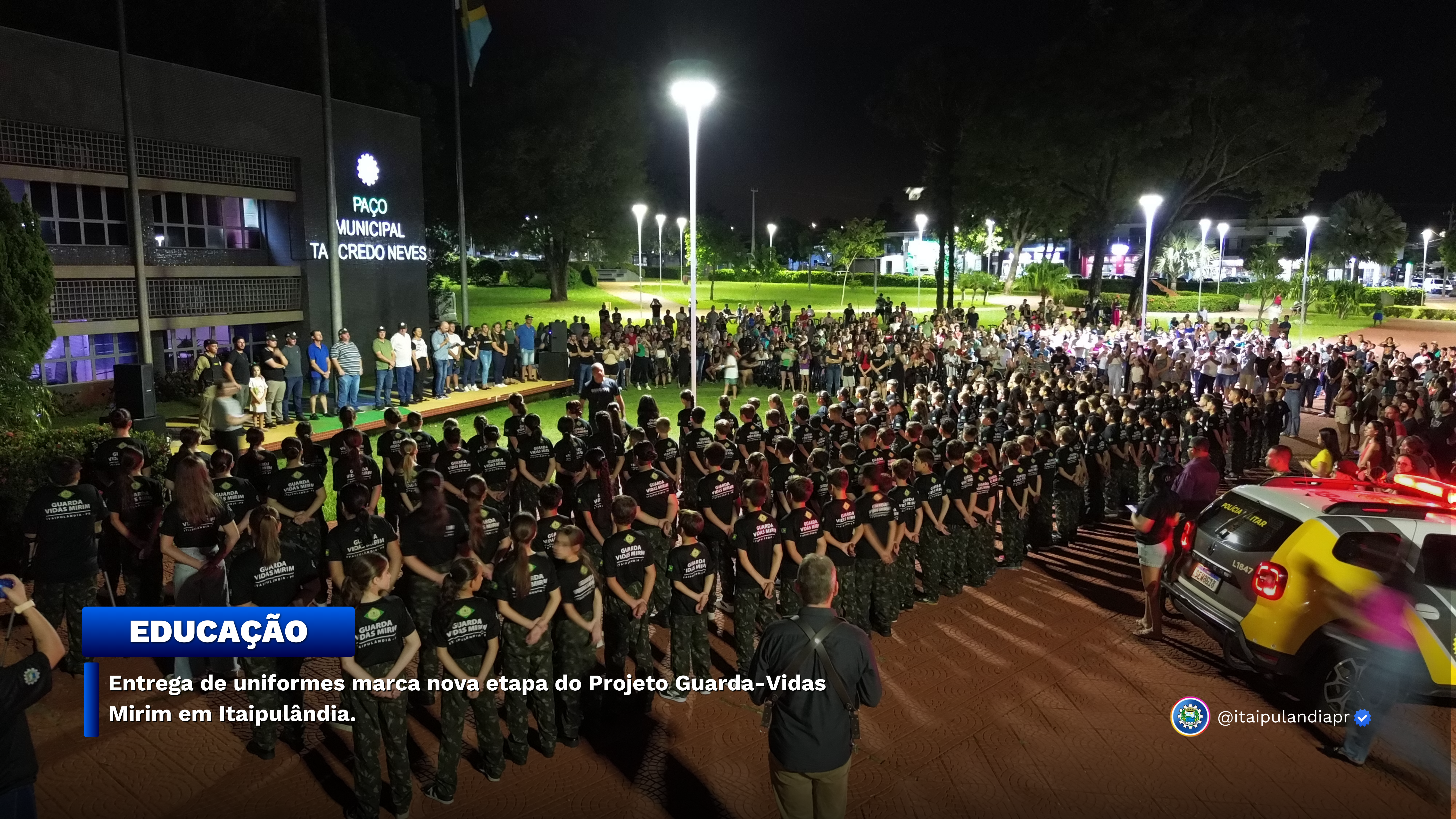 Na quinta-feira (28), o município de Itaipulândia, por meio da Secretaria de Educação, juntamente com o Curumim Projetos Sociais, realizou a cerimônia de entrega de uniformes e bonés para os 160 alunos das escolas municipais que participam do Projeto Guarda-Vidas Mirim. O evento reuniu autoridades municipais, representantes da Câmara de Vereadores, diretores escolares, coordenadores do projeto, Polícia Militar, SAMU, além de pais e familiares dos alunos.
