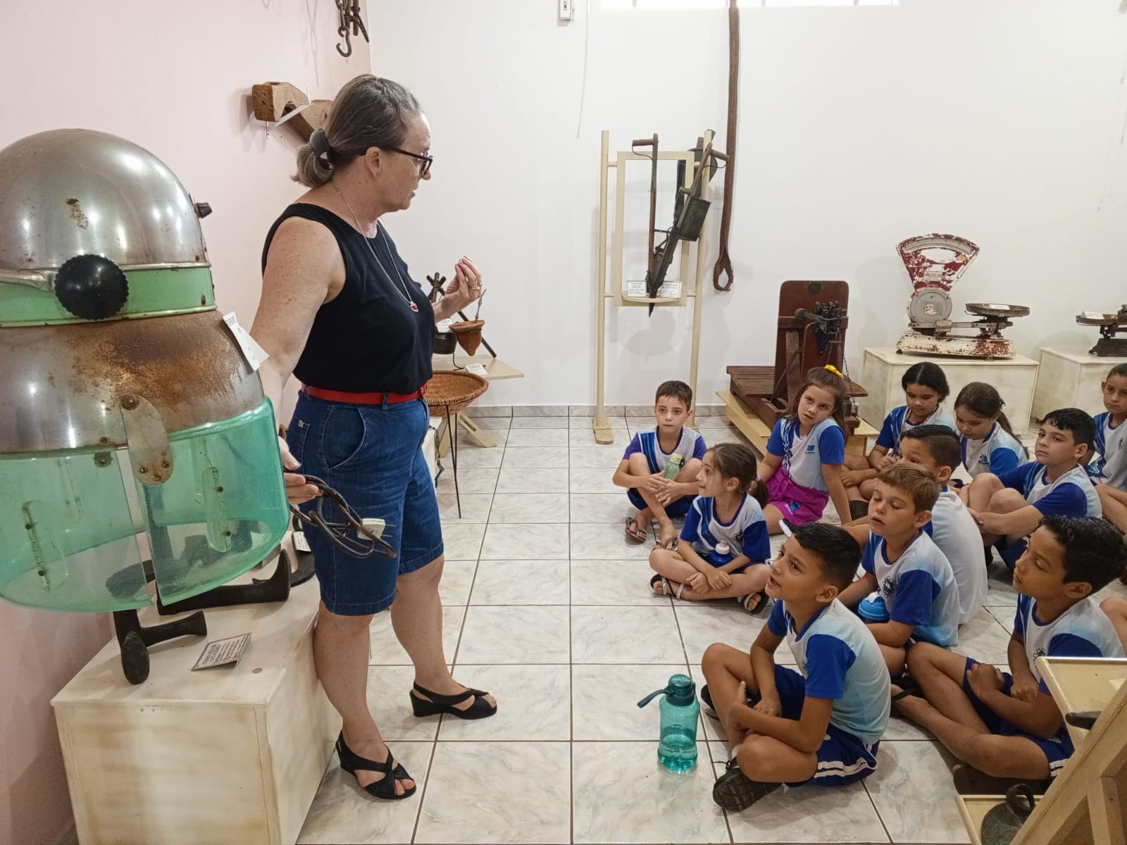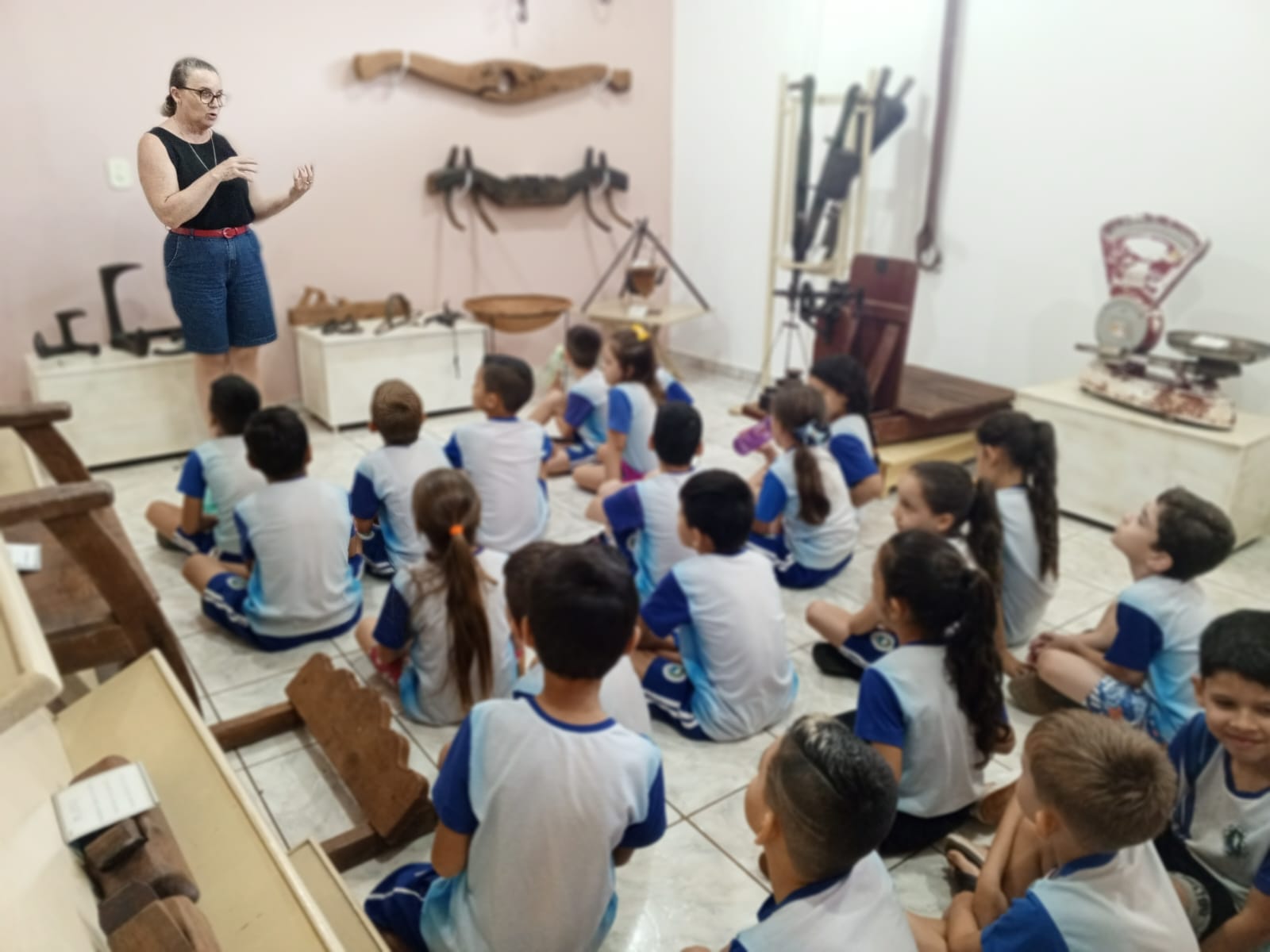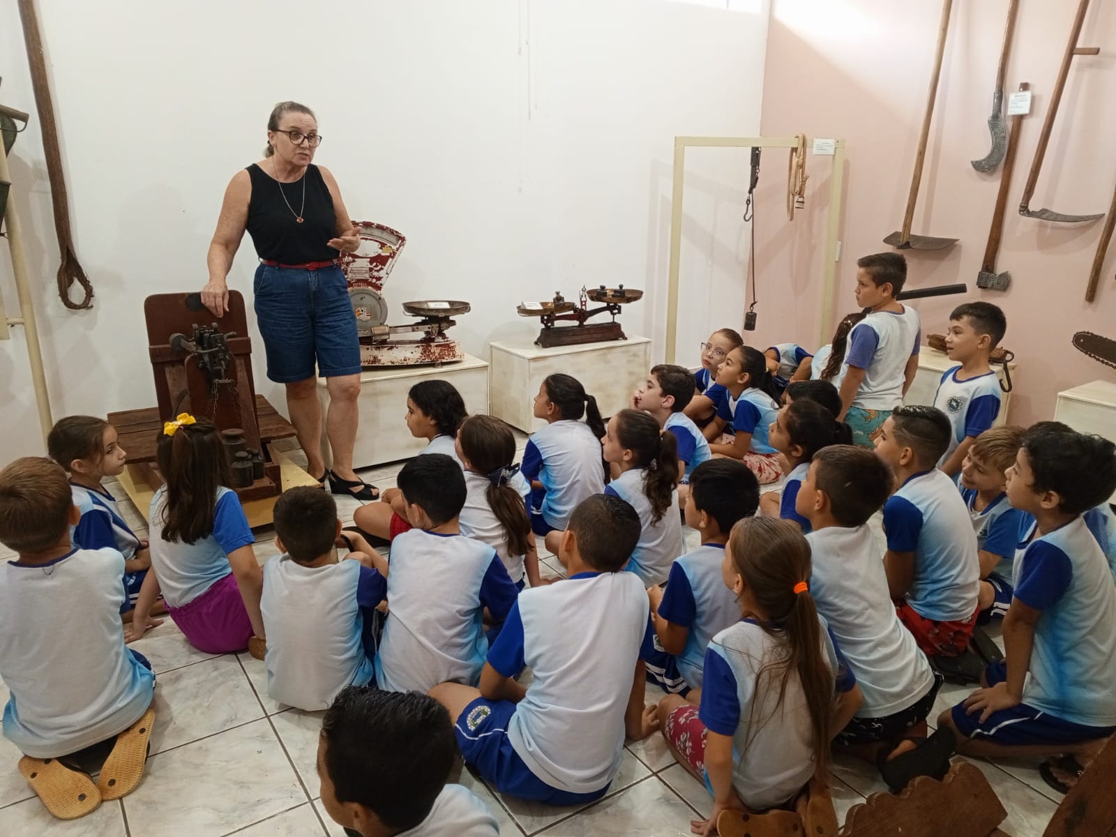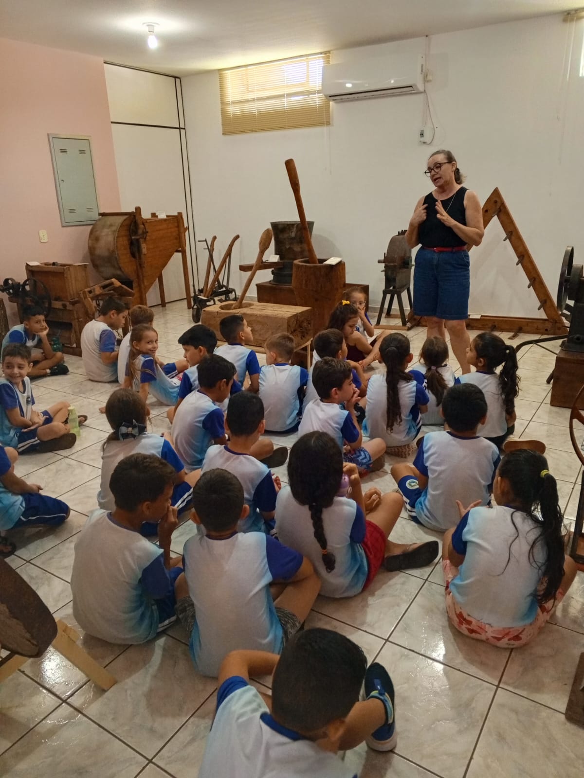 Os alunos dos 2º anos A e B da Escola Municipal Rondônia, acompanhados pelas professoras de História e Geografia, Luciana Manente e Monique G. T. O. Nunes, realizaram uma visita pedagógica à Casa da Memória de Itaipulândia.