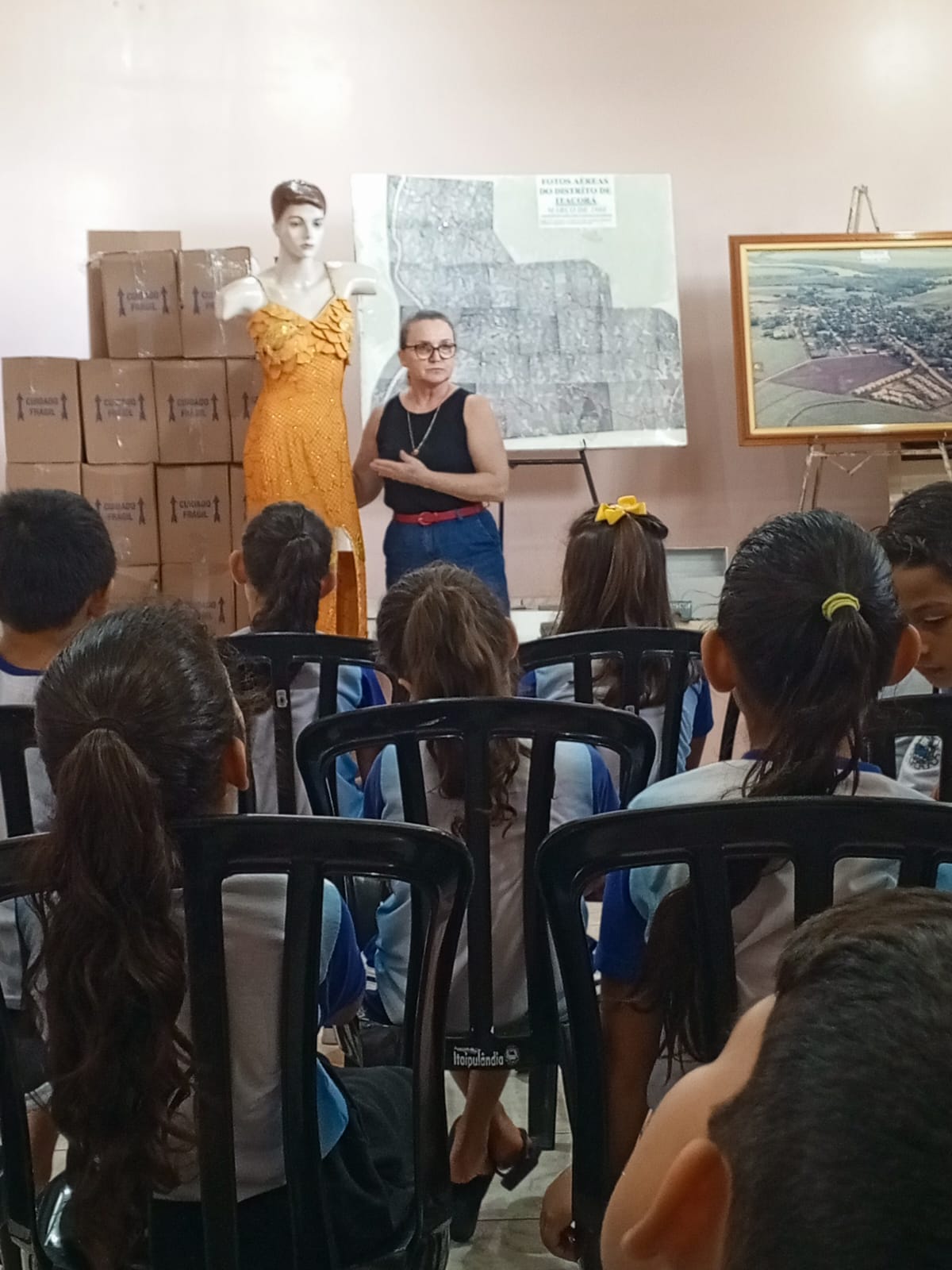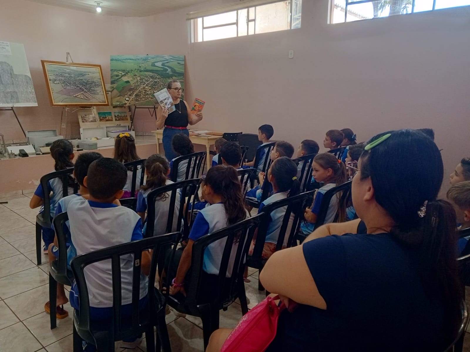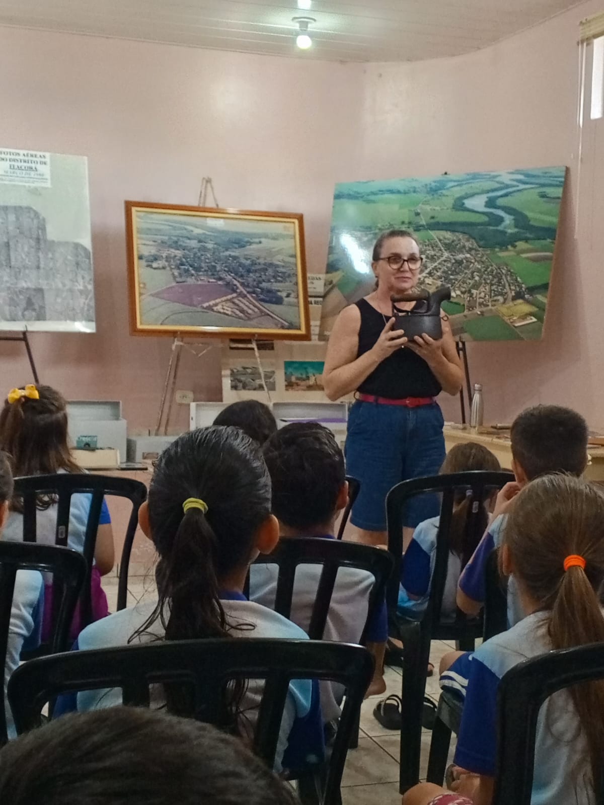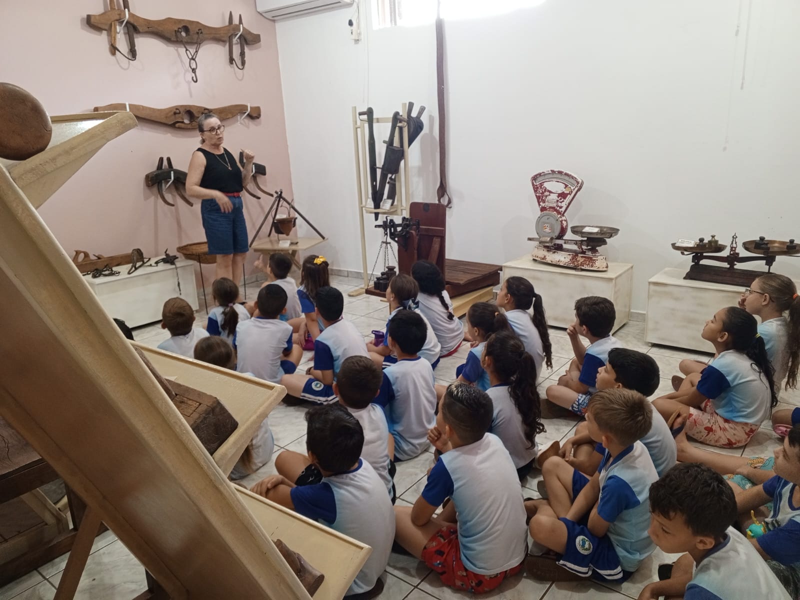 Os alunos dos 2º anos A e B da Escola Municipal Rondônia, acompanhados pelas professoras de História e Geografia, Luciana Manente e Monique G. T. O. Nunes, realizaram uma visita pedagógica à Casa da Memória de Itaipulândia.