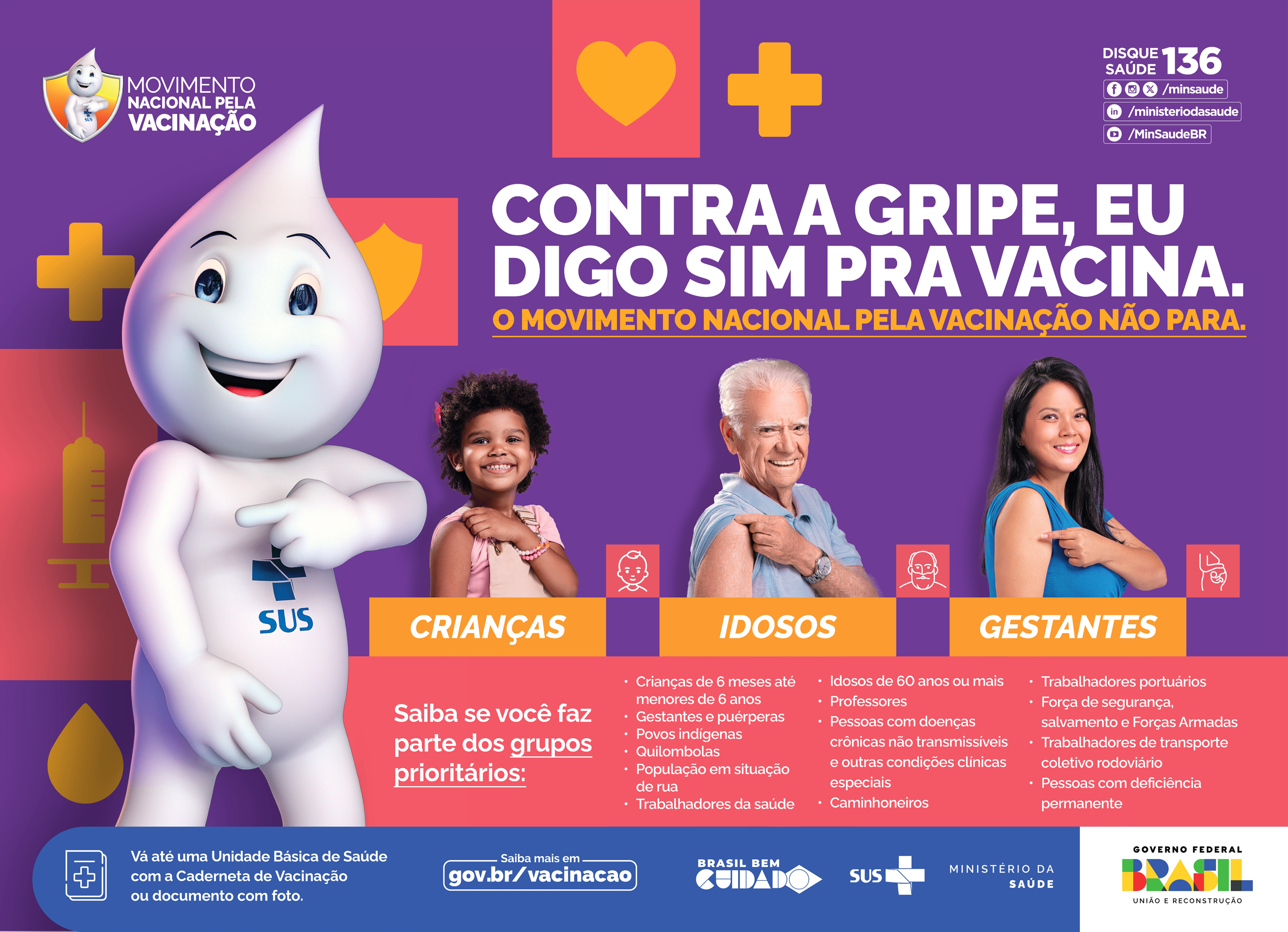 A imunização é essencial para proteger a população mais vulnerável. Se você faz parte dos grupos prioritários, procure a unidade de saúde mais próxima e garanta sua proteção.