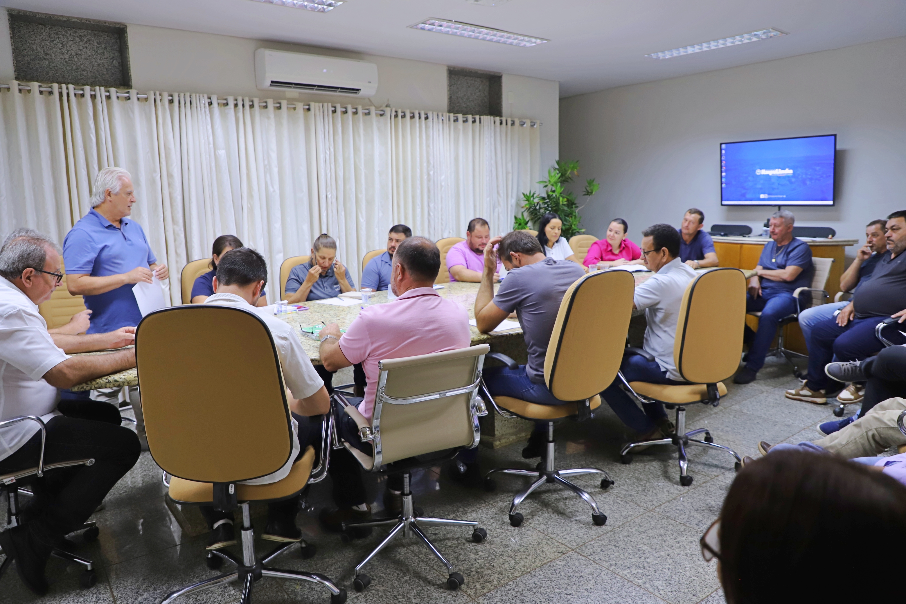 Na manhã desta quinta-feira (03), o Prefeito Lindolfo Rui e o Vice-Prefeito Adolfo Preis, coordenaram uma reunião envolvendo os Secretários Municipais, Sub-Prefeitos, Assessoria de Imprensa, Departamento Jurídico e Controle Interno. O objetivo da reunião foi para avaliar as ações desenvolvidas nesses 90 dias da atual gestão, bem como definir e ajustar algumas demandas que serão implementadas.