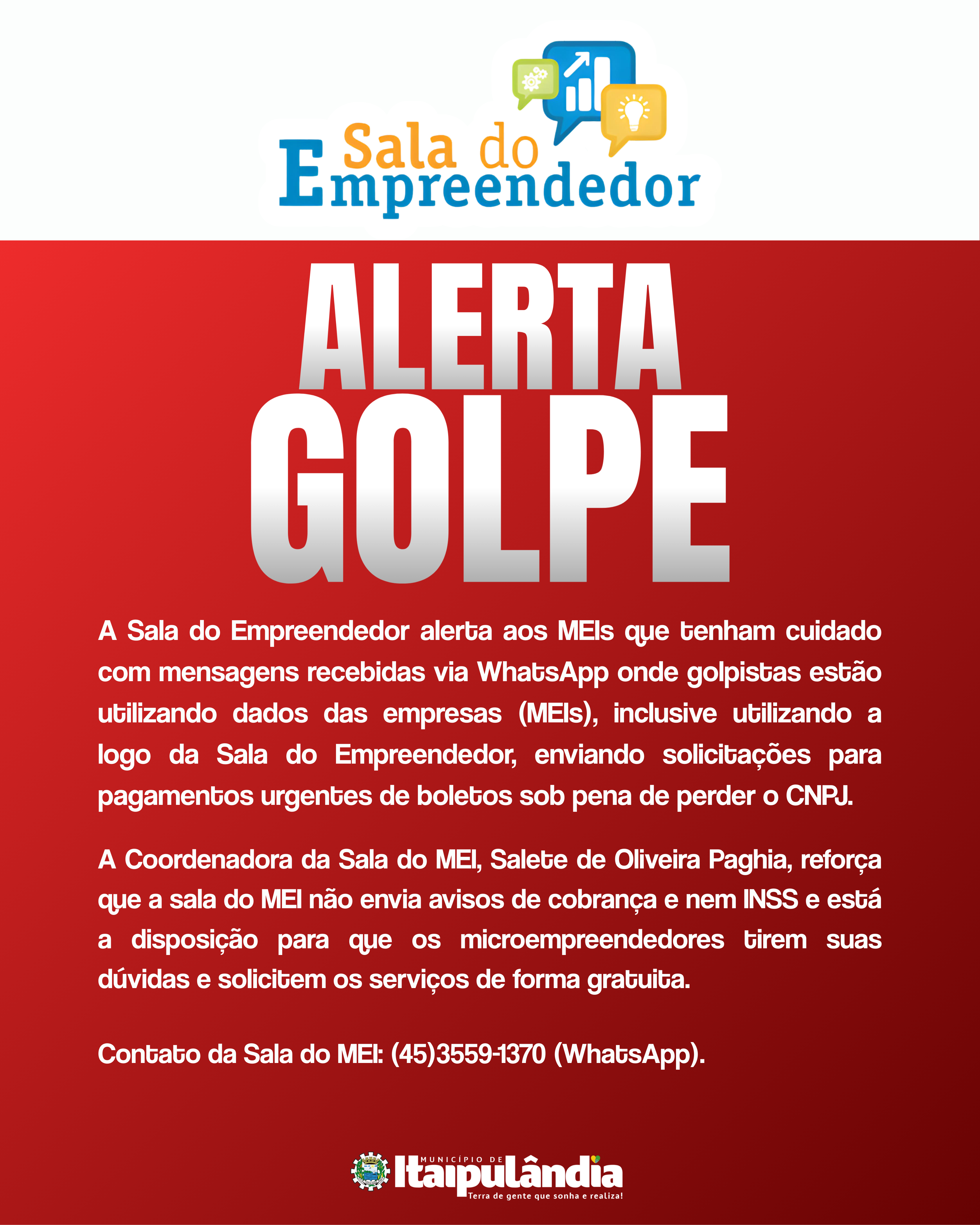 A Sala do MEI tem um aviso importante para você, empreendedor! Estão circulando mensagens e cobranças falsas em nome do MEI.