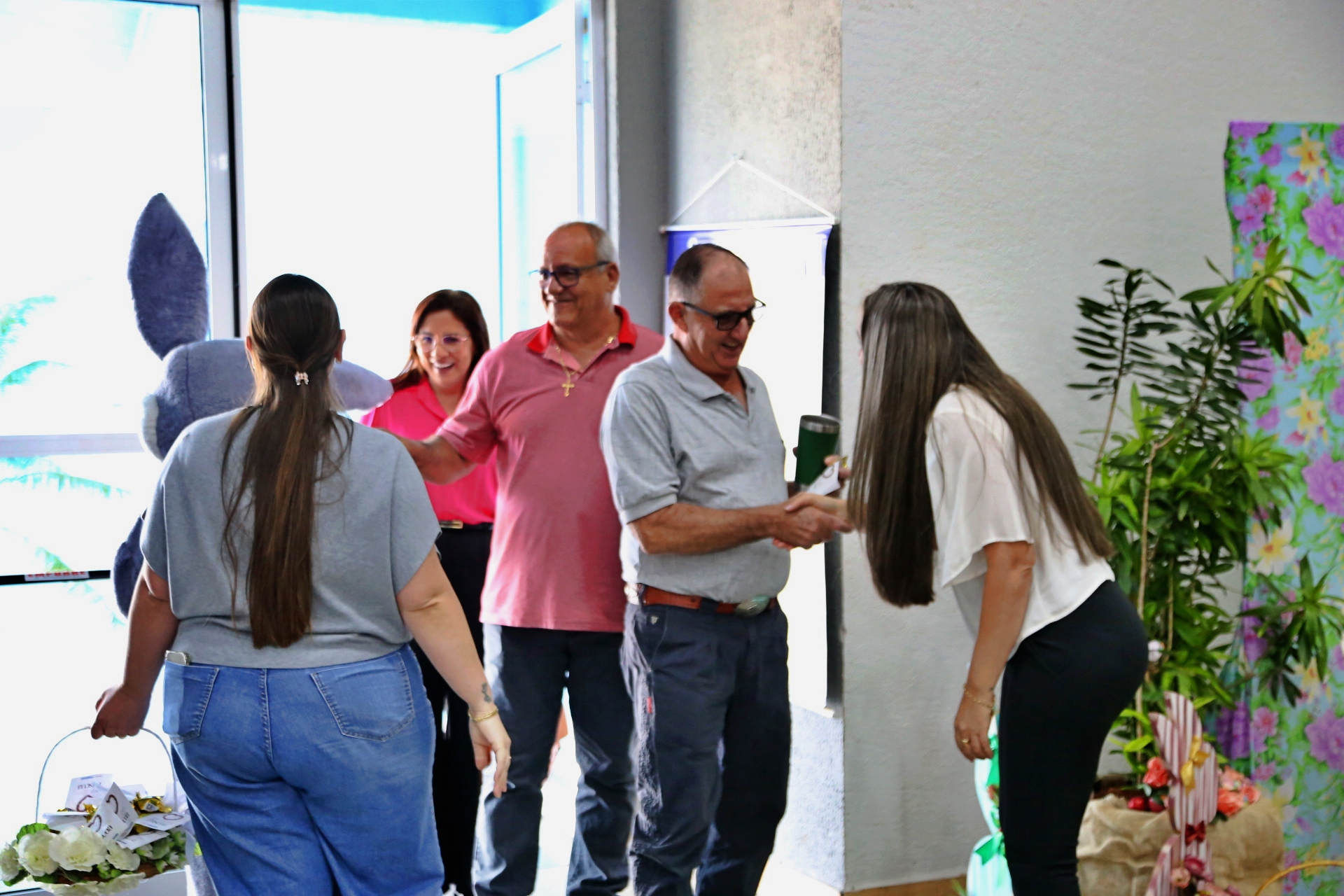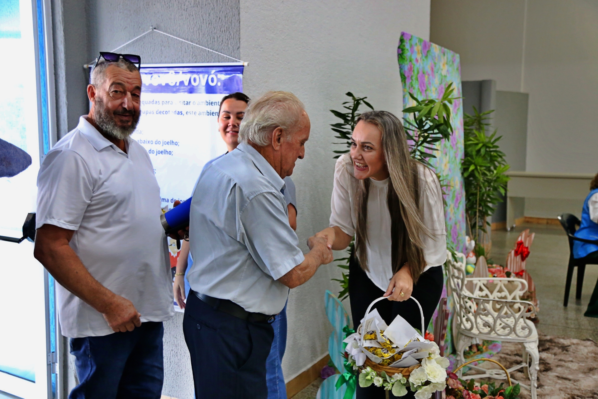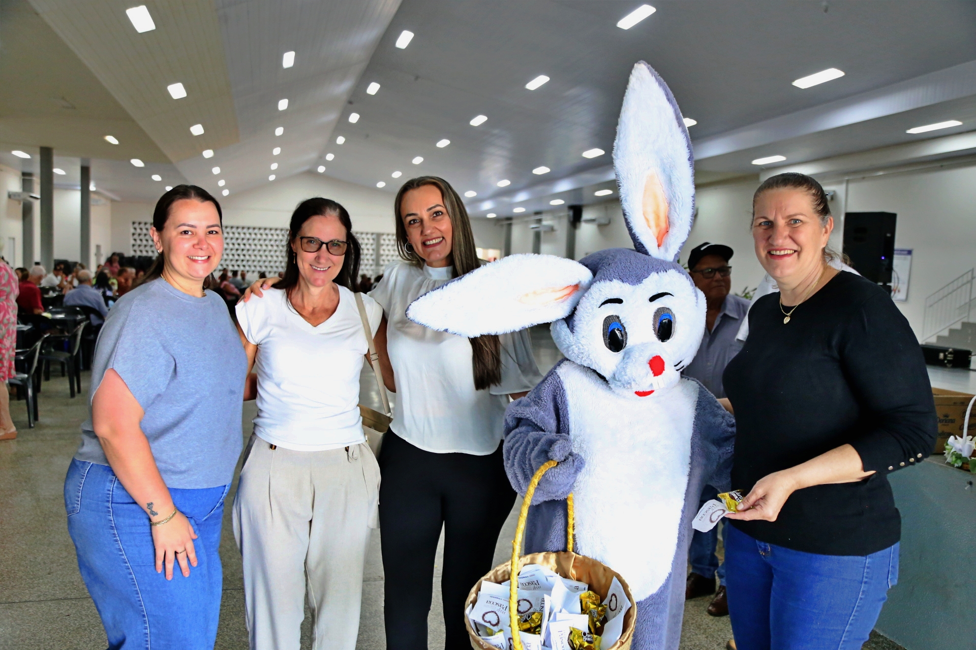 A programação foi especial comemorativa de Páscoa e contou com a presença da 1ª Dama Verônica Rui, da Secretária de Assistência social Jaqueline Tozzo Royer, da Coordenadora da 3ª Idade Neiva Thiel e do vereador André Royer.