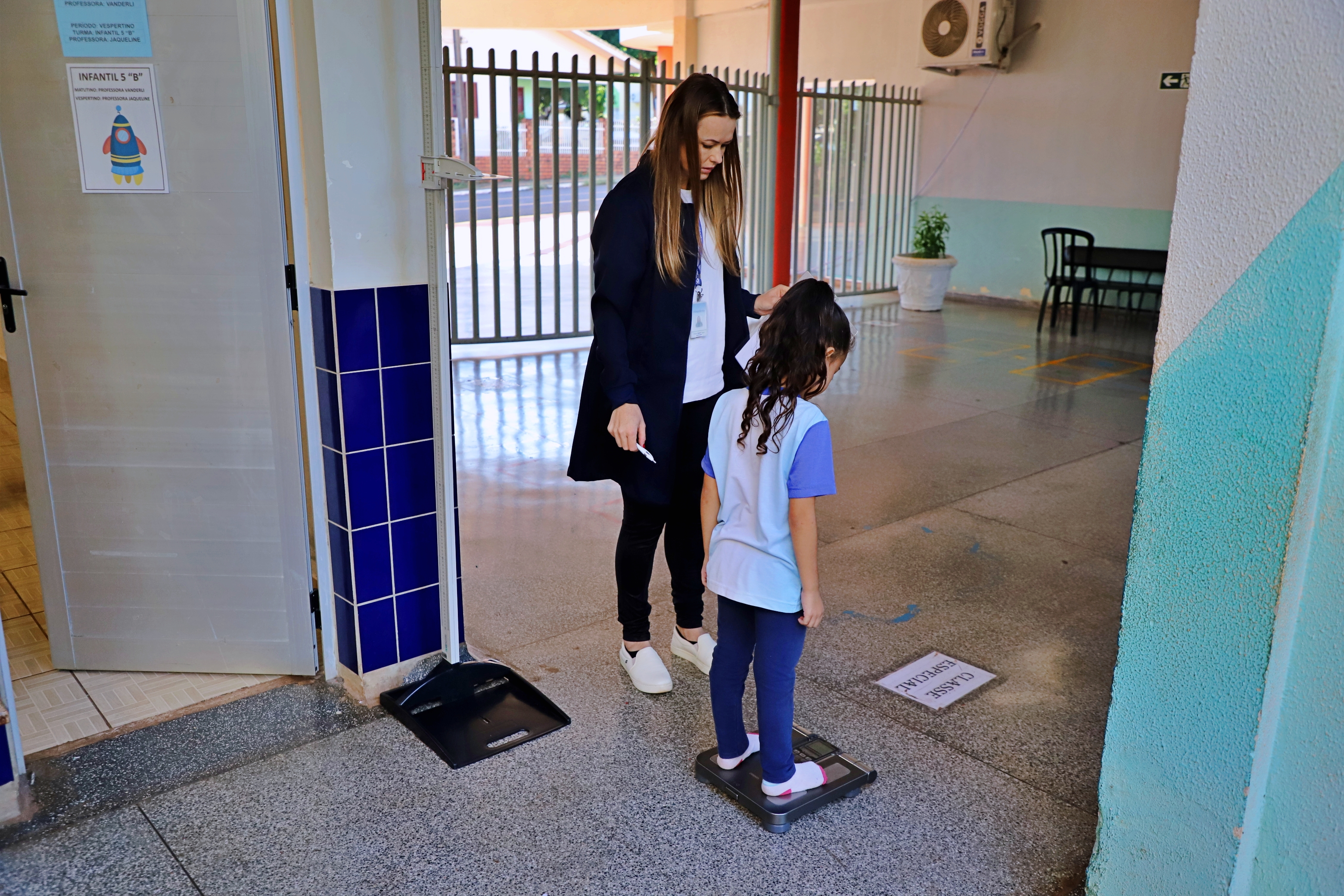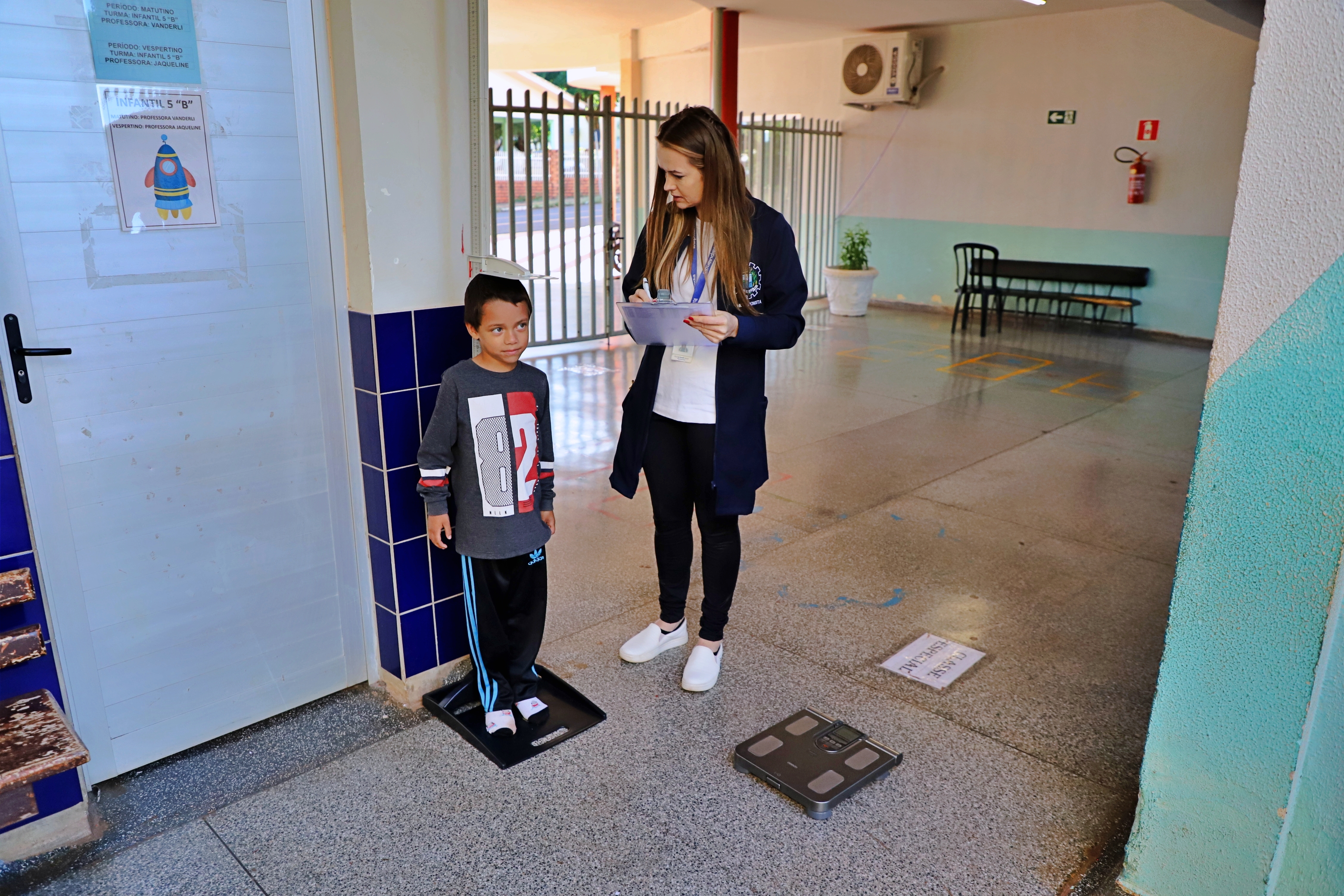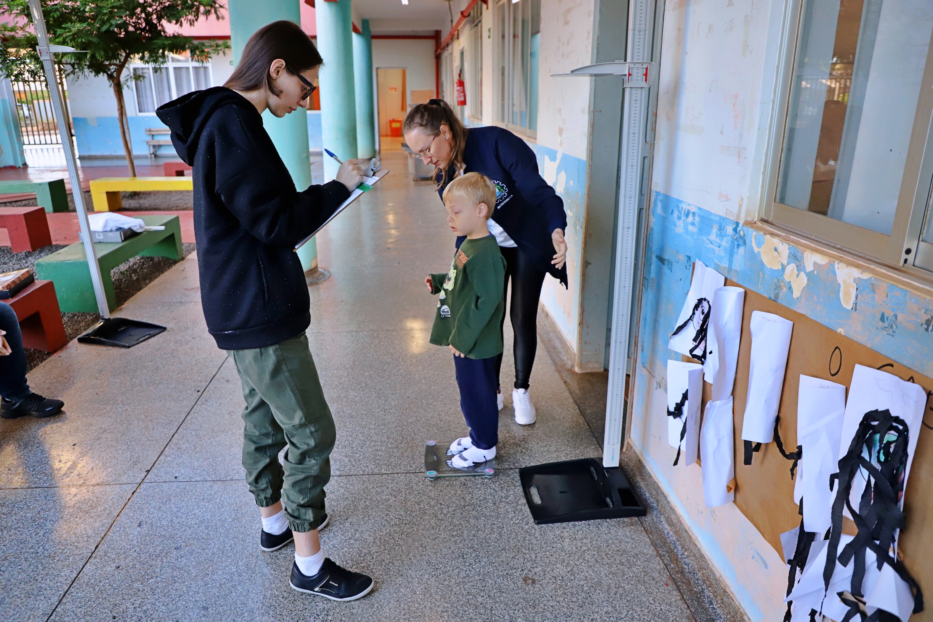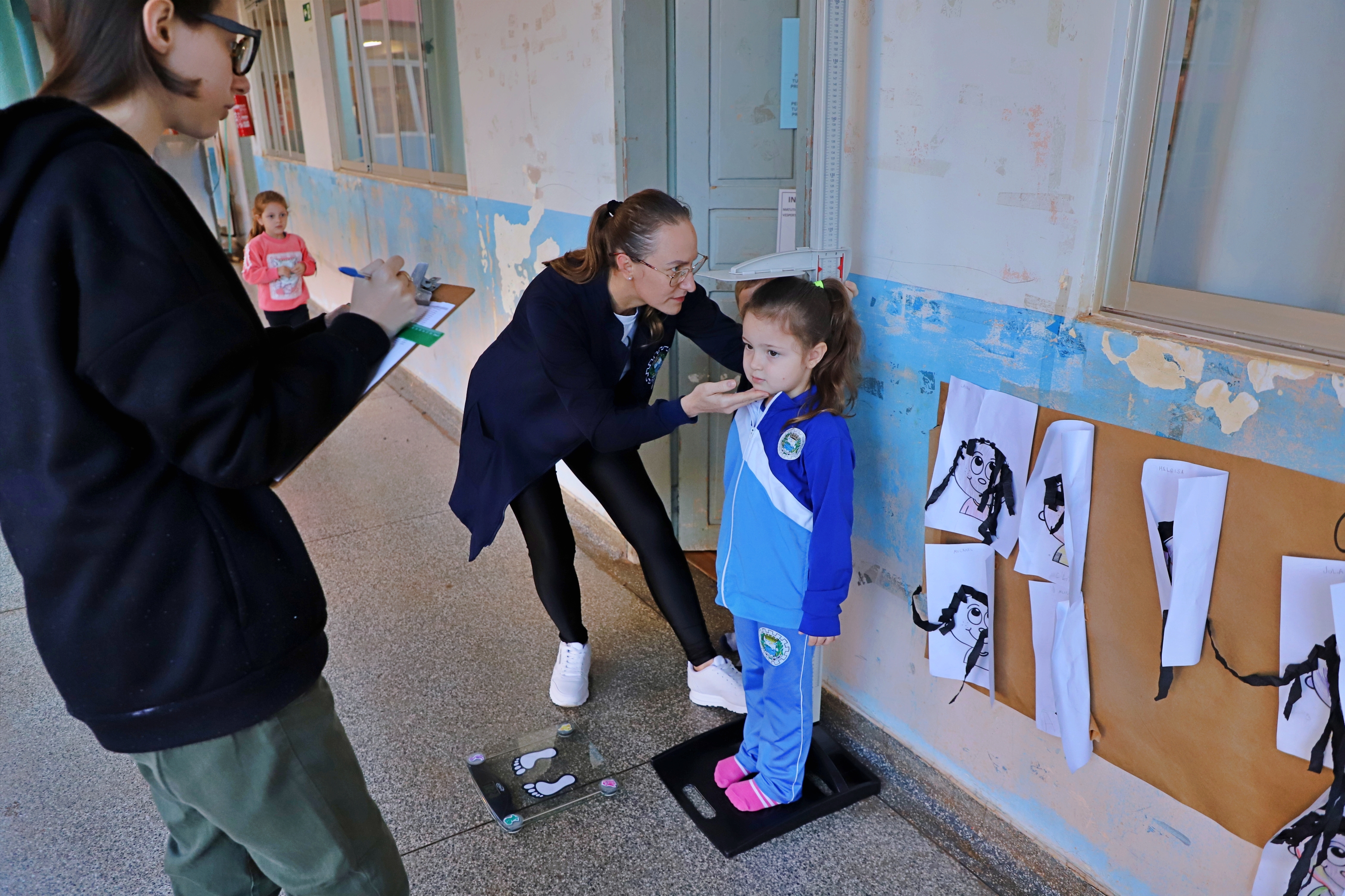 Alunos da rede municipal de educação estão passando por avaliação antropométrica, (peso e altura), em uma parceria das Secretarias de Educação e Saúde, por meio da equipe de nutricionistas, estagiários e jovens aprendiz de ambas as pastas. Essa ação faz parte do planejamento anual e das ações do Programa Saúde na Escola (PSE). A avaliação está sendo realizada nesta semana e conta com a valiosa colaboração de professores e profissionais dos estabelecimentos de ensino.