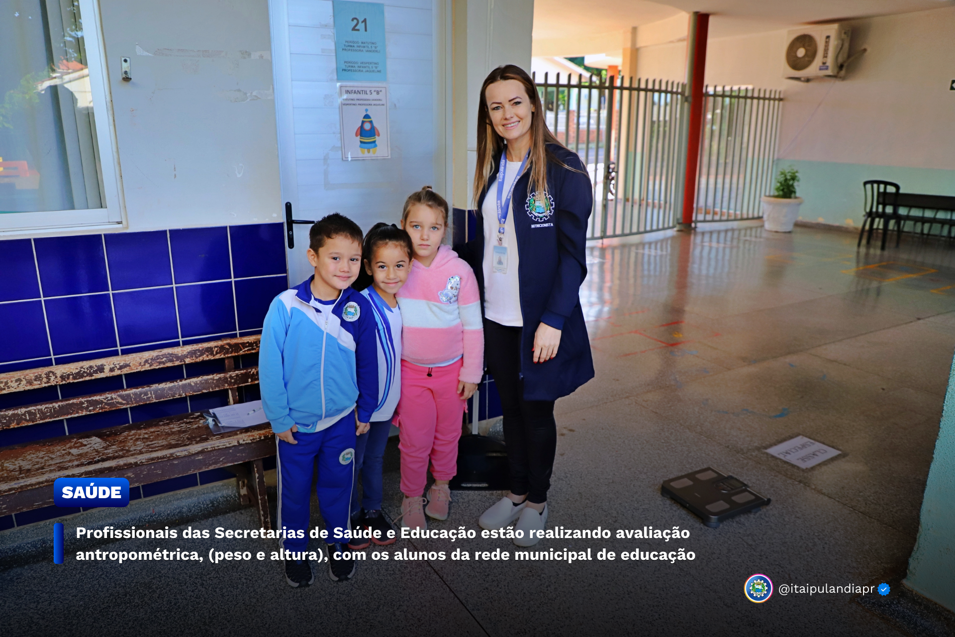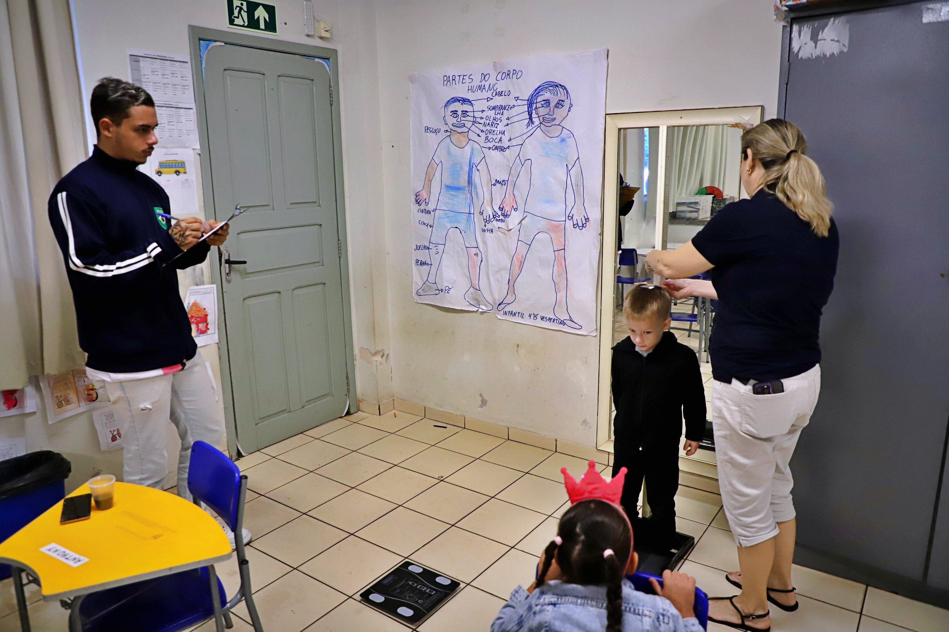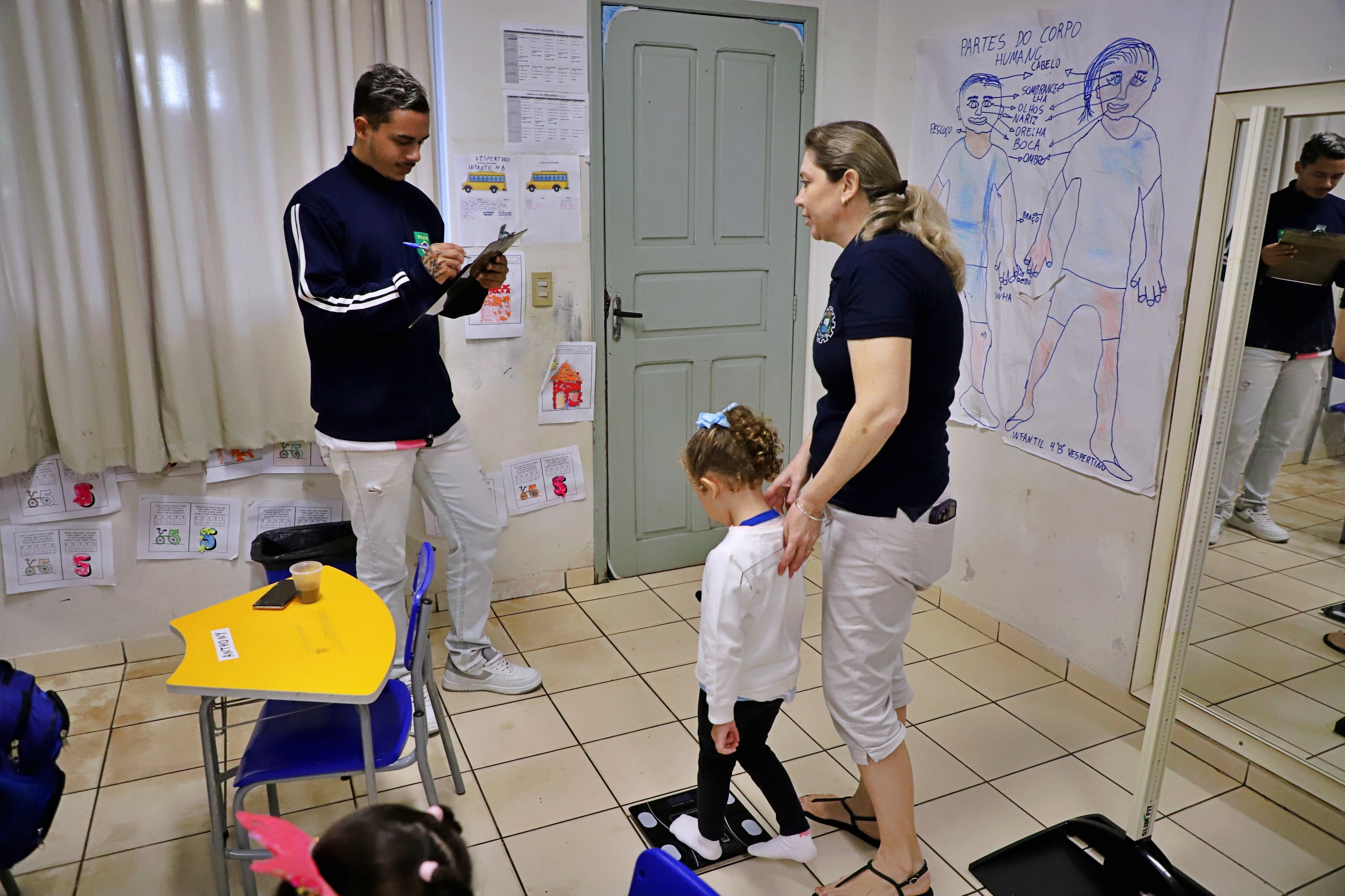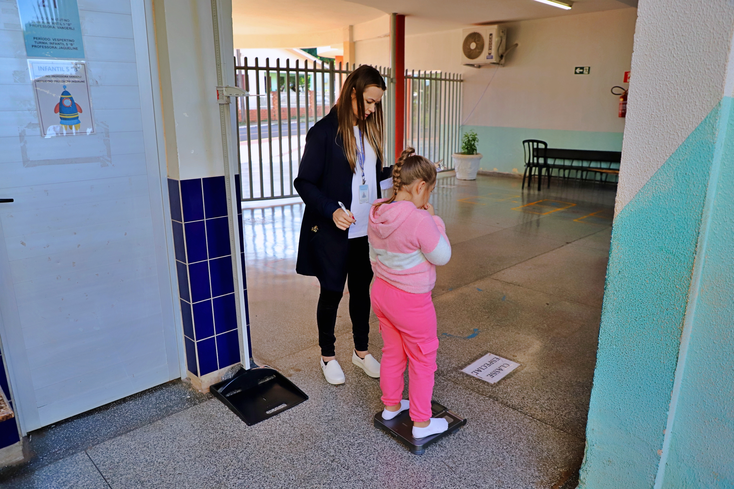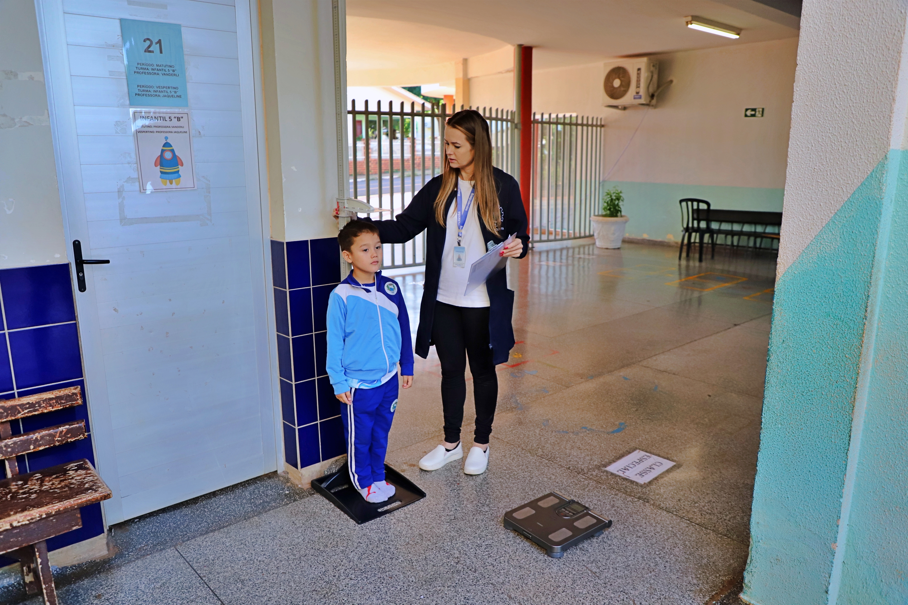 Alunos da rede municipal de educação estão passando por avaliação antropométrica, (peso e altura), em uma parceria das Secretarias de Educação e Saúde, por meio da equipe de nutricionistas, estagiários e jovens aprendiz de ambas as pastas. Essa ação faz parte do planejamento anual e das ações do Programa Saúde na Escola (PSE). A avaliação está sendo realizada nesta semana e conta com a valiosa colaboração de professores e profissionais dos estabelecimentos de ensino.