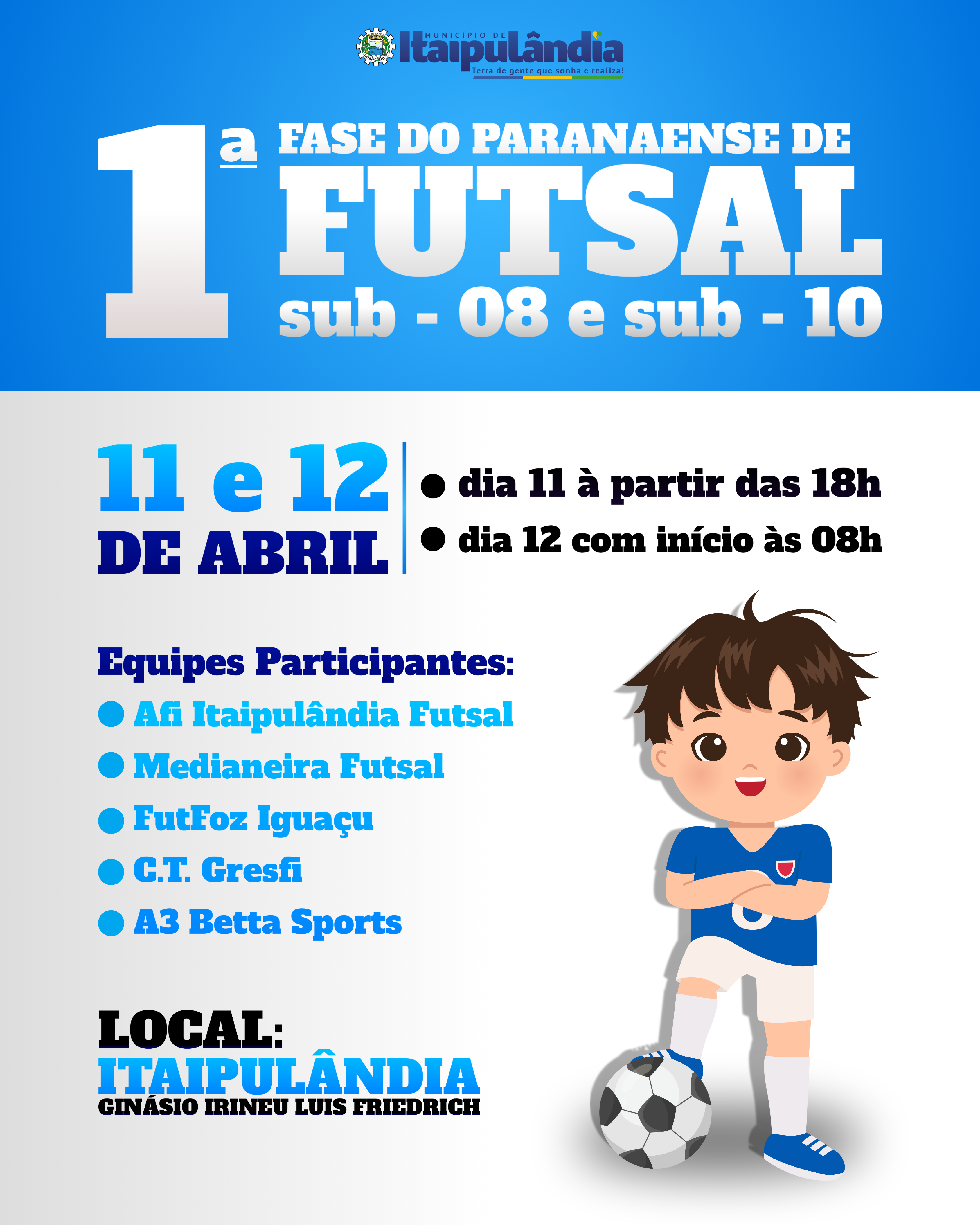 📍 Dias 11 e 12 de abril📌 Ginásio Municipal Irineu Luis Friedrich – Itaipulândia