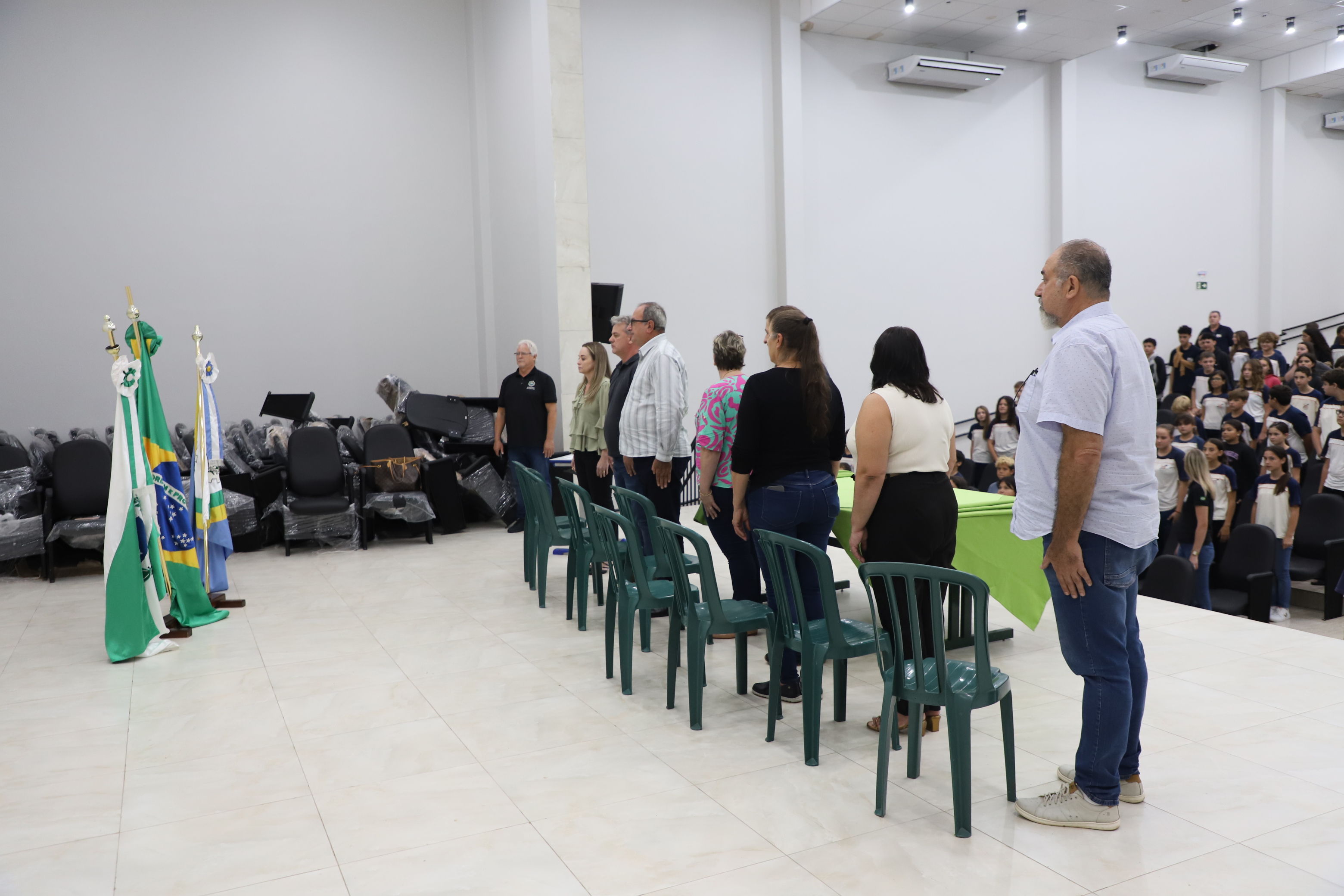 A solenidade contou com a presença dos estudantes, professores e funcionários e autoridades municipais, entre elas o Diretor Celso Balzan e as Diretoras Auxiliares Elaine Groth e Cleide Prates, o Prefeito Lindolfo Martins Rui, a Secretária de Educação Verônica Ziervieski Rui, Presidente da Câmara de Vereadores Abel Serena, Veridiana Antoniazzi Lucini, Chefe Núcleo Regional de Educação de Foz do Iguaçu, que celebraram juntos mais uma conquista para os estudantes da rede estadual. O diretor do colégio destacou a importância do investimento para o ambiente escolar: "Cada melhoria representa um cuidado com o bem-estar dos nossos alunos e profissionais. A escola precisa ser um espaço acolhedor, bonito e digno, e esse programa tem contribuído muito para isso."