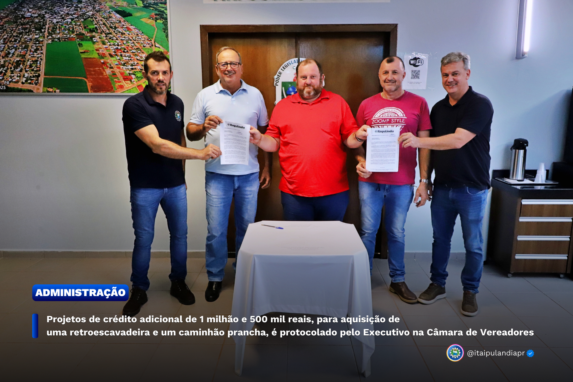 Na última semana, o Prefeito Lindolfo Rui e o Vice-Prefeito Adolfo Preis, acompanhados dos Secretários de Obras e Agricultura, Vilson Nei Serena e rodrigo Pavinatto, protocolou os Projetos de Lei 018 e 019/2025, solicitando crédito adicional no valor de R$ 1.517.090,00 (um milhão, quinhentos e dezessete mil e noventa reais), para a aquisição de uma Retroescavadeira nova, ano/modelo 2025 e um veículo caminhão prancha.