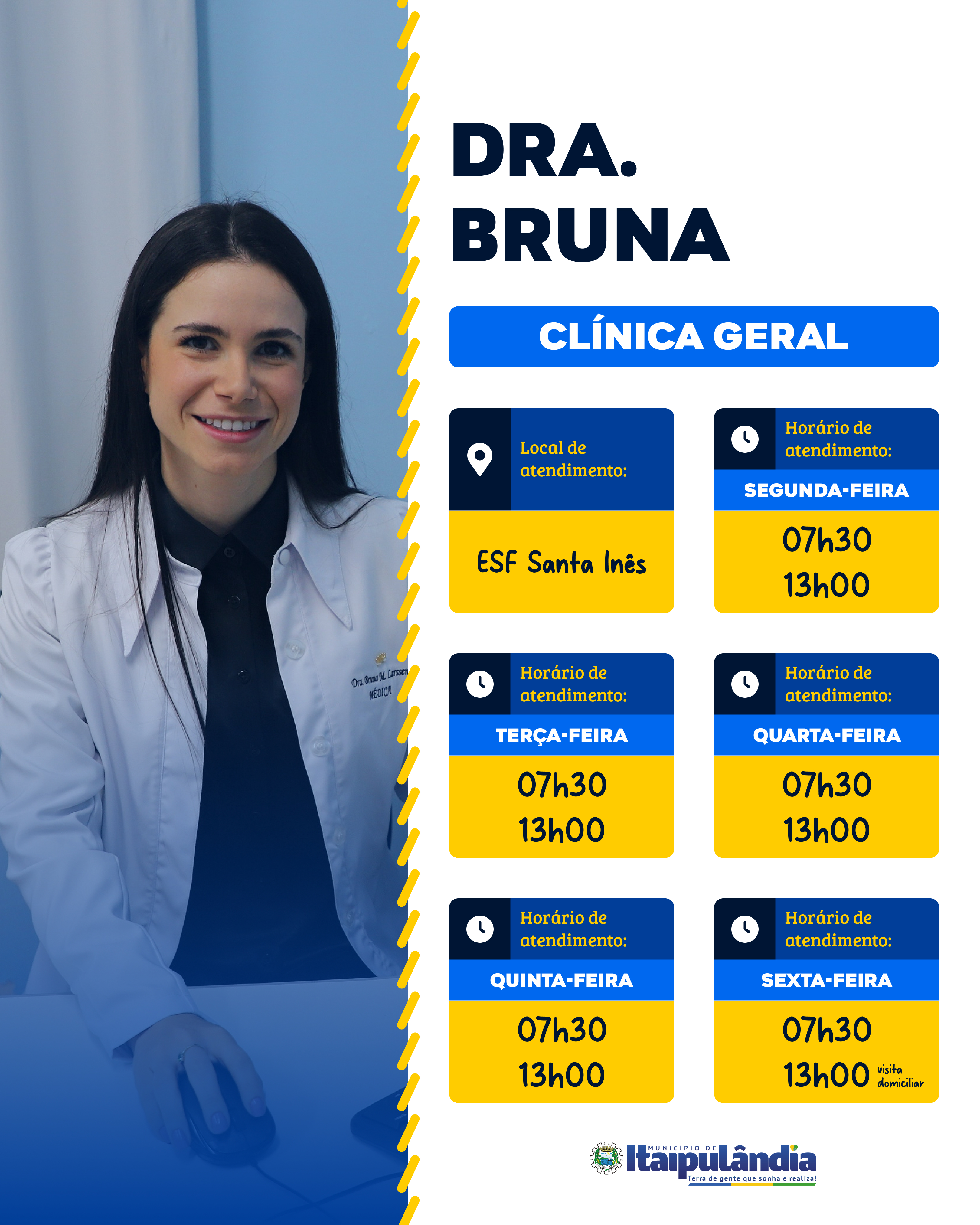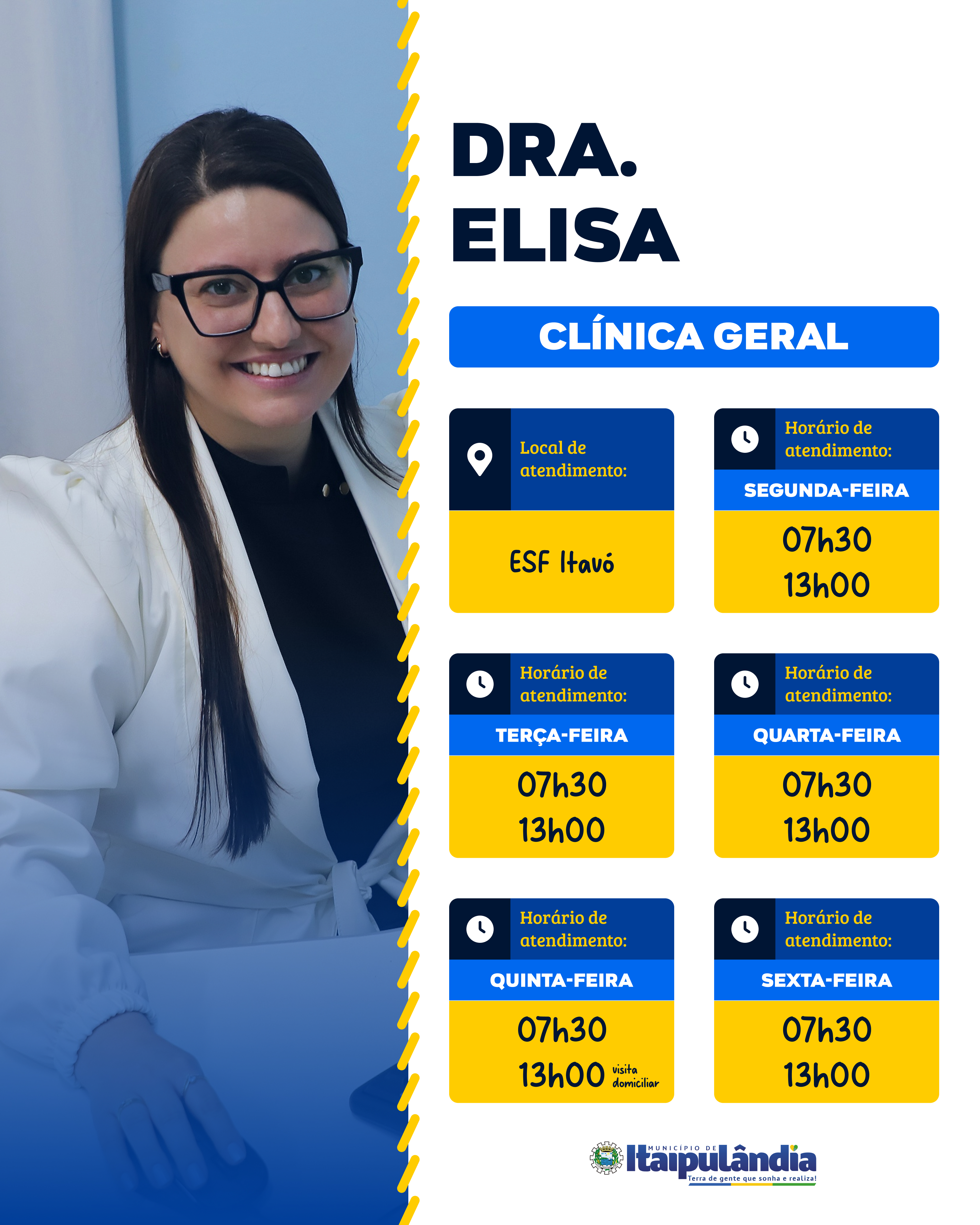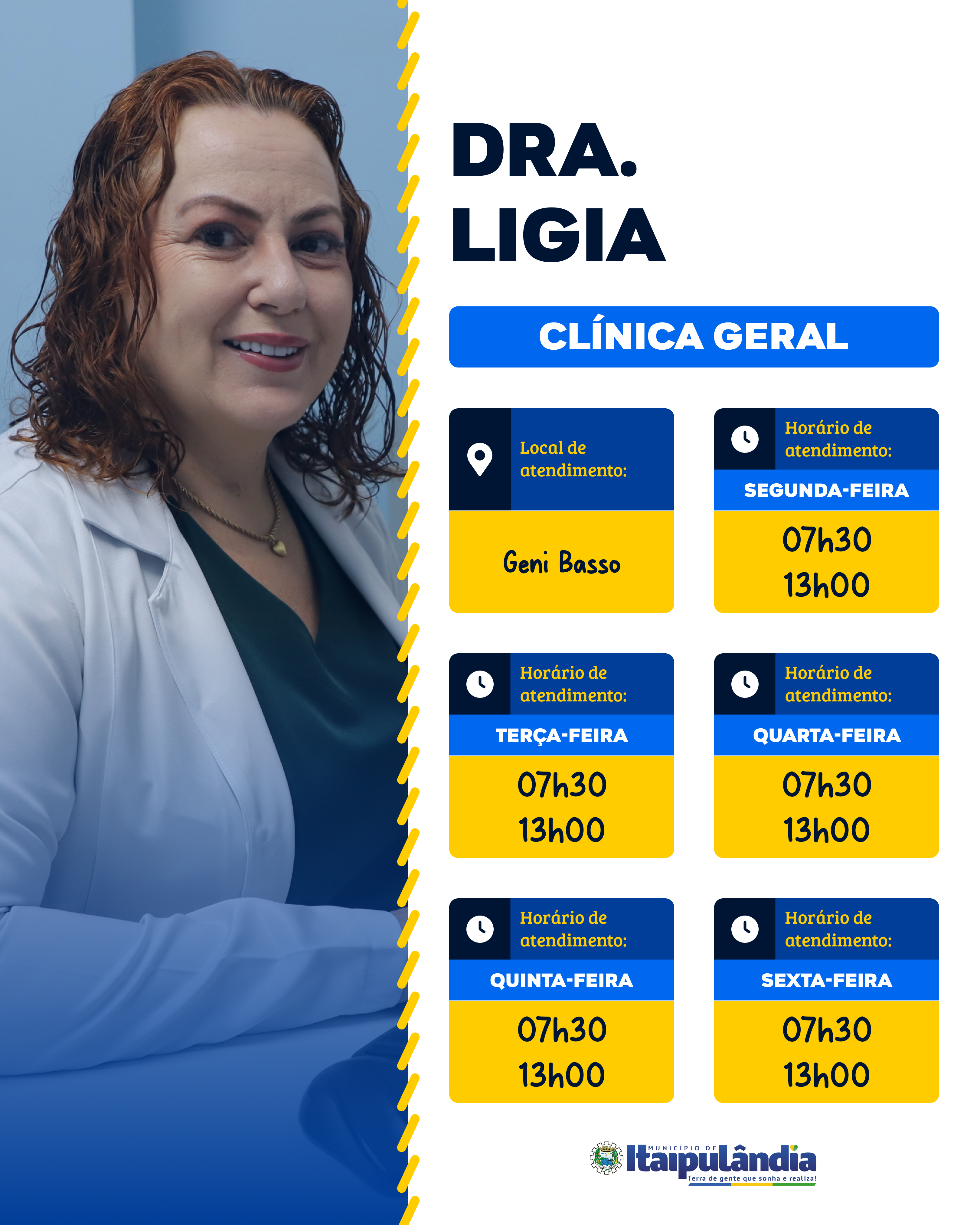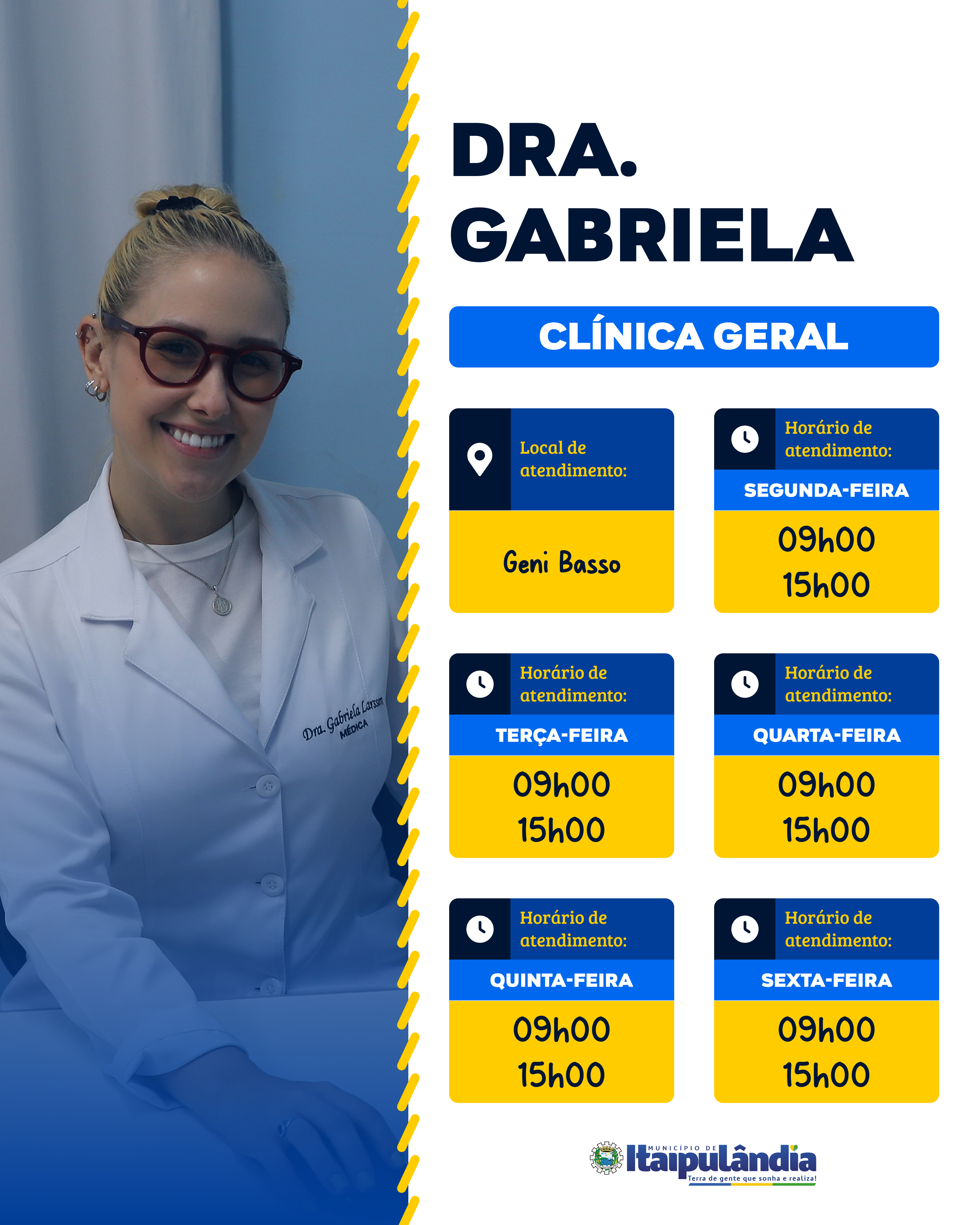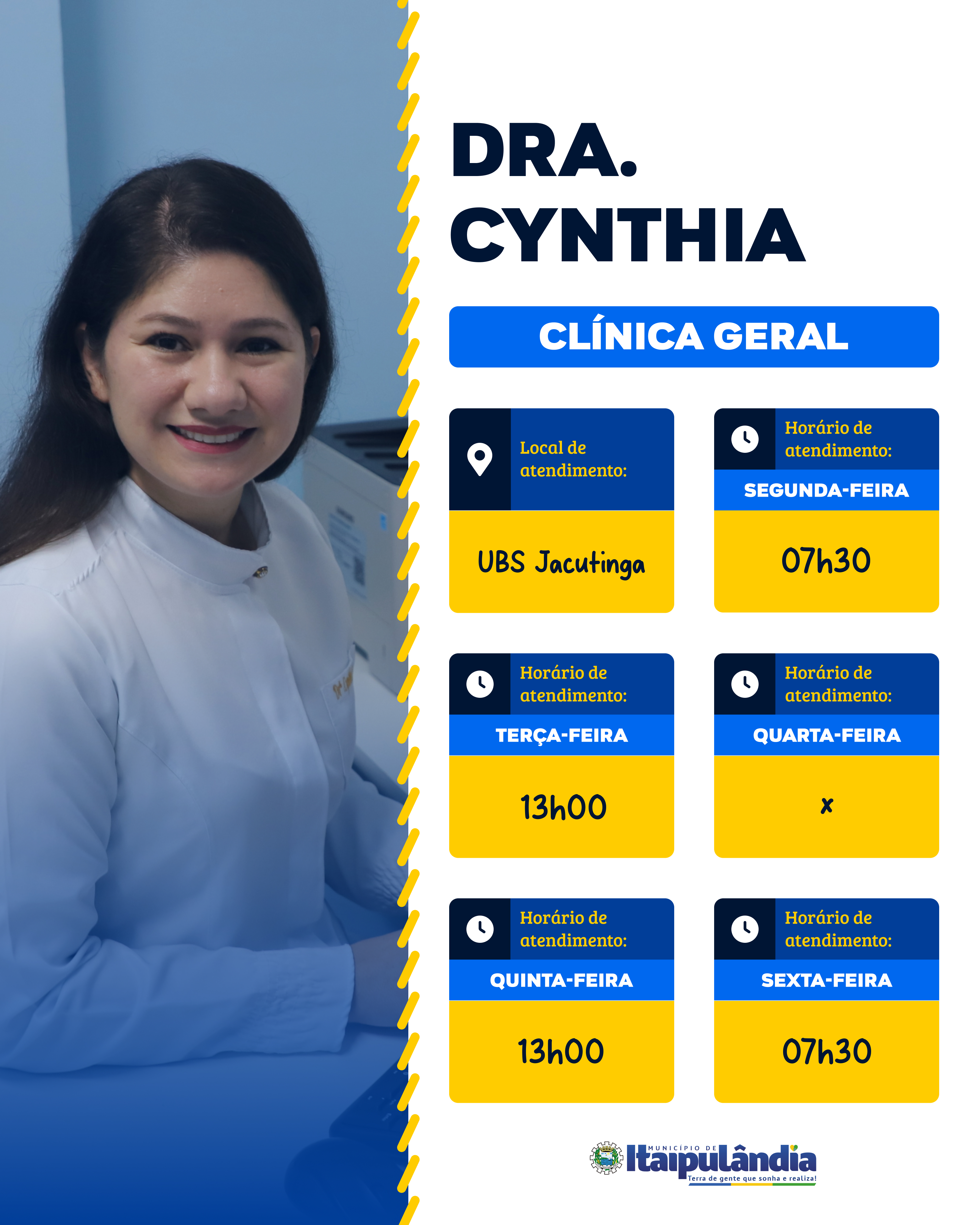 Agora contamos com a entrada de 03 novos médicos para reforçar o atendimento nas nossas Unidades Básicas de Saúde: Dra. Cynthia, Dra. Ligia e Dr. Rodrigo. Com isso, a escala foi readequada para oferecer um atendimento ainda mais eficiente e próximo de você.