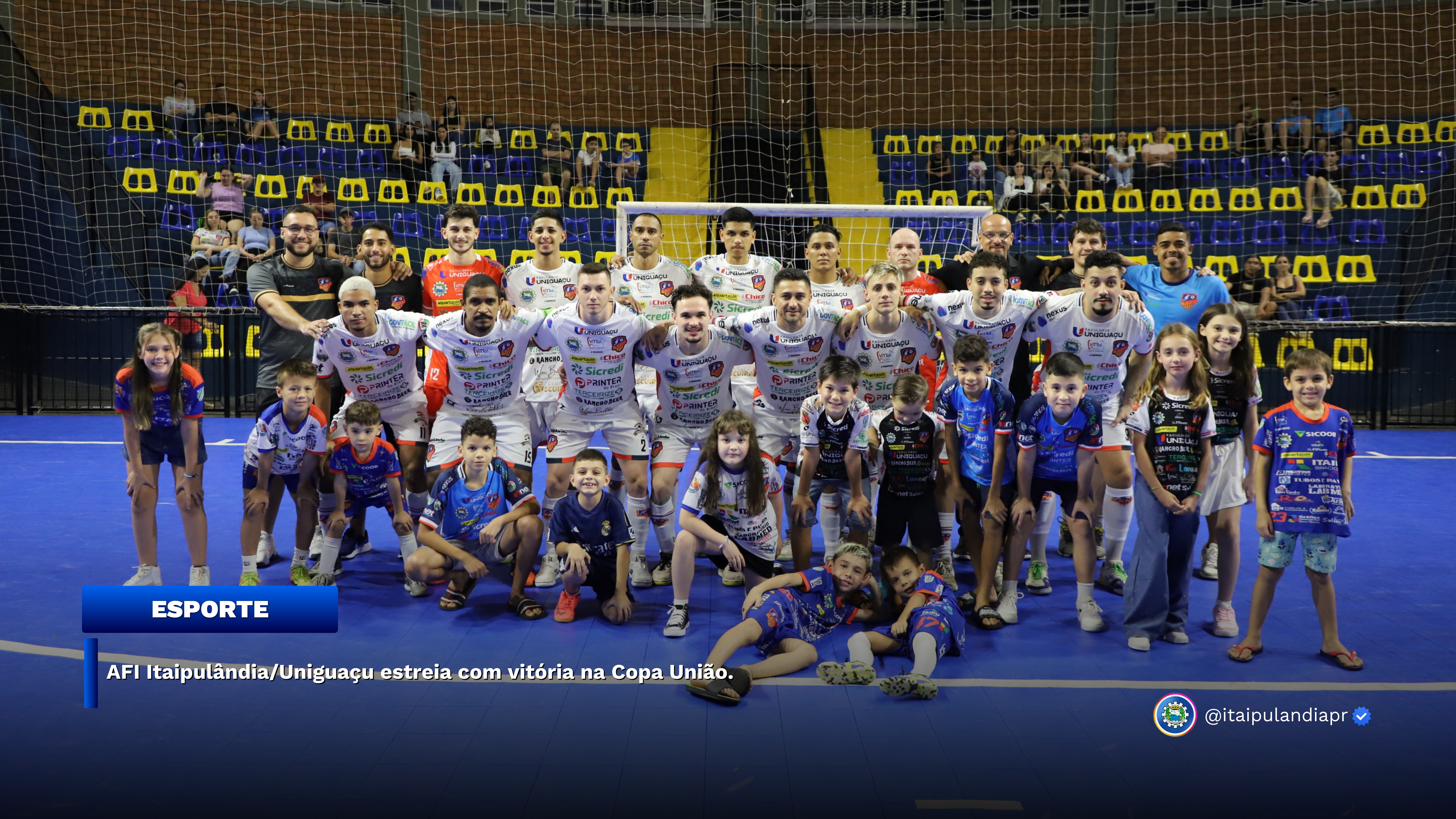 No sábado (26), a Federação paranaense de Futsal coordenou a 1ª rodada da 1ª fase da Copa União 2025 e a AFI Itaipulândia/Uniguaçu recebeu o Operário Futsal são João no Ginásio Irineu Luiz Friedrich e venceu pelo placar de 3x0. Os gols da equipe itaipulandiense foram assinalados por Daniel, Marcelo Camargo (contra) e Matheus Rocha. A Copa União é composta por 16 equipes divididas em dois grupos, onde as equipes do Grupo A enfrentam as equipes do Grupo B.