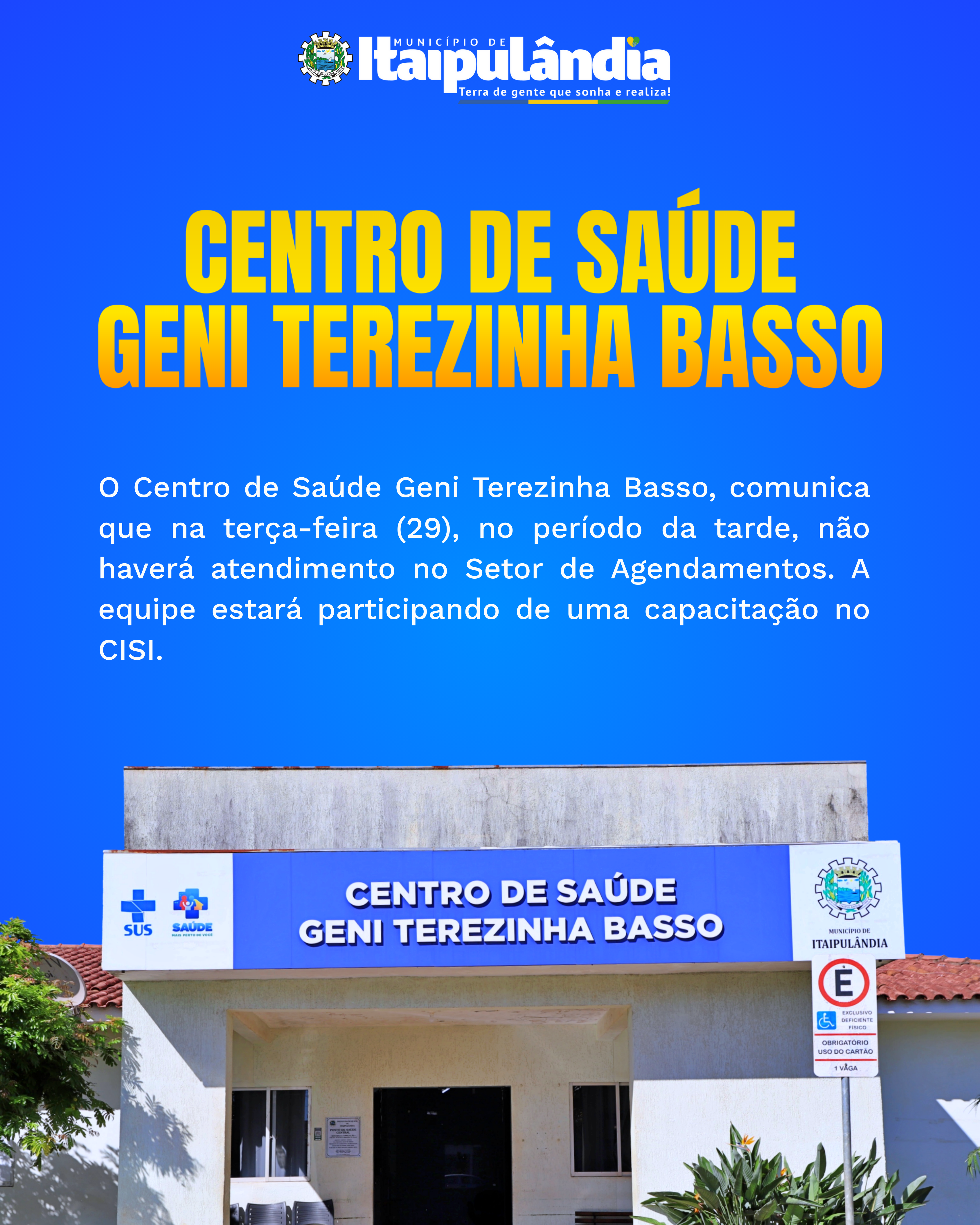 Confira o comunicado do Centro de Saúde Geni Terezinha Basso válido para amanhã (29).