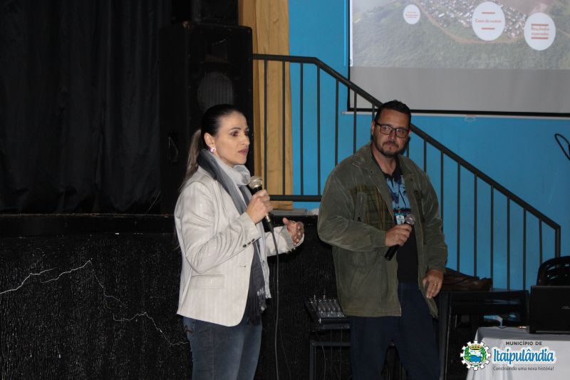 O Técnico de edificações da Prefeitura Municipal Marcelo Pavam, juntamente com Rosenei Zaleski, Engenheira Ambiental, realizaram uma apresentação completa sobre o projeto, ouvindo duvidas e recebendo opiniões.