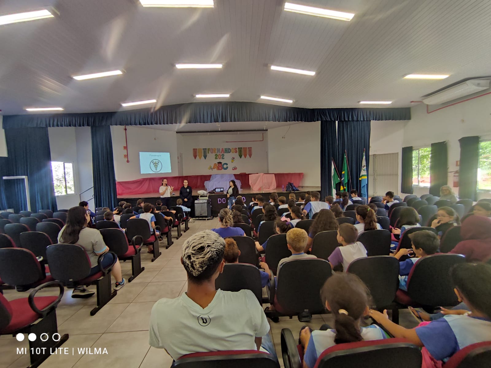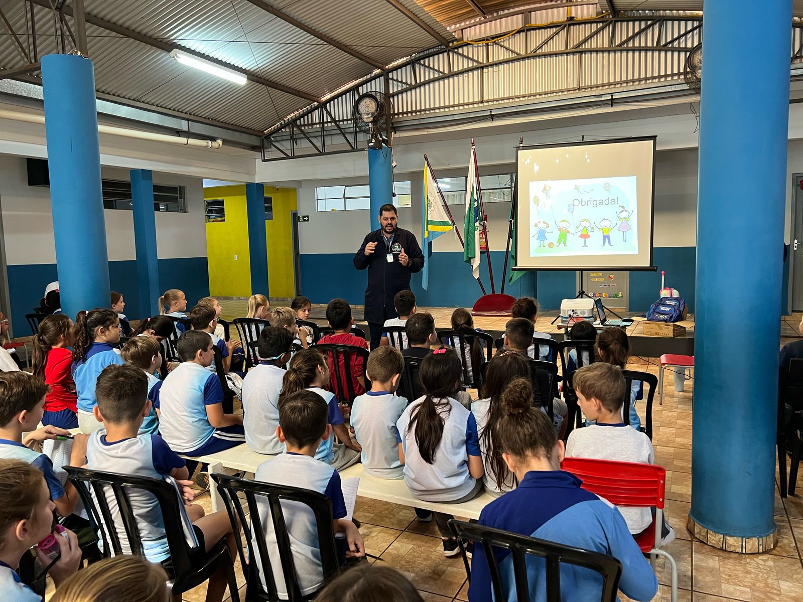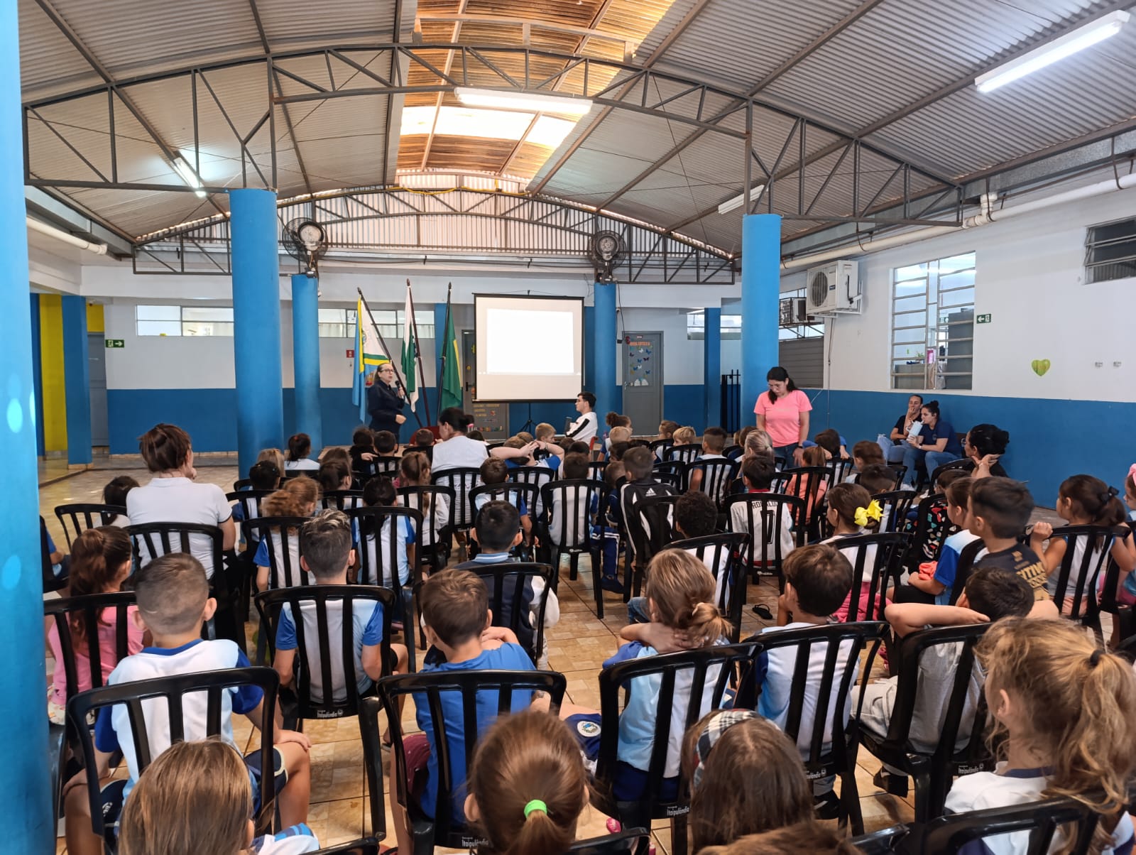 As orientações foram conduzidas pelos fisioterapeutas Adriane Balen, Jaqueline Vasconcelos, Ilonei Matthes e Patricia Falcão, que ensinaram aos alunos a postura correta ao sentar-se nas carteiras e a forma adequada de carregar mochilas.