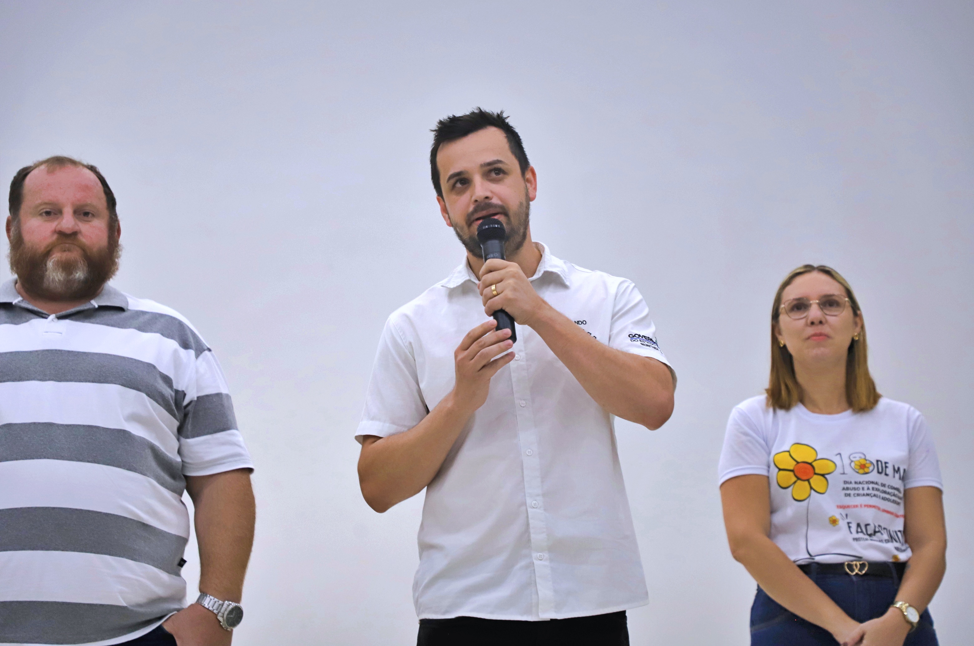 Estiveram presentes o Prefeito Lindolfo Rui, o Presidente da Câmara de Vereadores Abel David Serena, o Secretário de Saúde Fernando Antunes, a Coordenadora da Rede de Proteção Mariana Monteiro Paludo, o Vice-Presidente do conselho Tutelar Dilso Furtado, demais integrantes da equipe da Rede, professores e demais profissionais das Secretarias envolvidas.