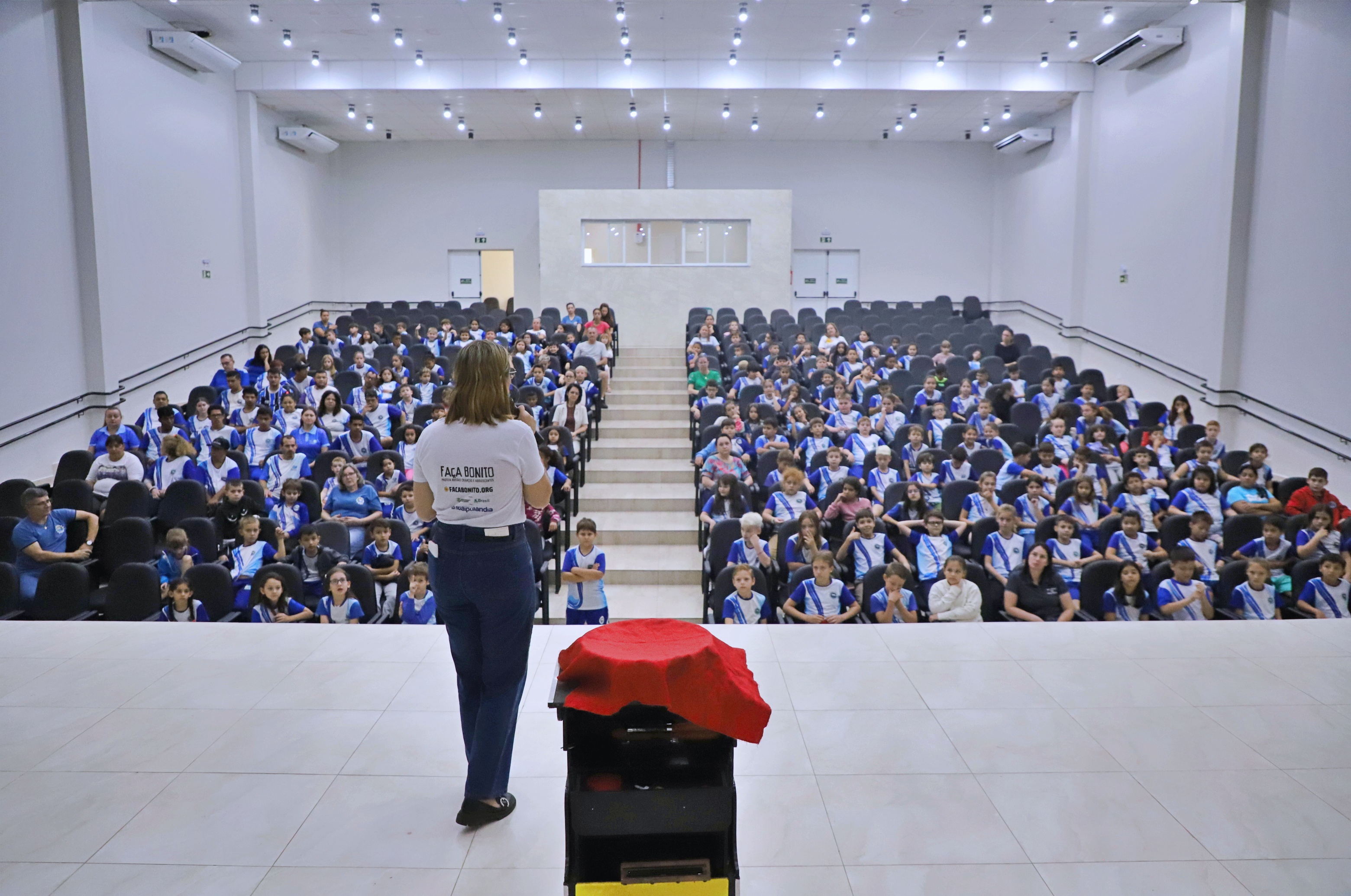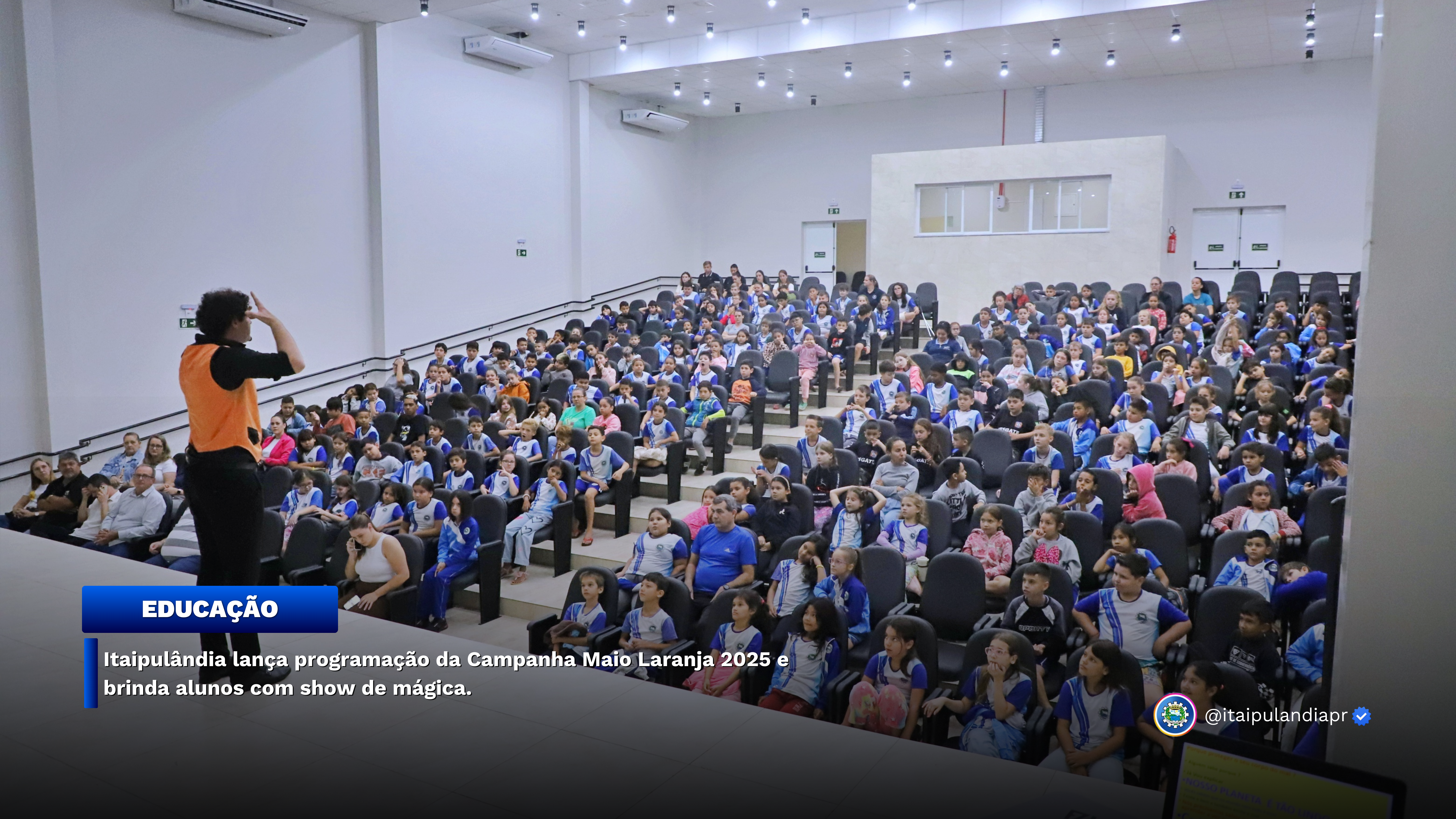 Na manhã desta segunda-feira (05), op município de Itaipulândia, lançou a Camapnha Maio Laranja 2025 abordando a temática da prevenção do abuso e a exploração sexual de crianças e adolescentes. O auditório do Colégio Estadual Costa e silva recebeu os alunos das Escolas Municipais de Itaipulândia que participaram de uma palestra show com o mágico e palestrante Rosimar Angst.