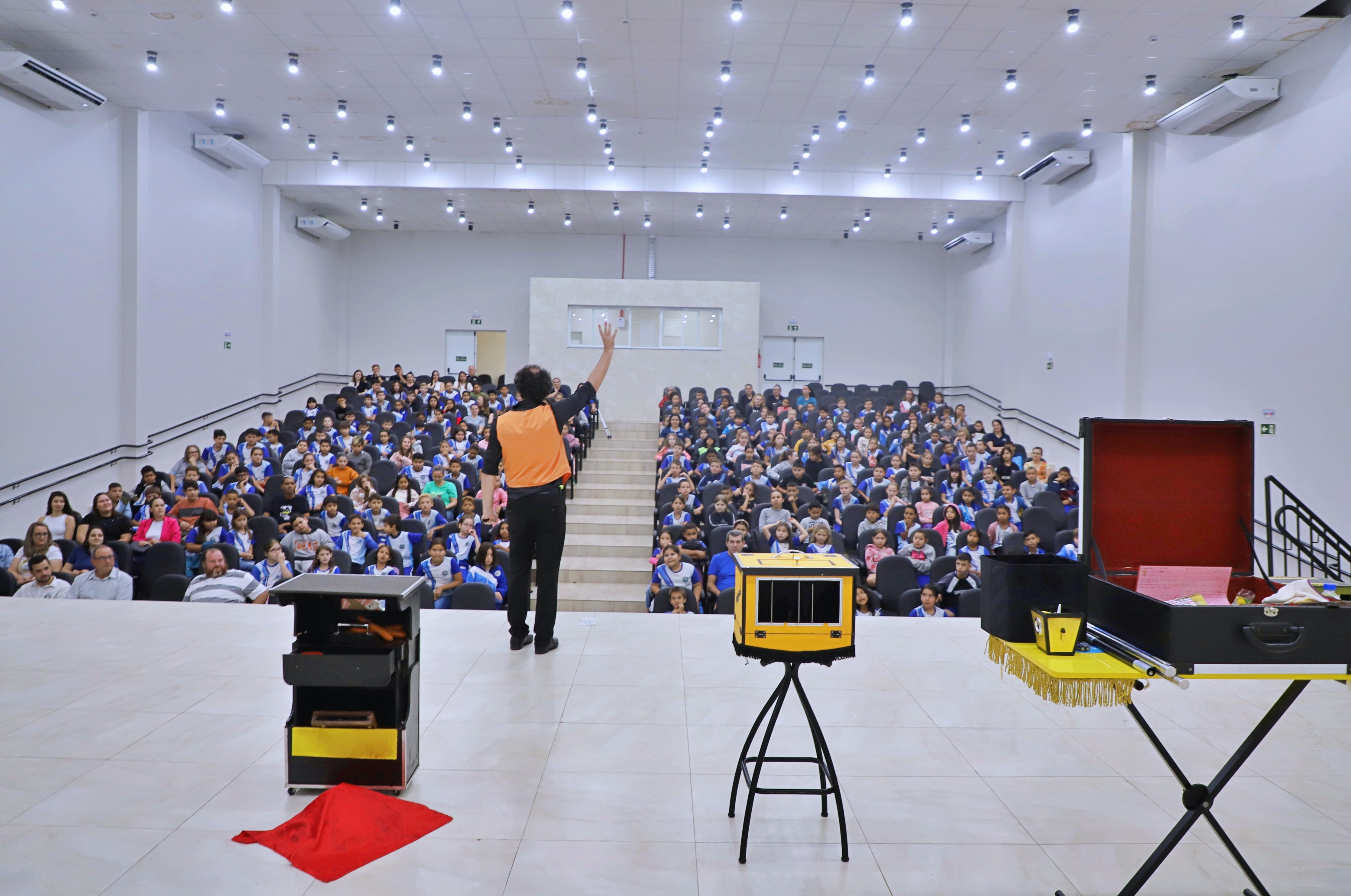 Itaipulândia lança programação da Campanha Maio Laranja 2025 e brinda alunos com show de mágica