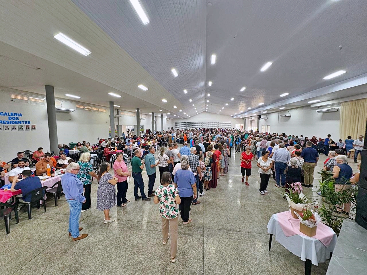 O almoço aconteceu no Centro de Eventos Benjamin Sabino Rigo e contou com a presença do Prefeito Lindolfo Martisn Rui e da 1ª Dama Verônica Szerwieski Rui, doVice-Prefeito Adolfo Florenccio Preis, da Secretária de Assistência Social Jaqueline Tozo Royer, do Presidente da Câmara de Vereadores Abel David Serena e demais vereadores, Pastor Marcos da Igreja Quadrangular, coordenação e demais representantes da Terceira Idade. Em torno de 800 almoços foram servidos para as mães e seus acompanhantes.