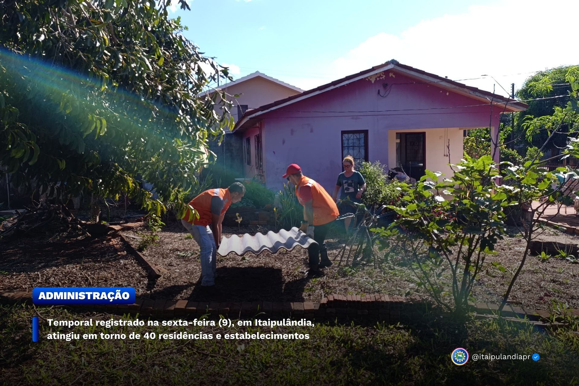 A Defesa Civil de Itaipulândia atuou durante o final de semana e deu sequência nesta segunda-feira, efetuando o levantamento e atendendo as famílias que tiveram residências atingidas pelo temporal registrado na última sexta-feira (9) no Município. De acordo com o levantamento efetuado, em torno de 40 residências foram atingidas, sendo que 11 receberam auxílio com telhas de fibrocimento e kits de limpeza.