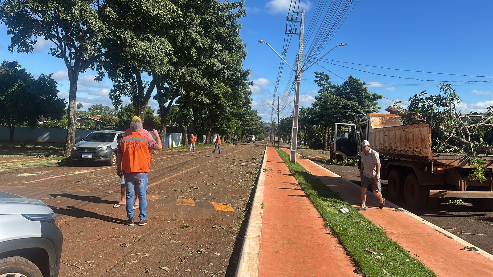 No sábado (10), equipes do Pátio de Máquinas, Defesa Civil e voluntários trabalharam praticamente o dia todo efetuando a limpeza dos locais atingidos com a recolha de árvores que foram arrancadas e galhos que se espalharam pelas ruas e calçadas.