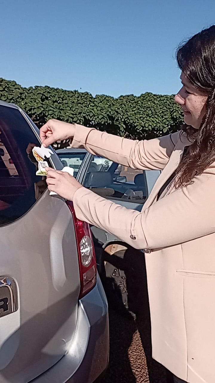 Após a palestra foram distribuídos adesivos da campanha que representam a flor símbolo da infância protegida. Com a autorização dos colaboradores os adesivos foram fixados em veículos dentro da unidade. A equipe também orientou que ao chegar em casa os trabalhadores convidassem seus filhos a participarem do momento de colar o adesivo, explicando o significado da flor e a importância de combater o abuso infantil.