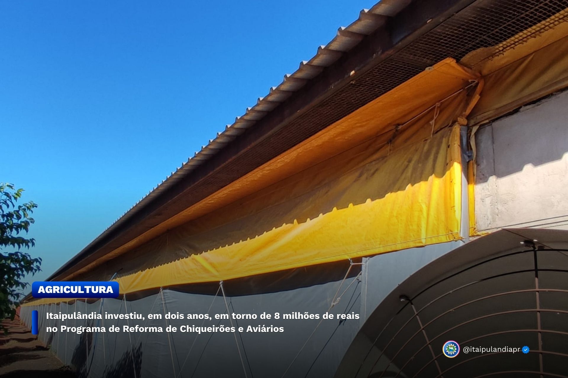 A Secretaria de Agricultura buscando atender e adequar as necessidades dos produtores rurais do município de Itaipulândia, instituiu programa de reforma de chiqueirões e aviários. Para tanto, o produtor rural precisa atender a alguns requisitos dentre os quais destacam-se: comprovar estar há mais de 7 anos na atividade; possuir contrato de parceria ativo com a empresa integradora; laudo técnico do veterinário da empresa integradora indicando as necessidades da reforma, devidamente assinado pelo técnico e o produtor; apresentar negativas municipais, estaduais, federais; estar em dia com as notas de produtor; licenças ambientais entre outros requisitos. Este programa, de reforma de chiqueirões e aviários, vem contribuindo desde o ano de 2023 beneficiando os produtores.