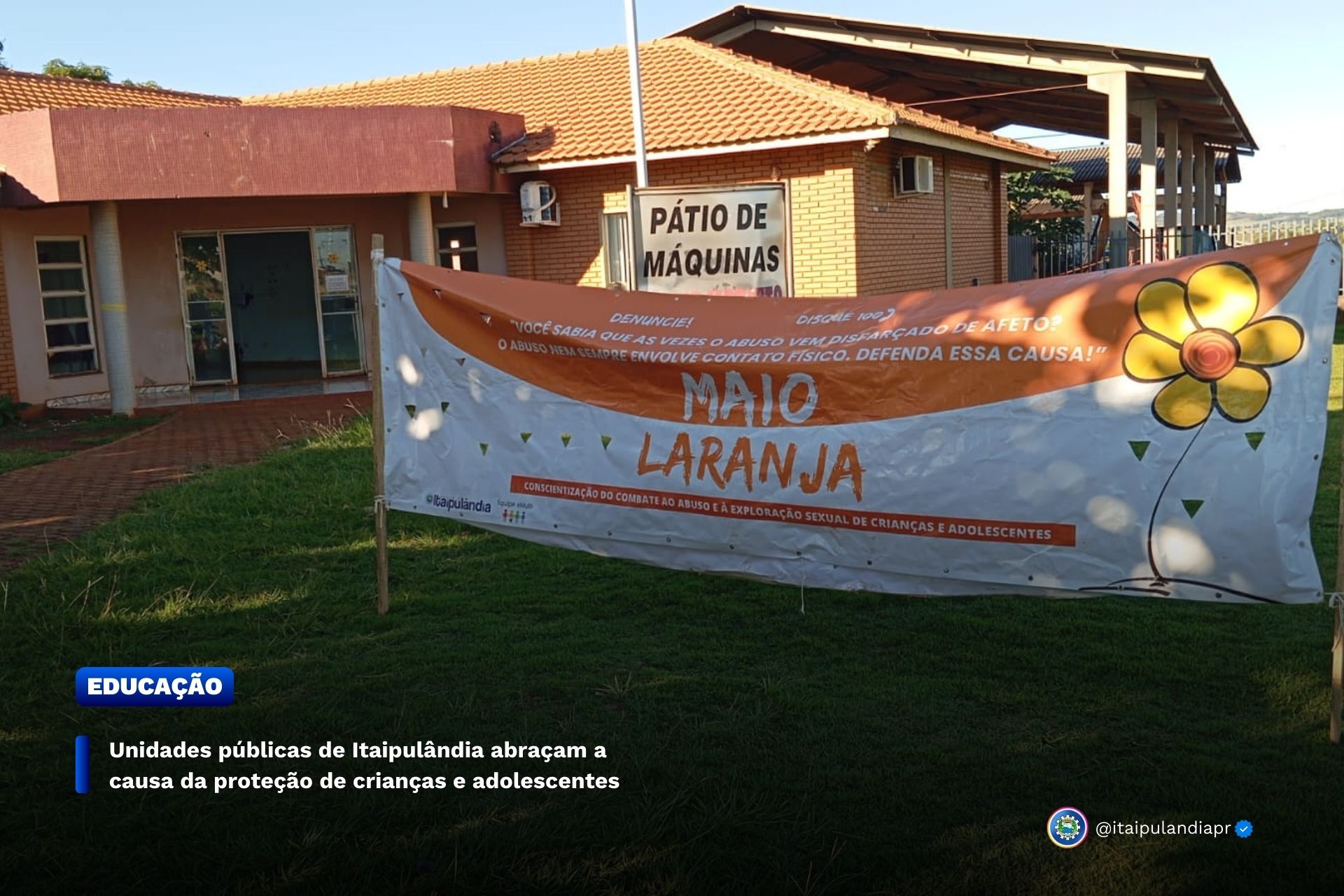 As instituições públicas de Itaipulândia estão dando um verdadeiro show de engajamento! Murais, cartazes, faixas e elementos visuais na cor laranja estão espalhados pelas Instituições de Ensino, Unidades Básicas de Saúde (UBS), ao Hospital e Maternidade Itaipulândia, CRAS, Conselho Tutelar, Secretarias Municipais e outros órgãos públicos, levando a mensagem da campanha para todos os cantos da cidade.